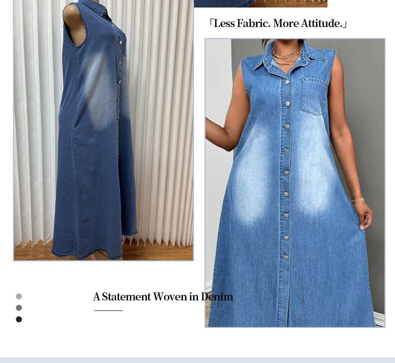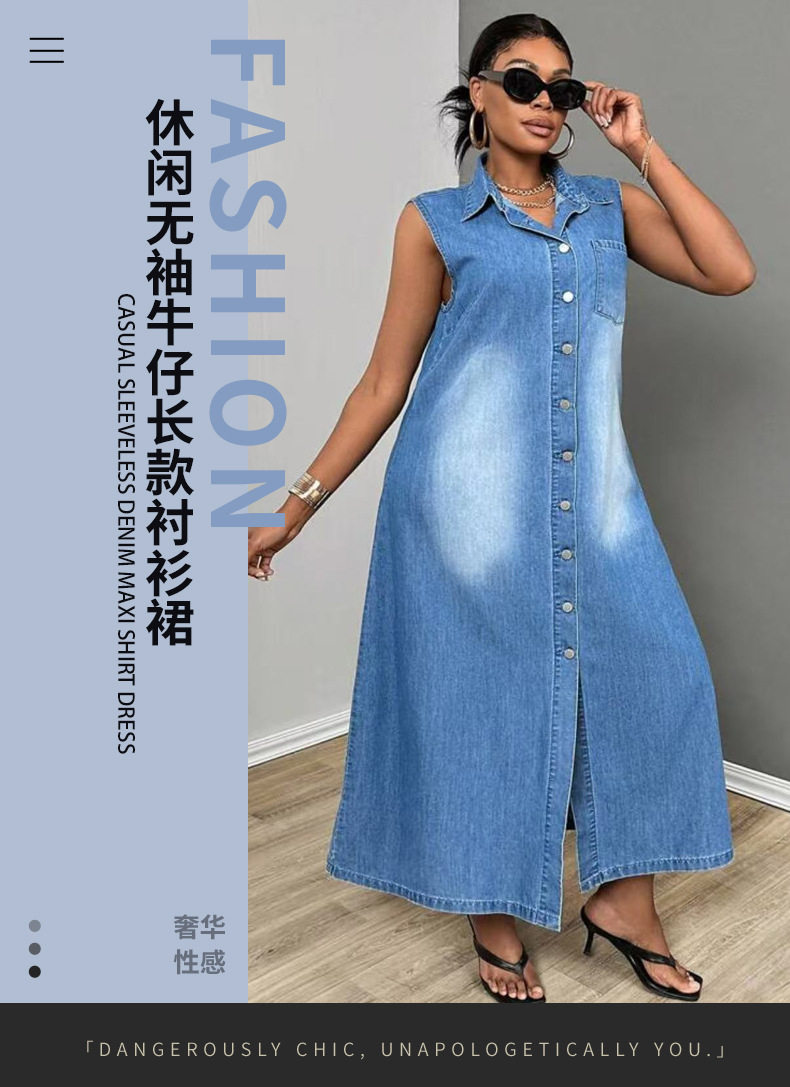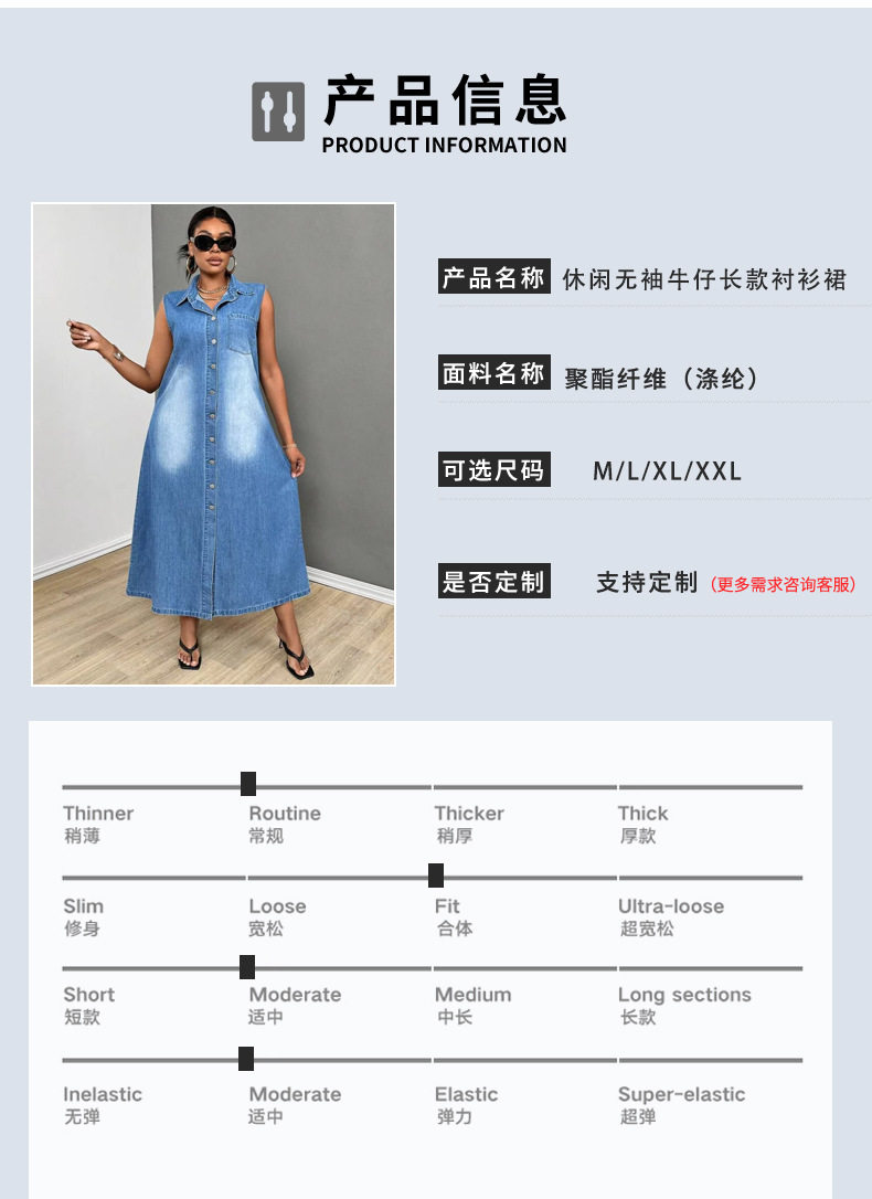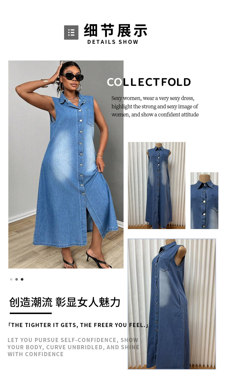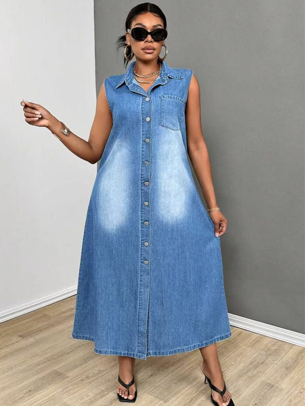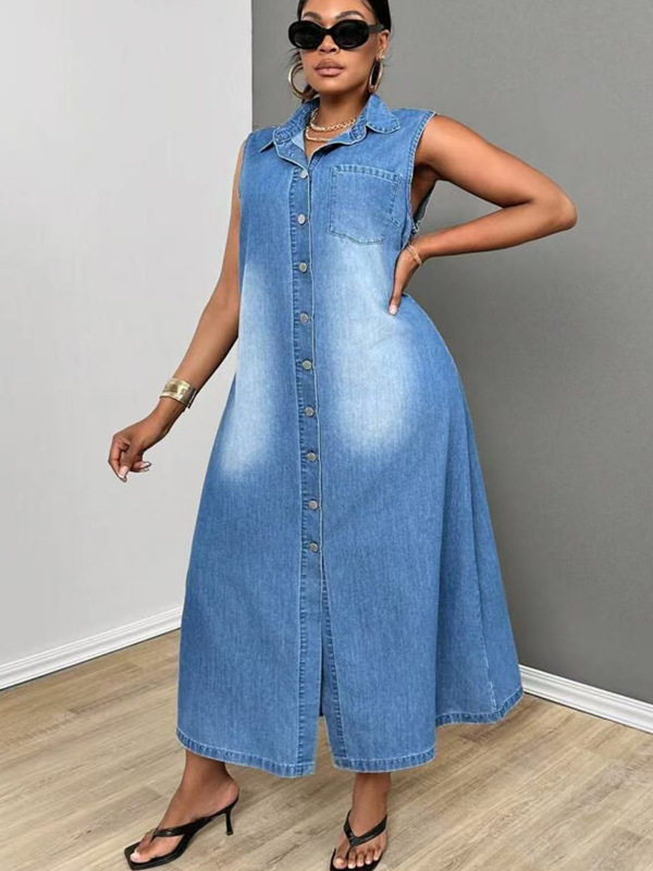 Sleeveless single-breasted denim dress summer new casual lapel long skirt French retro temperament denim long skirt