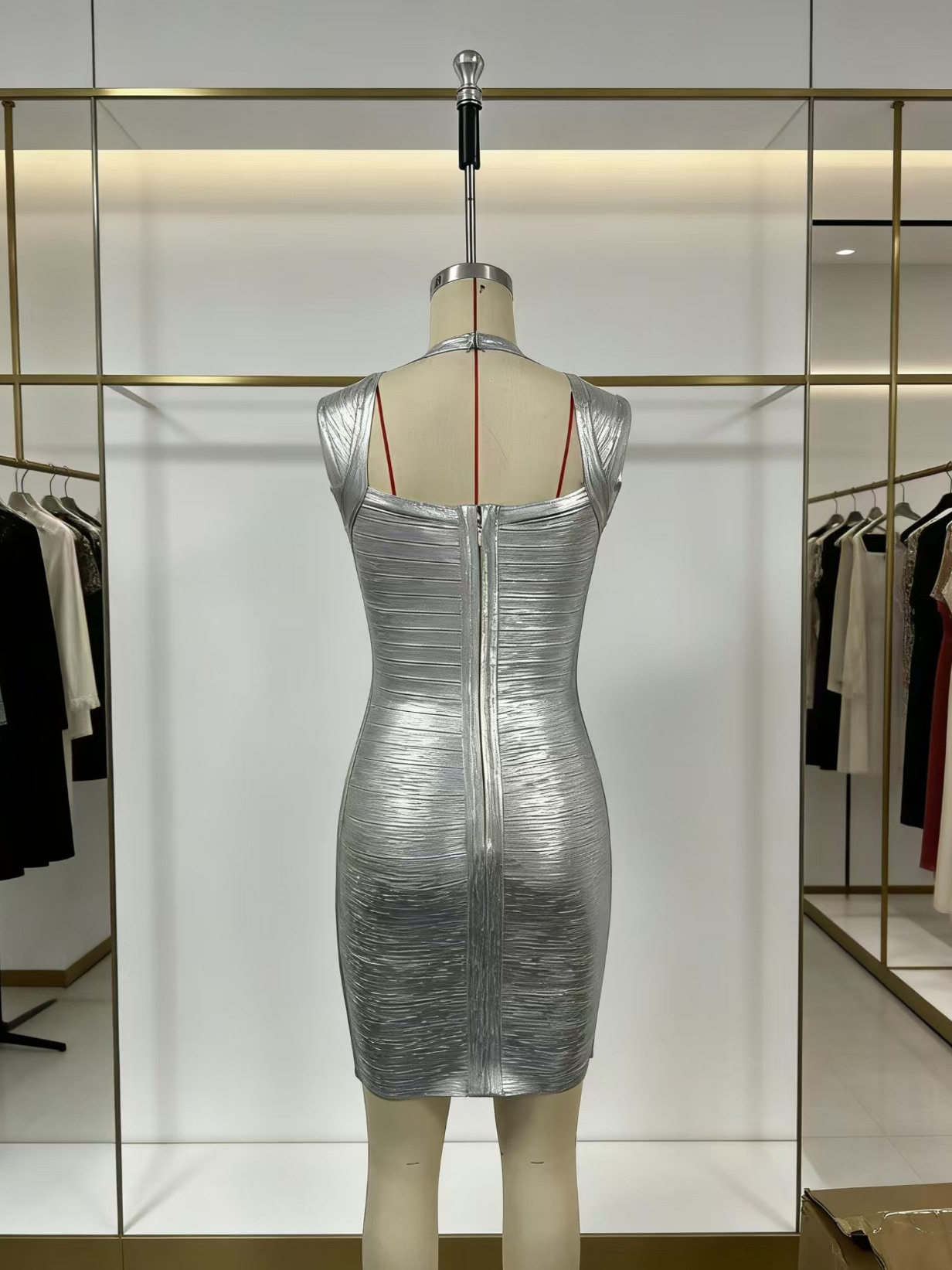 solid color sexy backless U-neck elastic pit strip halter neck tight bandage hip-covering dress