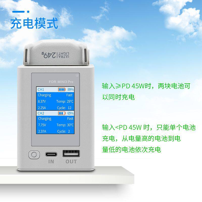 Suitable for Dji Dji Mini Mini4Pro/Mini3/3Pro Two-Way Color Screen Tube Battery Charging Compartment