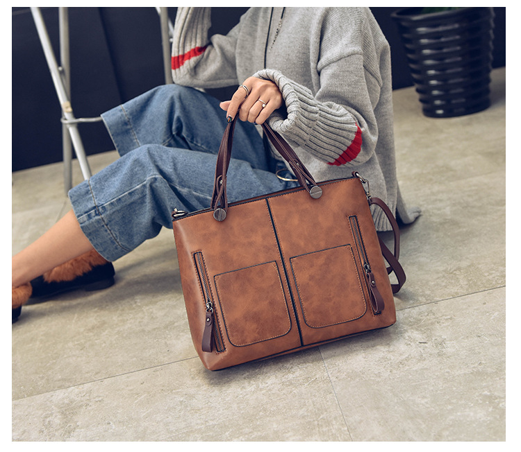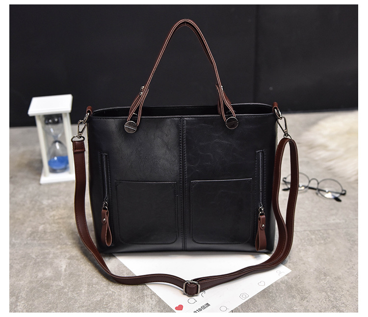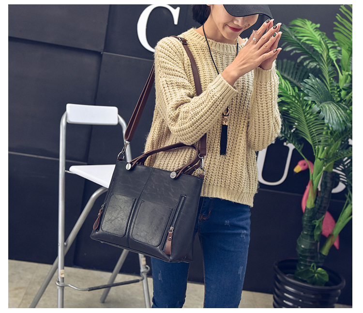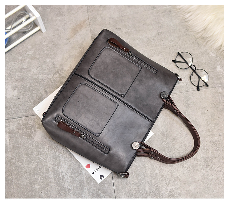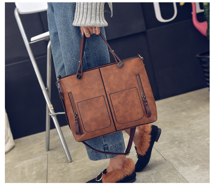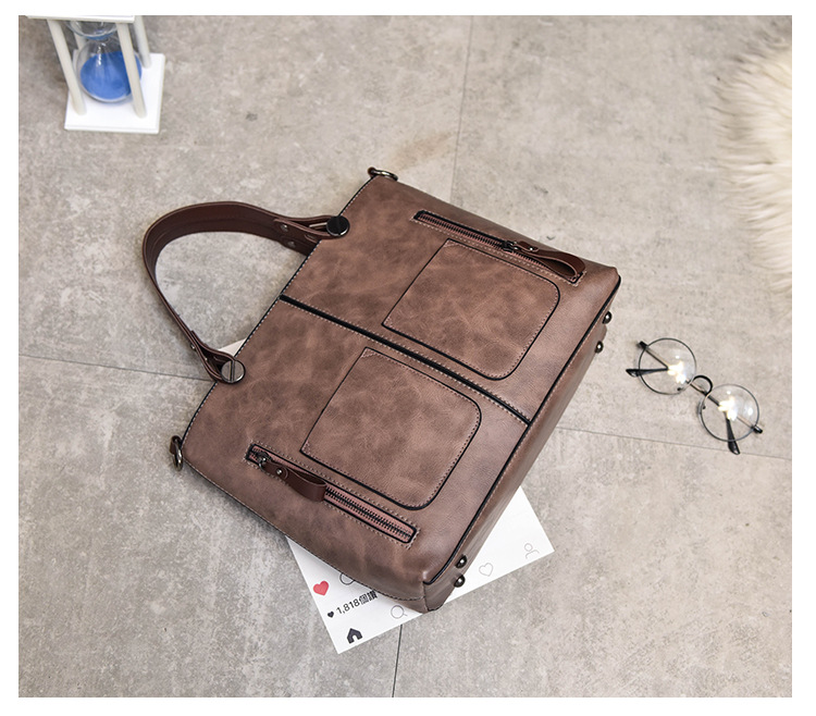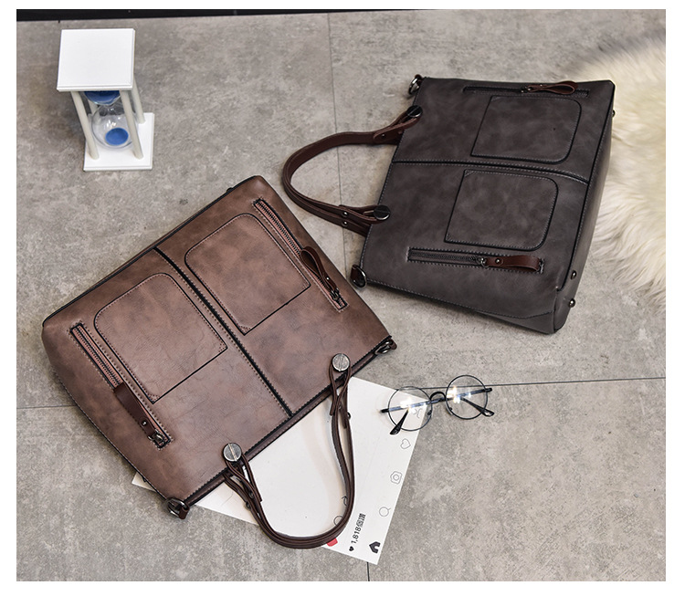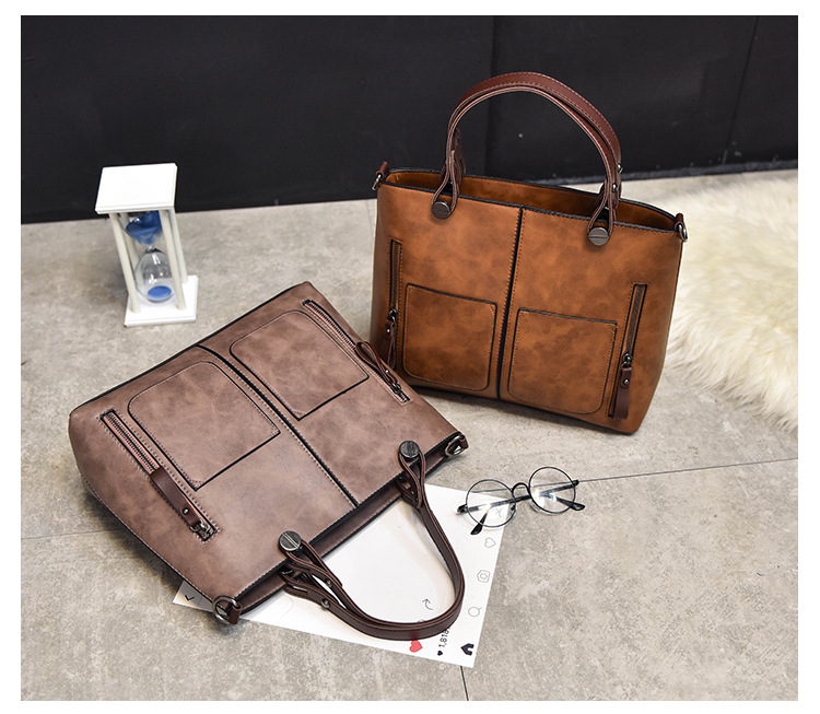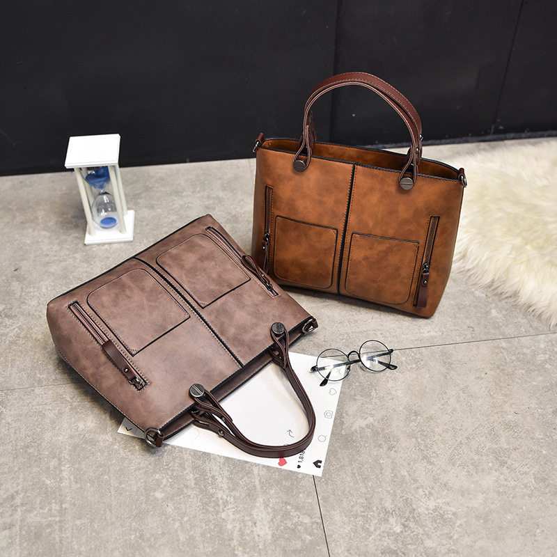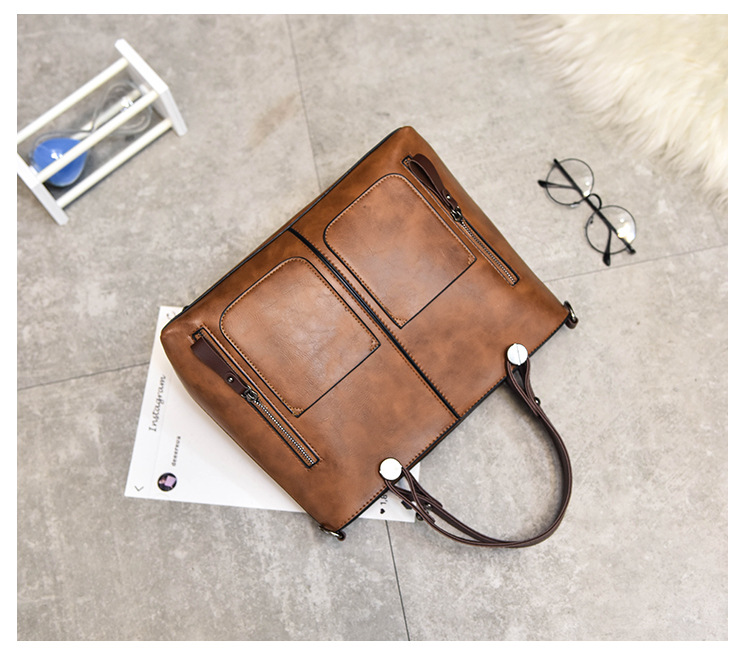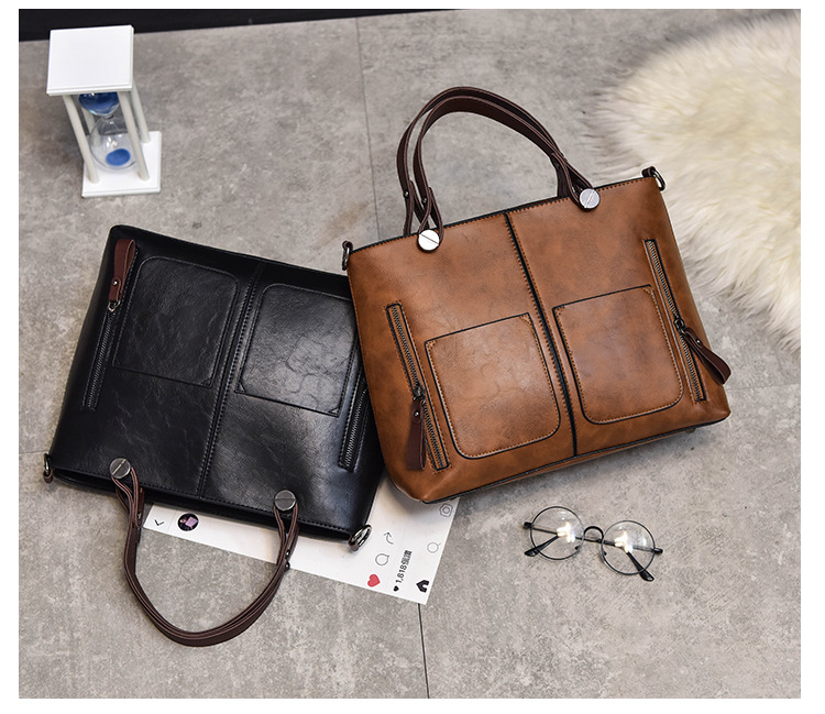 Women's bag double pocket single shoulder crossbody bag handbag fashion retro PU oil leather bag