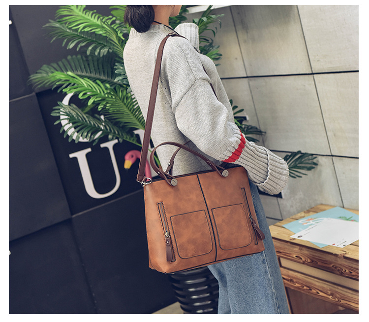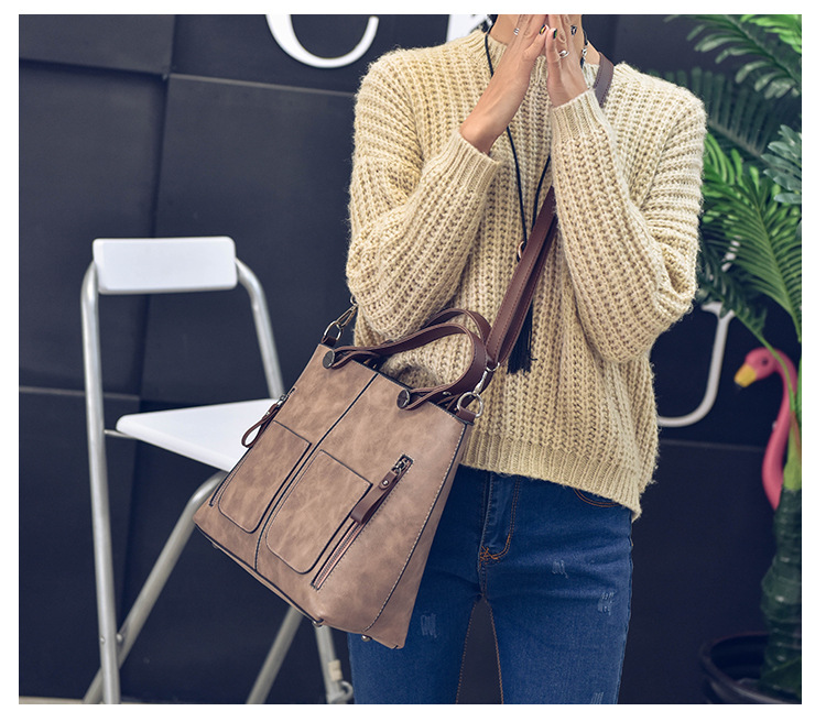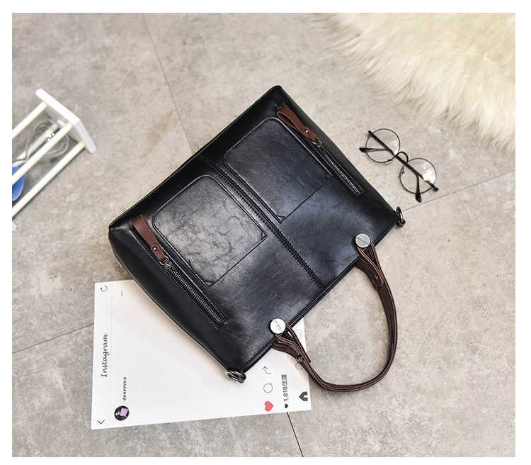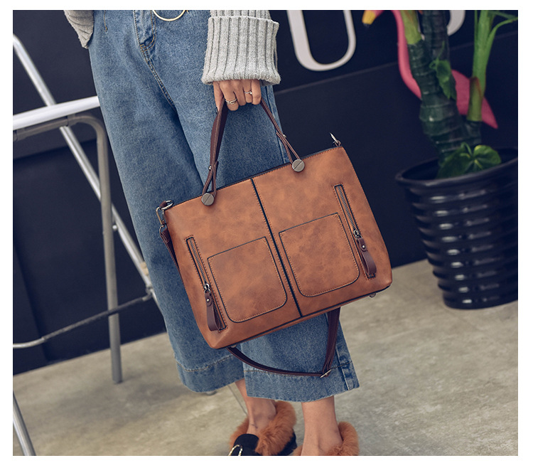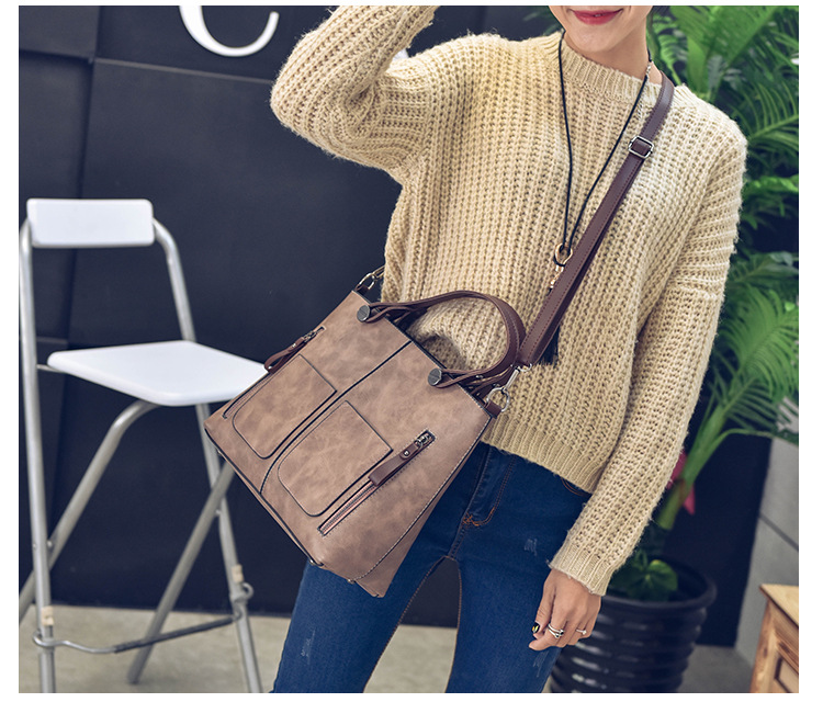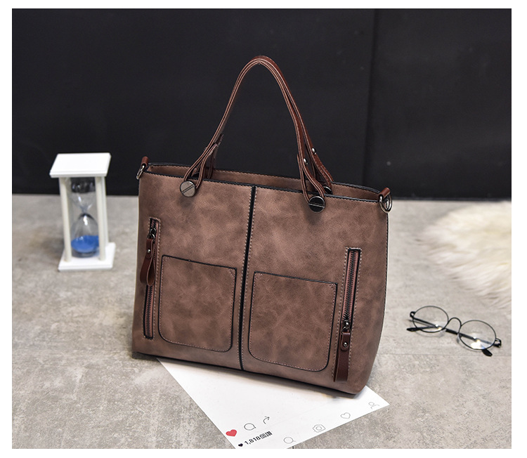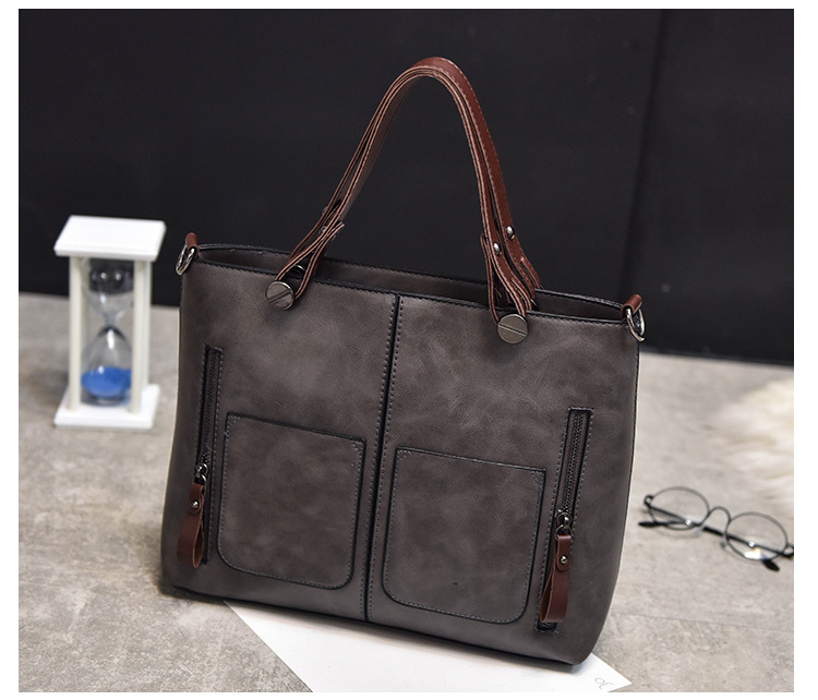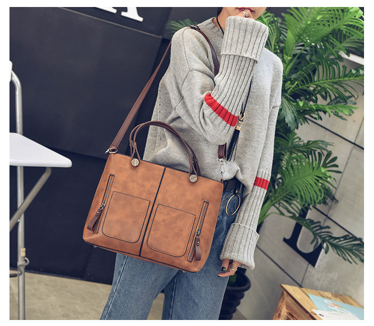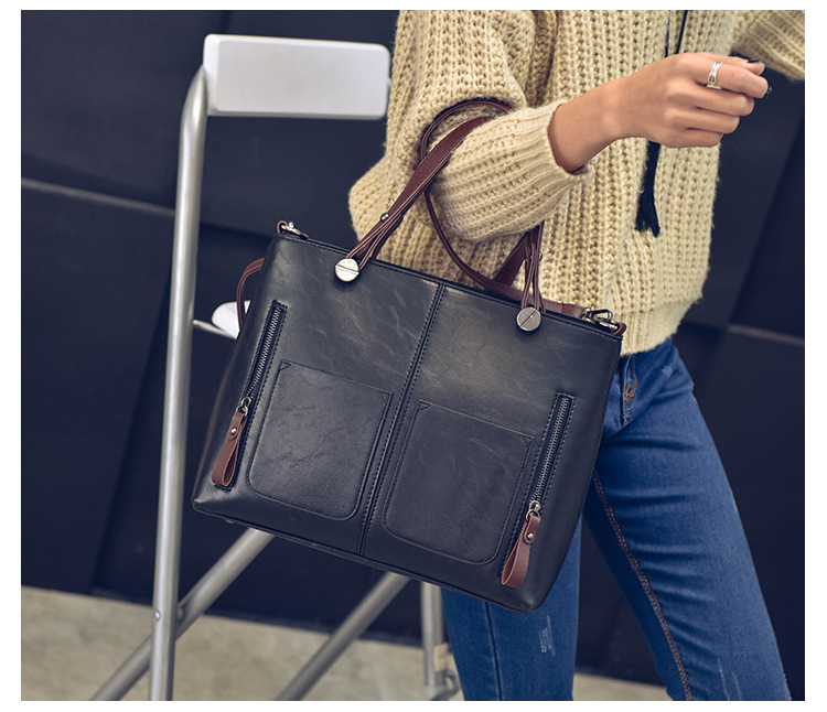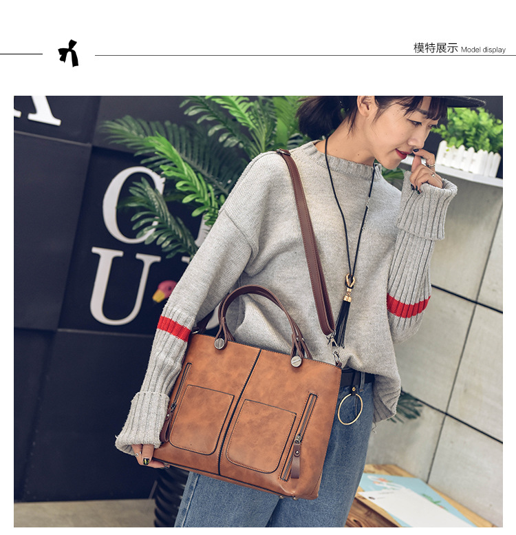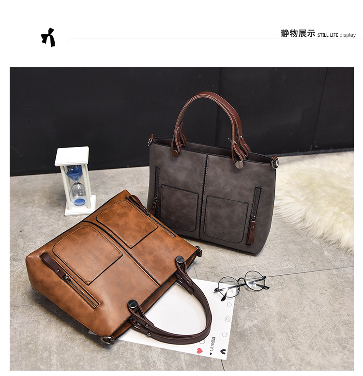 Women's bag double pocket single shoulder crossbody bag handbag fashion retro PU oil leather bag