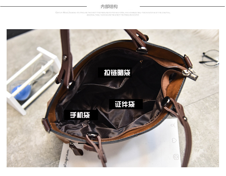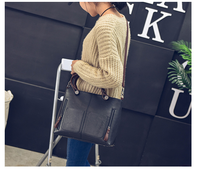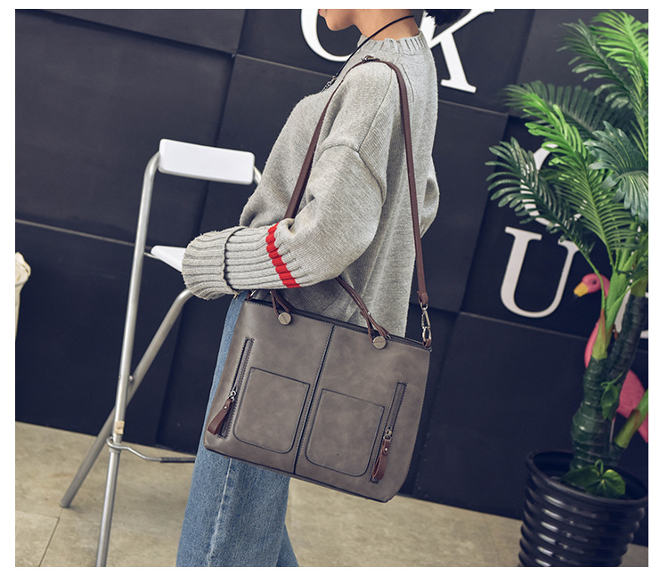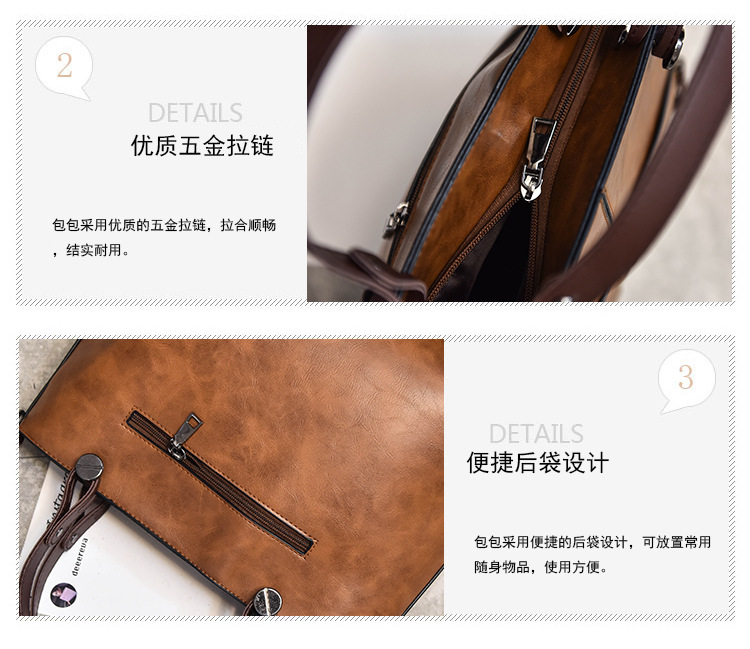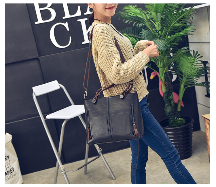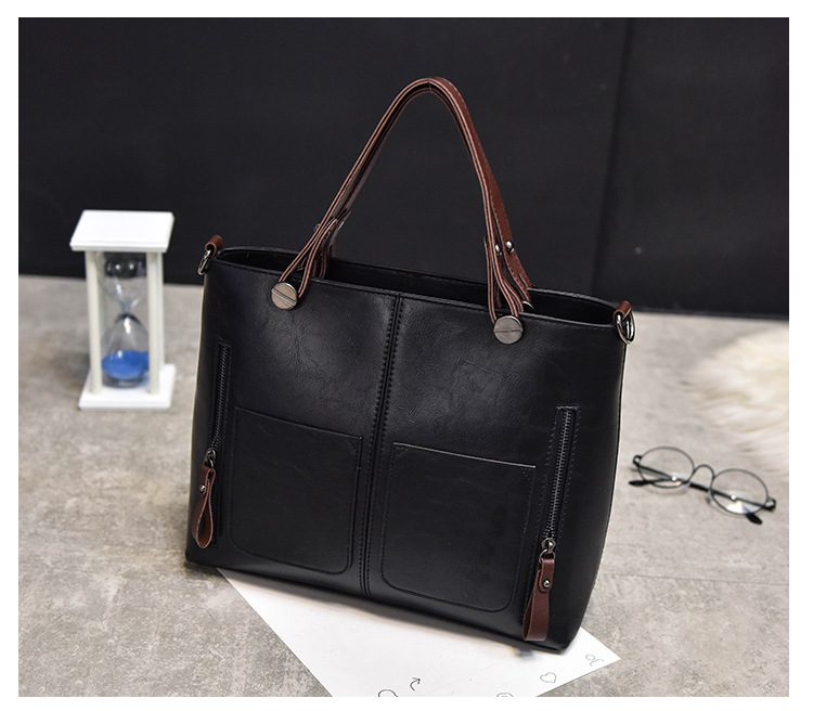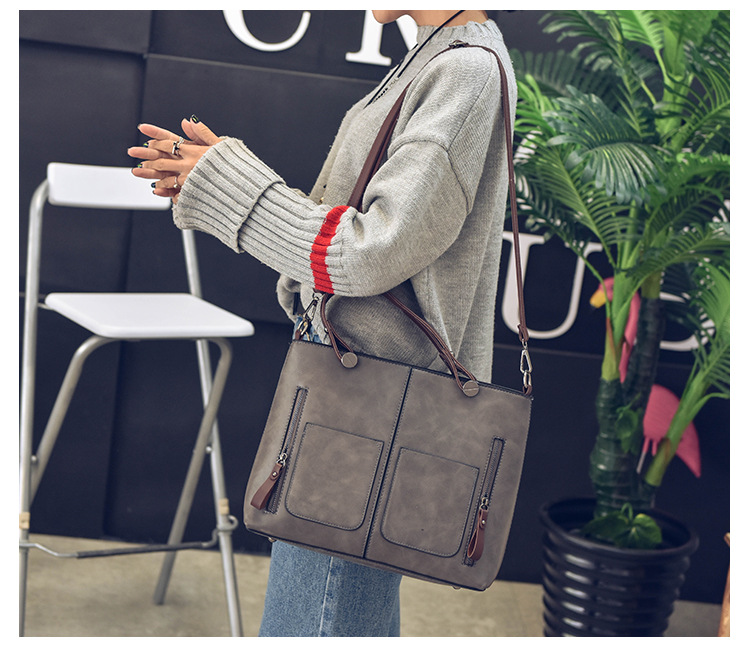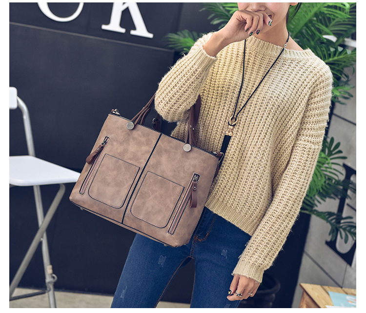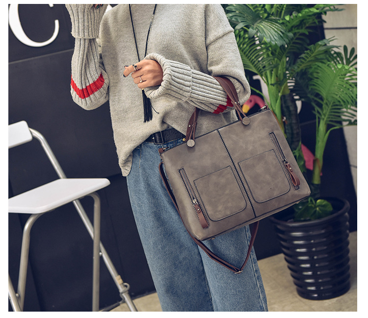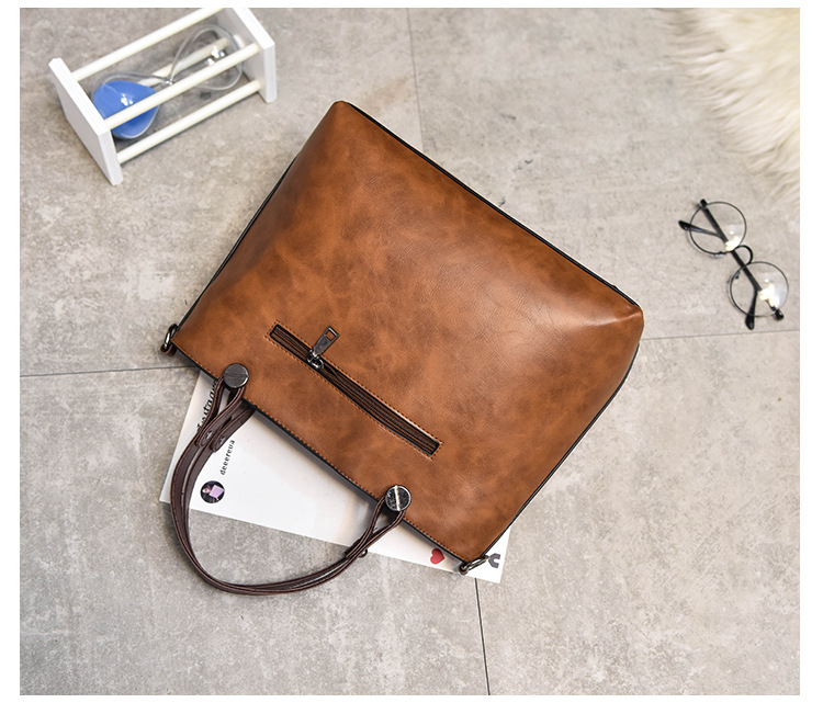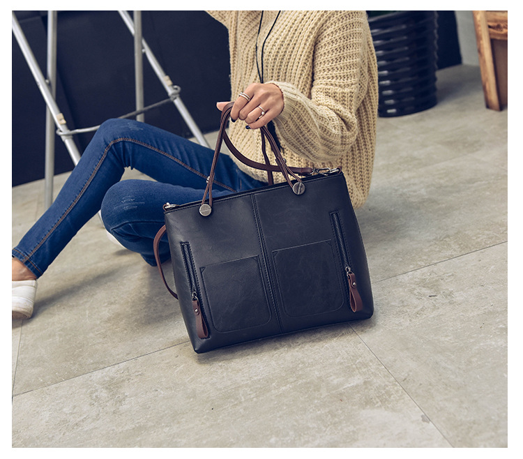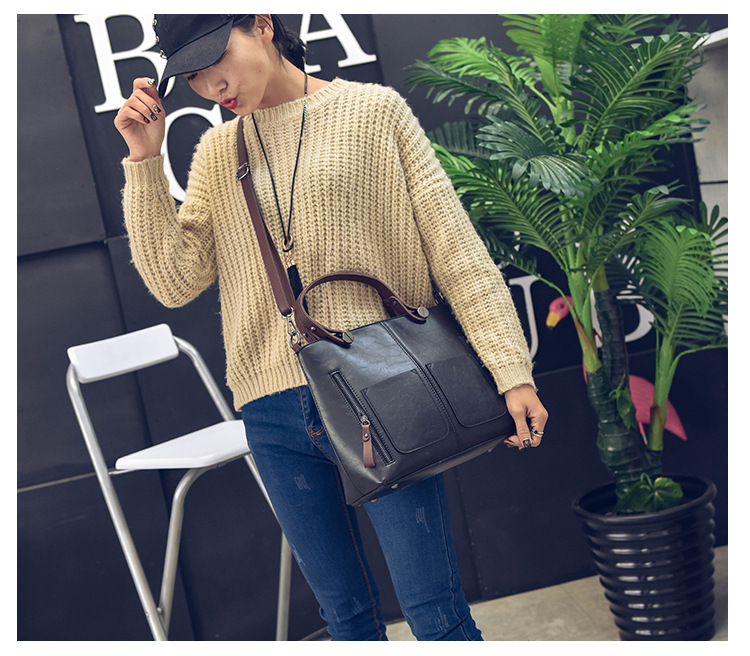Women's bag double pocket single shoulder crossbody bag handbag fashion retro PU oil leather bag