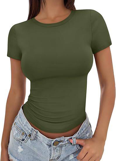 women's T-shirt slimming round neck tight sexy summer tops for women