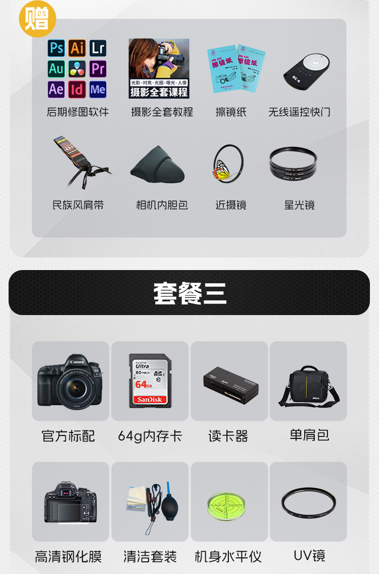 Single body (need to purchase additional lens to take pictures) / ☾☀99 new☀☽ Package Three (chosen by 36% of customers) / Canon 550D for beginners
