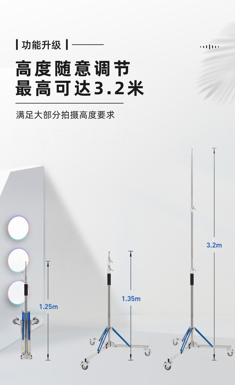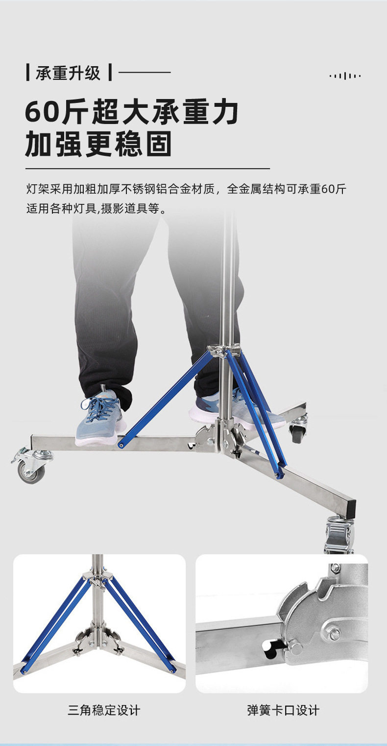 Live Broadcast Photography Light Stand Magic Leg Light Stand C-Shaped Bracket Professional Indoor Film and Television Light Stand Stainless Steel Tripod