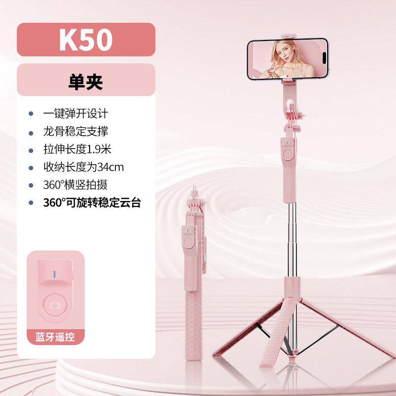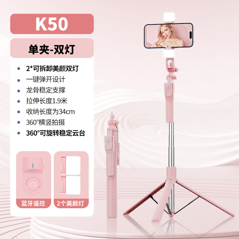 K50 dual-light advanced edition pink (190cm + bluetooth remote + stabilizing handle + stainless steel rib frame)