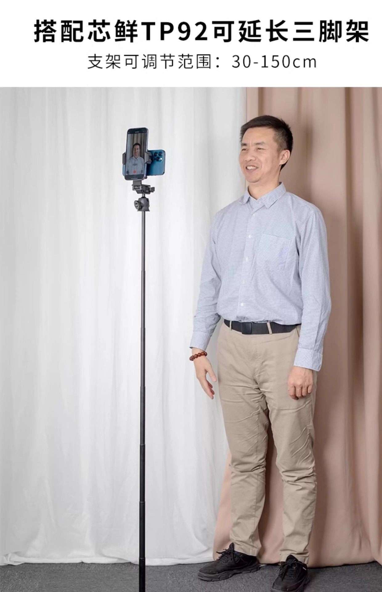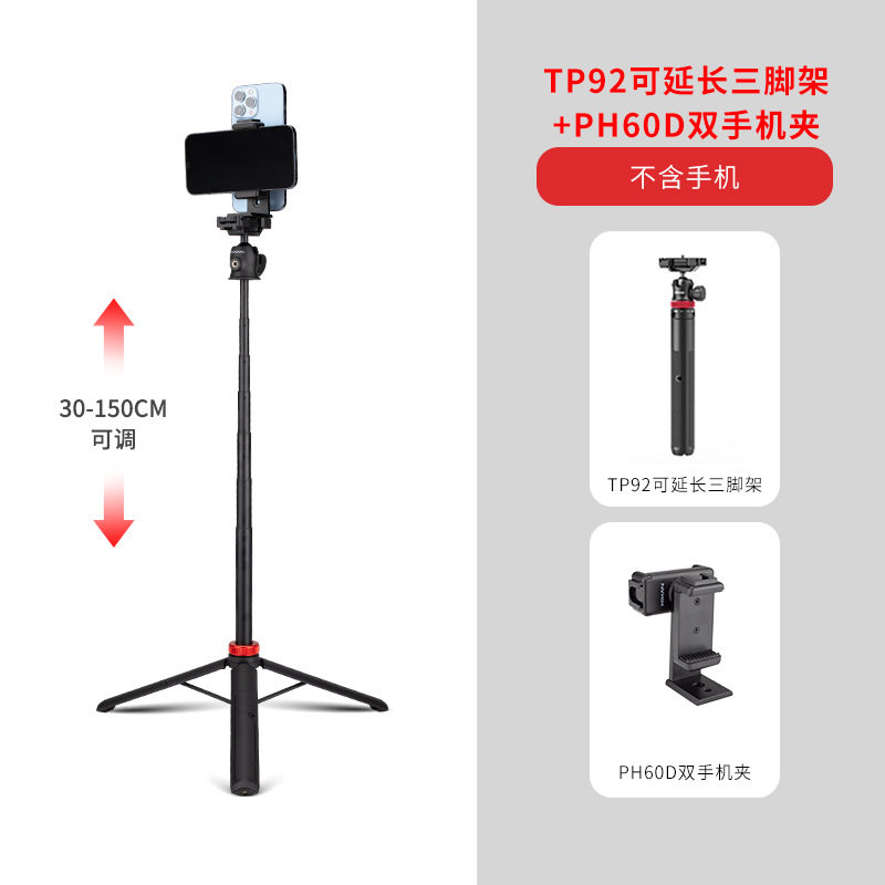 [ph60d horizontal and vertical dual mobile phone holder] + [ 1.5m tp92 telescopic tripod] [desktop/floor/handheld selfie live broadcast recommendation]