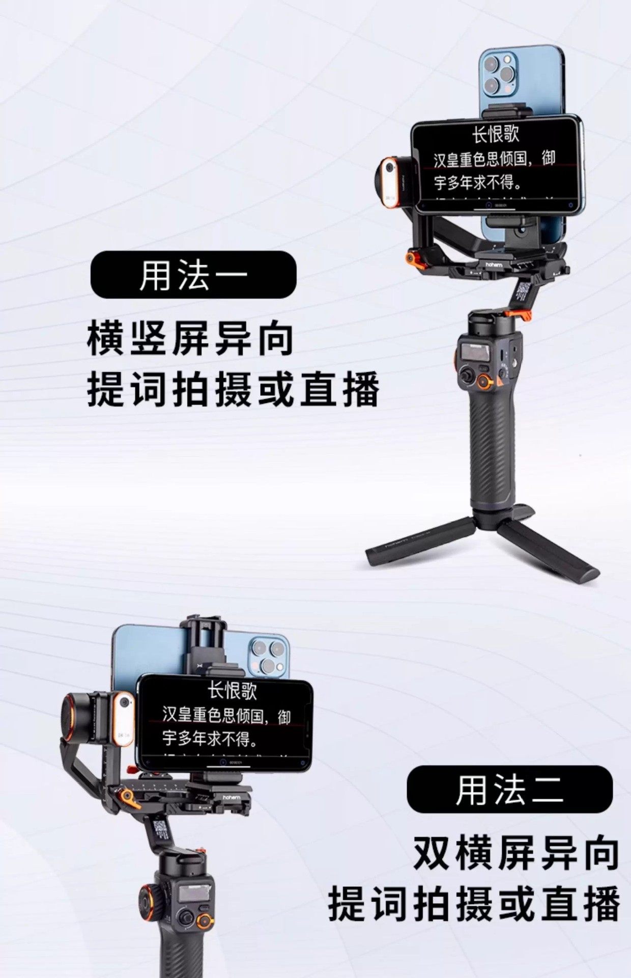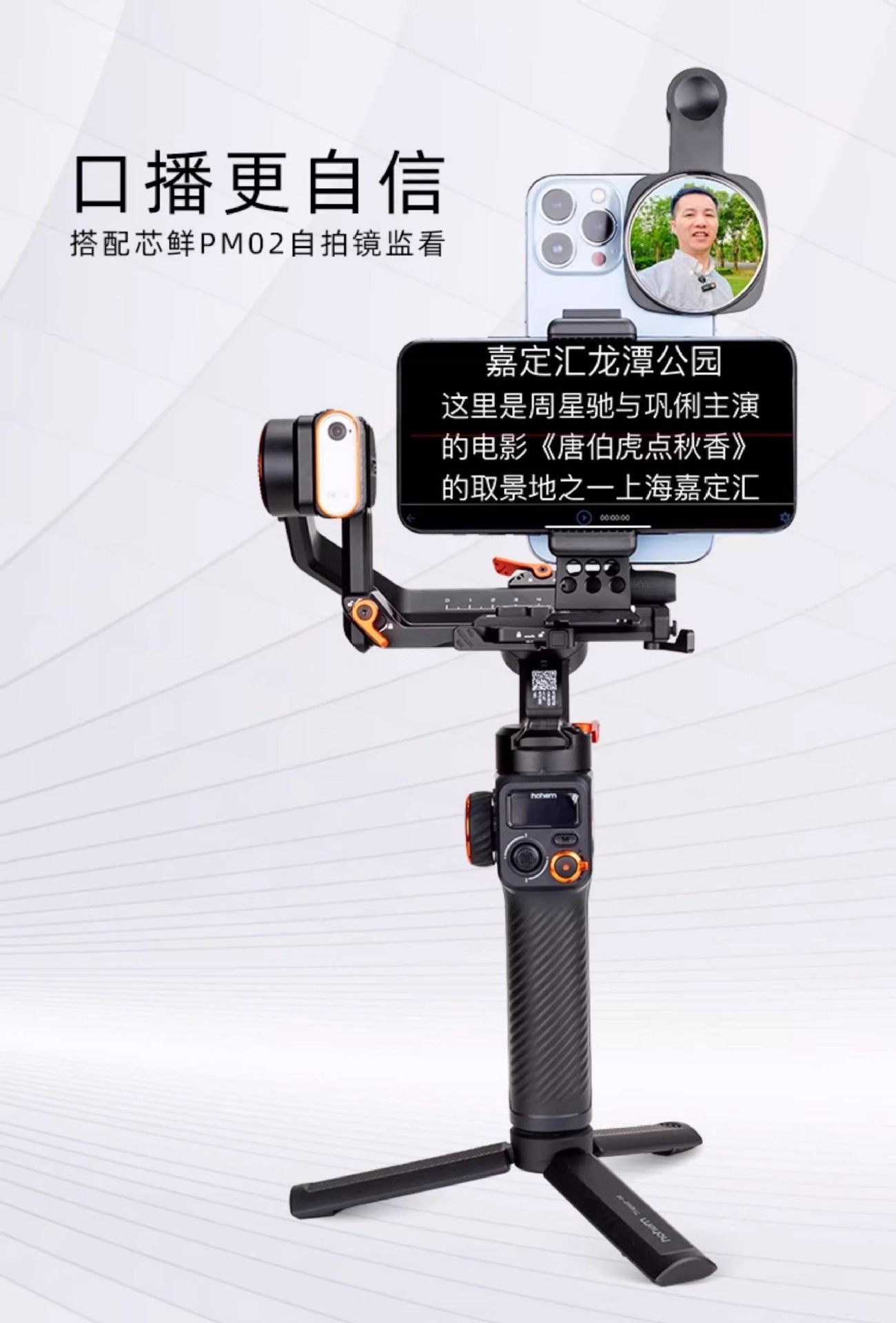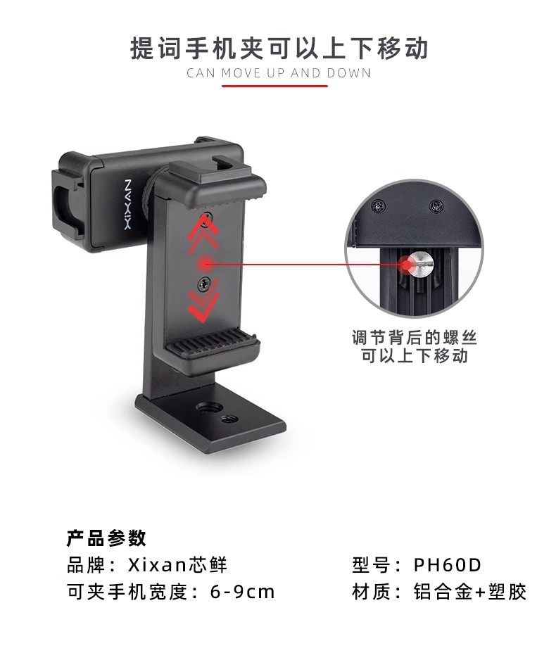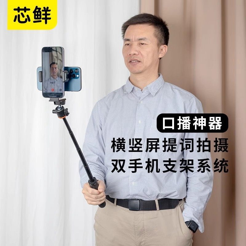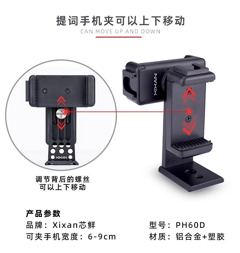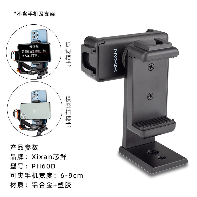 Xinxian Ph60D Horizontal and Vertical Screen Dual Mobile Phone Live Teleprompter Clip Suitable for Haohan Zhiyun Dji Selfie Stick Bracket