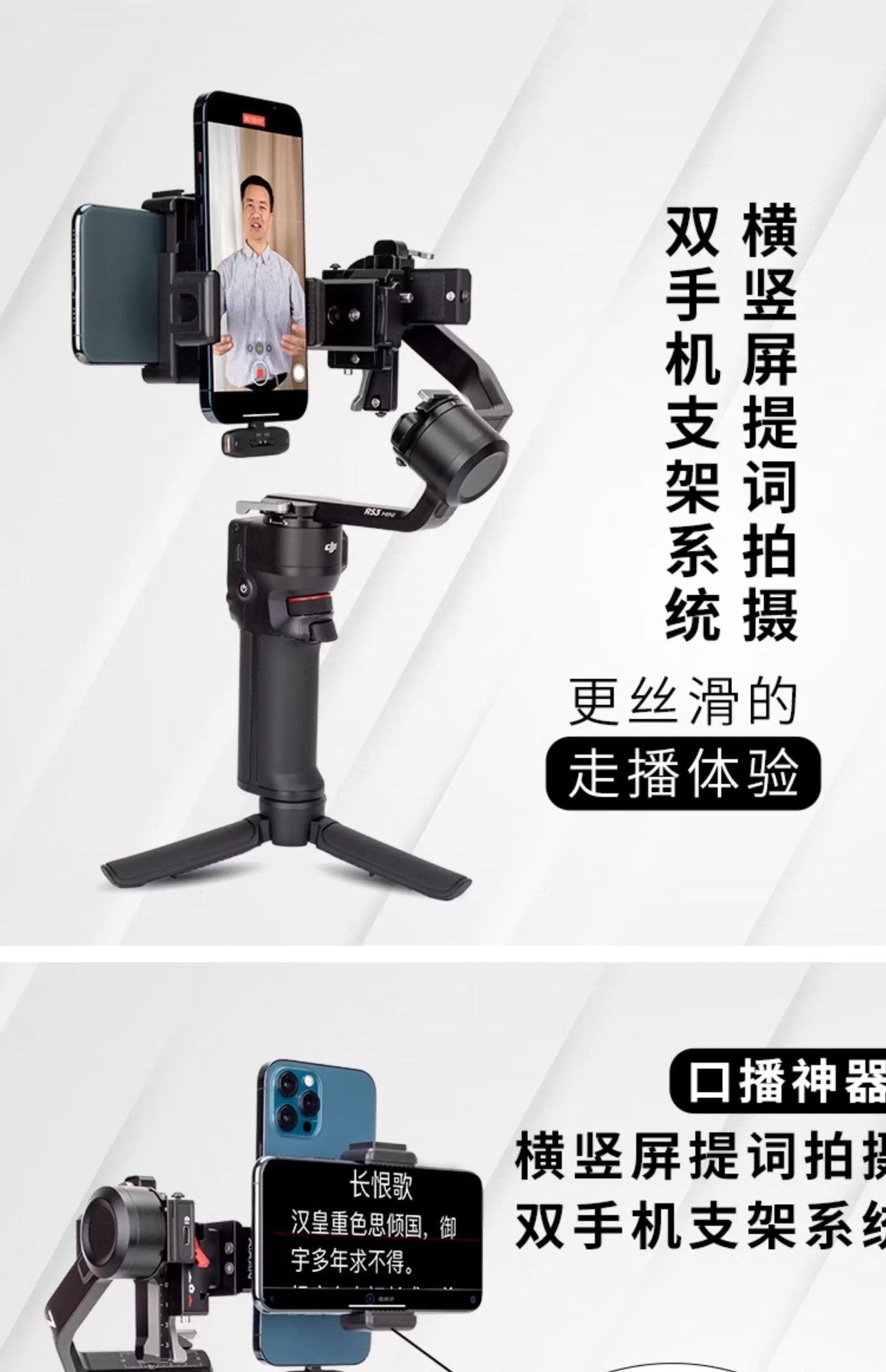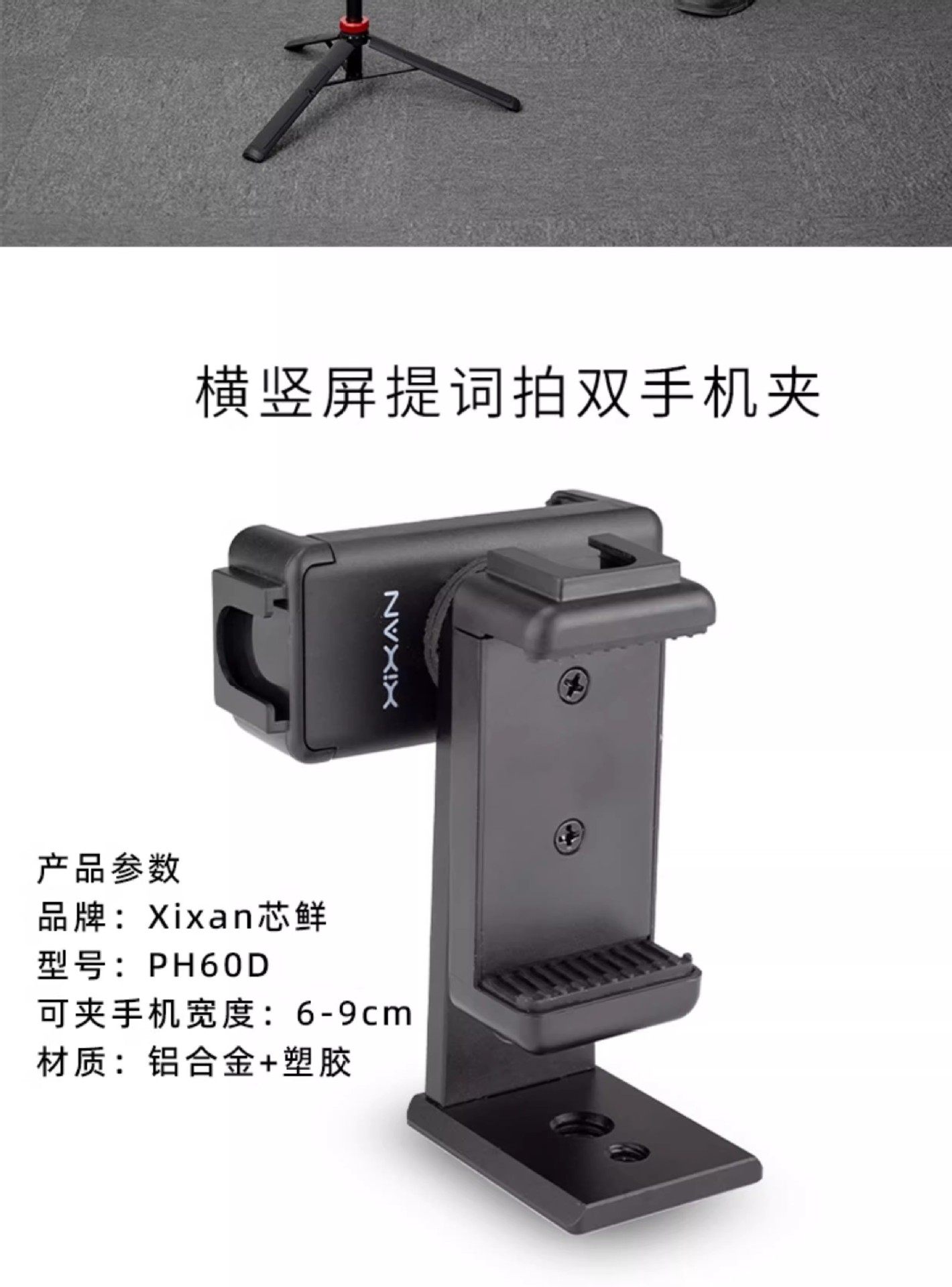 [ph60d horizontal and vertical dual mobile phone holder] + [tripod for tp 4.8kg] [recommended for desktop/handheld selfie live broadcast]