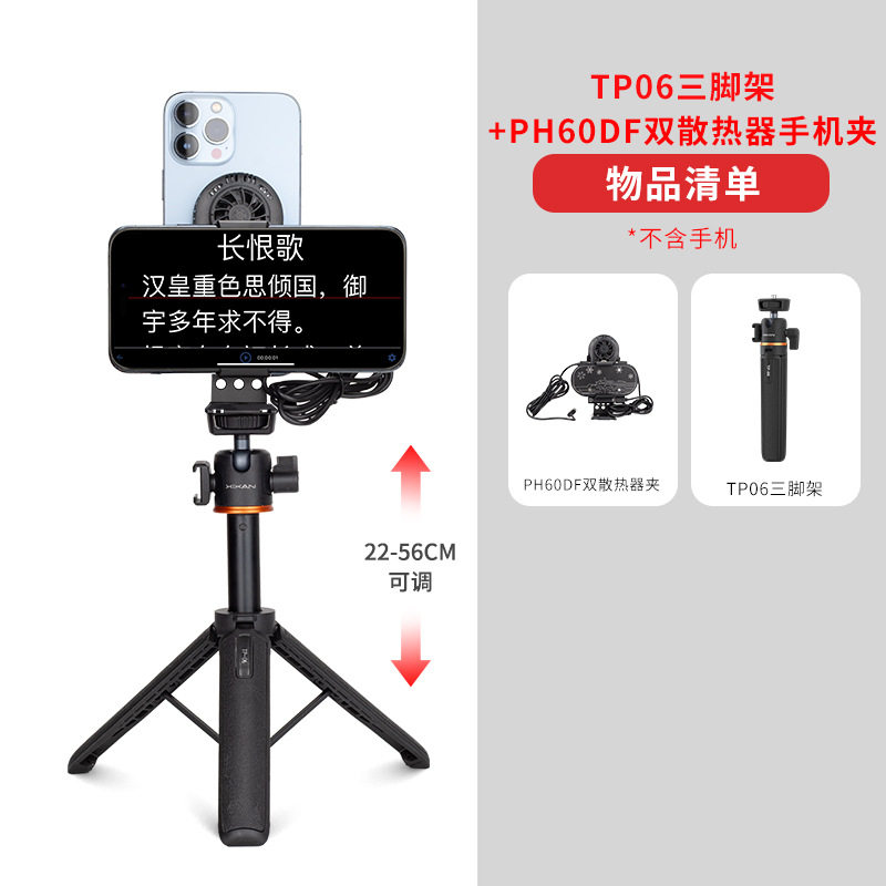 [ph60df horizontal and vertical dual cooling mobile phone holder] + [tp06 telescopic tripod] [desktop/handheld selfie live broadcast recommended]