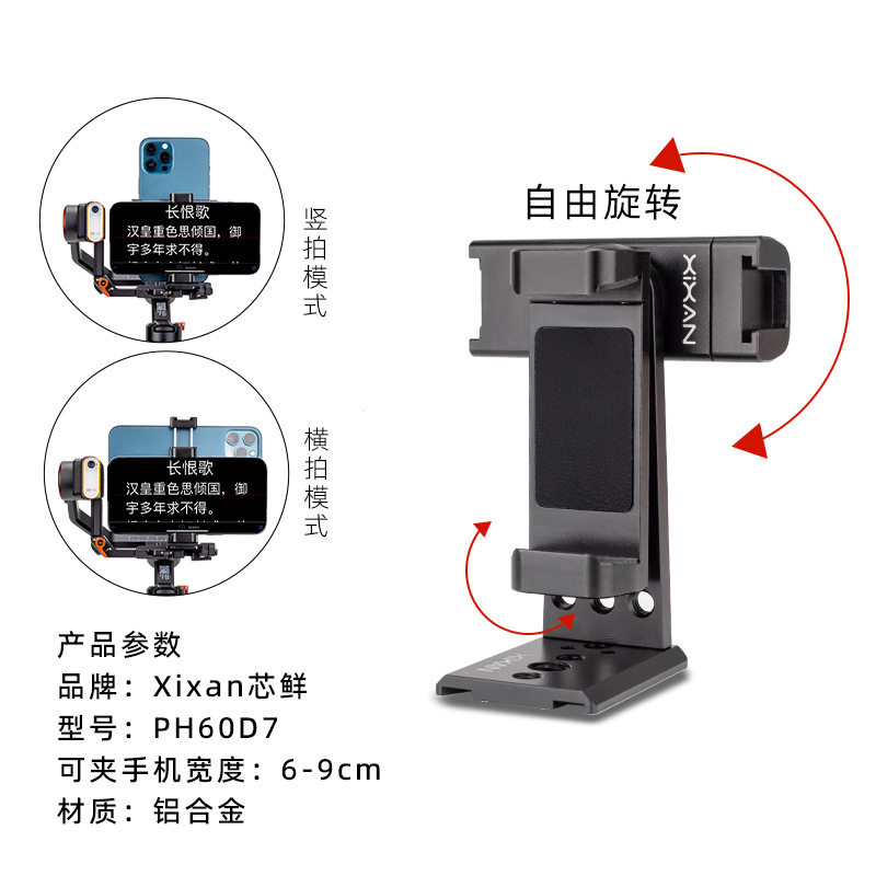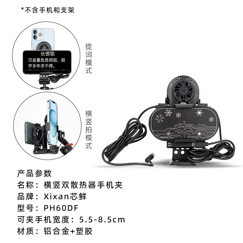 [ph60df horizontal and vertical dual cooling mobile phone holder] [applicable to various tripods/camera stabilizers] [you need to bring your own mobile phone/stand]