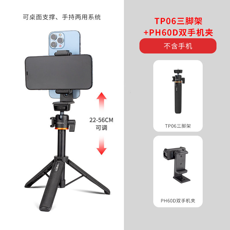 [ph60d horizontal and vertical dual mobile phone holder] + [tp06 telescopic tripod] [desktop/handheld selfie live broadcast recommended]