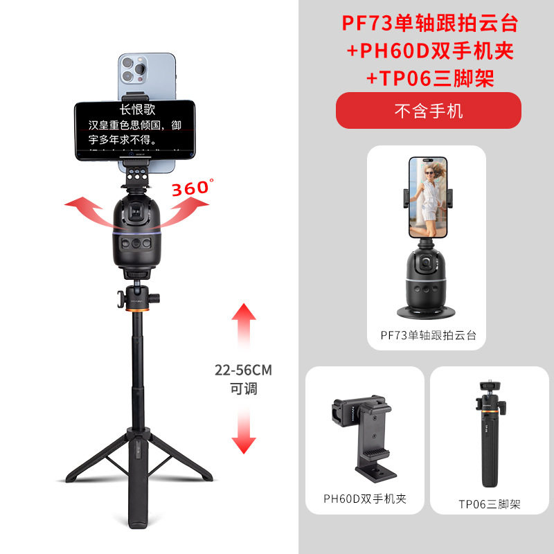 [ph60d horizontal and vertical dual mobile phone holder] + [pf73 single-axis tracking gimbal] + [tp06 telescopic tripod] [desktop/handheld tracking recommended]