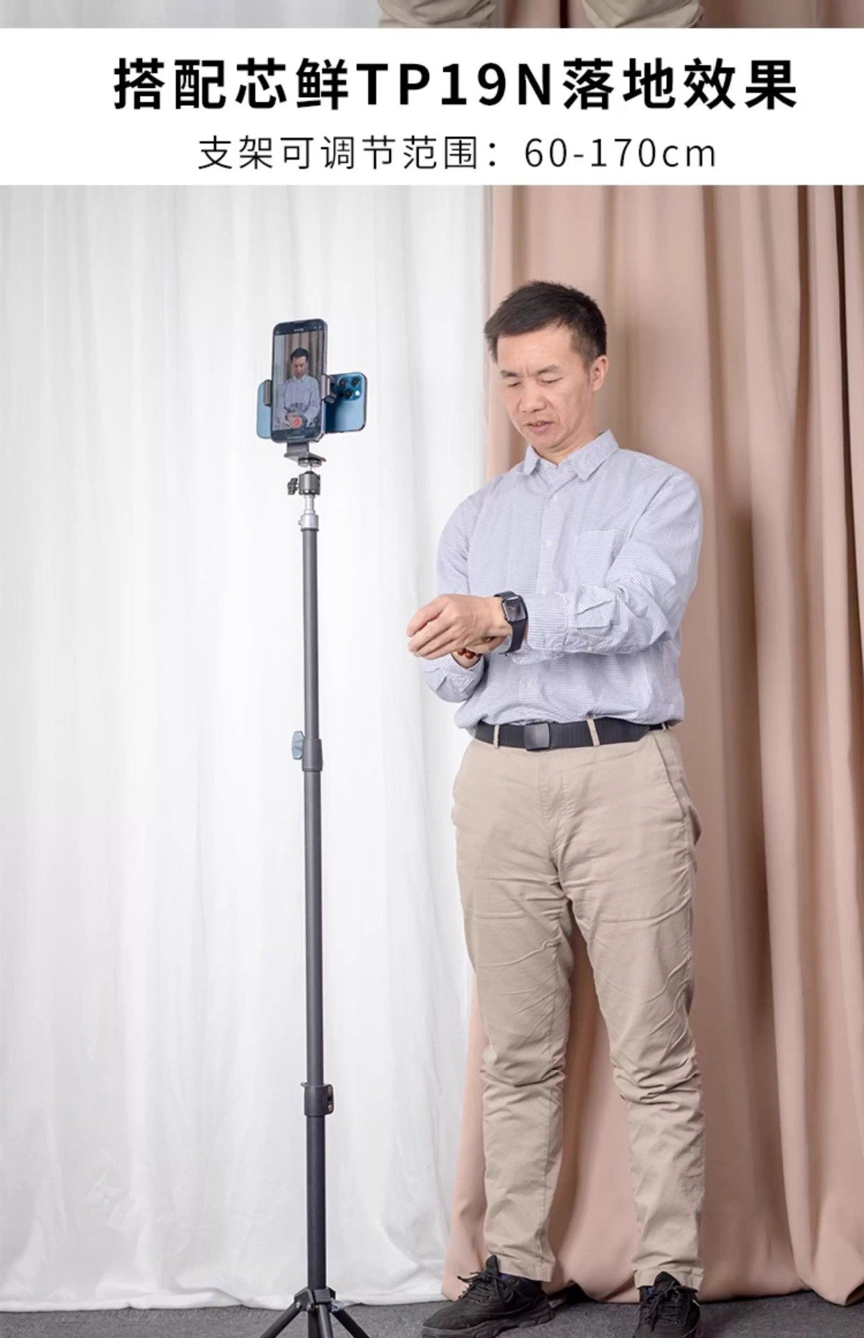 [ph60d horizontal and vertical dual mobile phone holder] + [ 1.7m tp19n floor-standing tripod ] [economical floor-standing model]