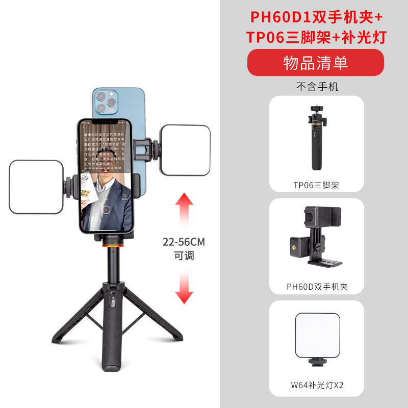 [ph60d1 vertical screen dual mobile phone holder] + [tp06 telescopic tripod] + [w64 charging fill light*2] [desktop/handheld selfie recommended]