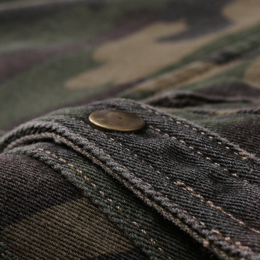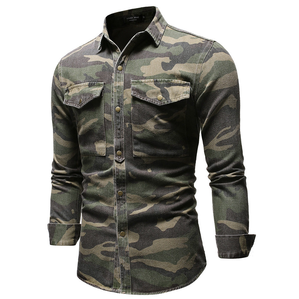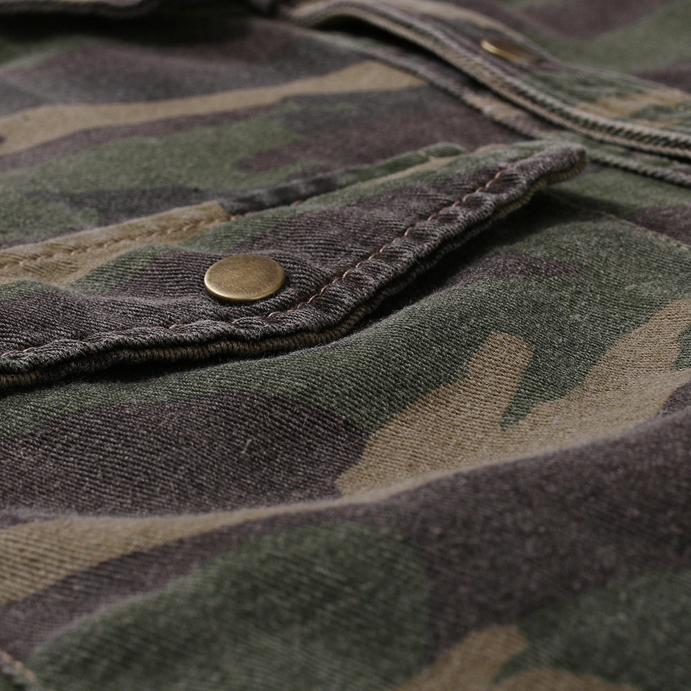 men's military green camouflage denim shirt outdoor hiking denim top