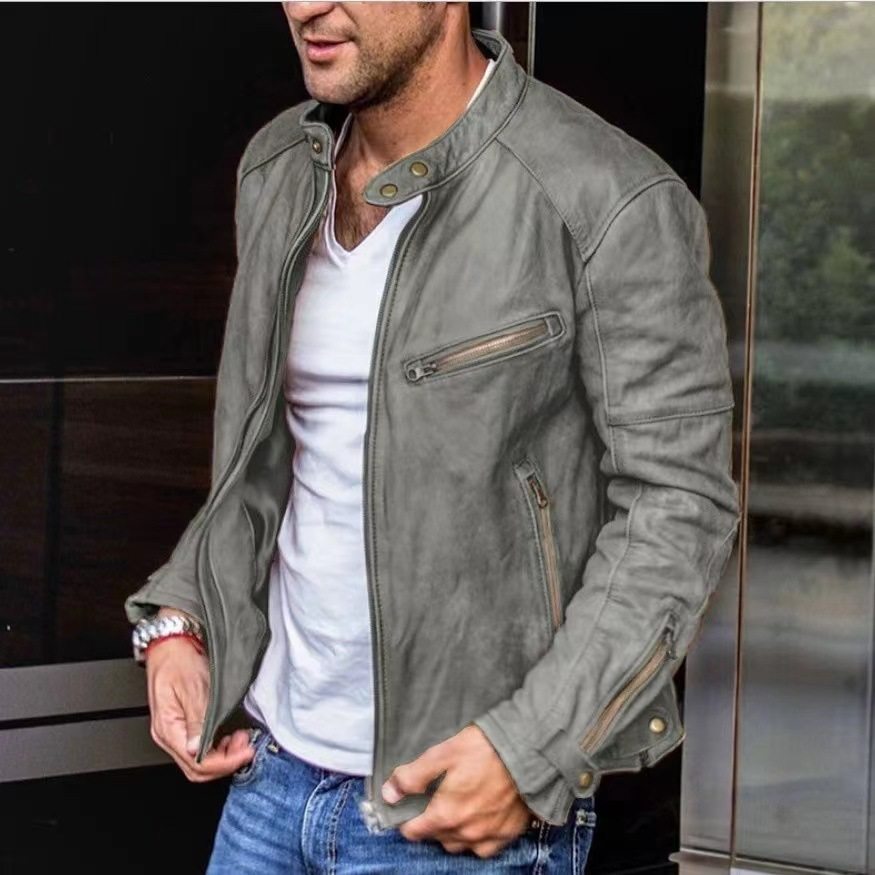 Men's PU Leather Jacket Male Teenagers Stand Collar Punk Men's Motorcycle Leather Jacket