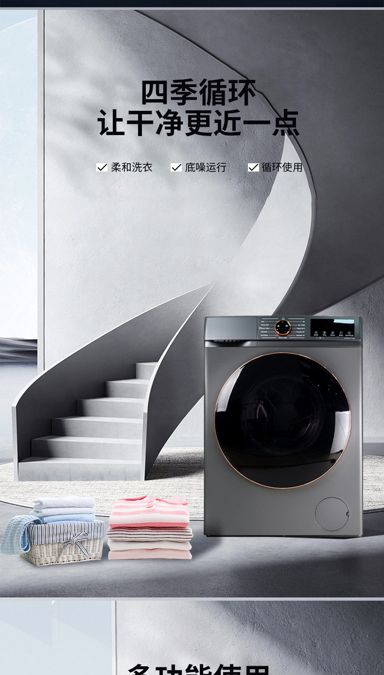 12kg frequency conversion fully automatic drum washing machine with integrated washing and drying