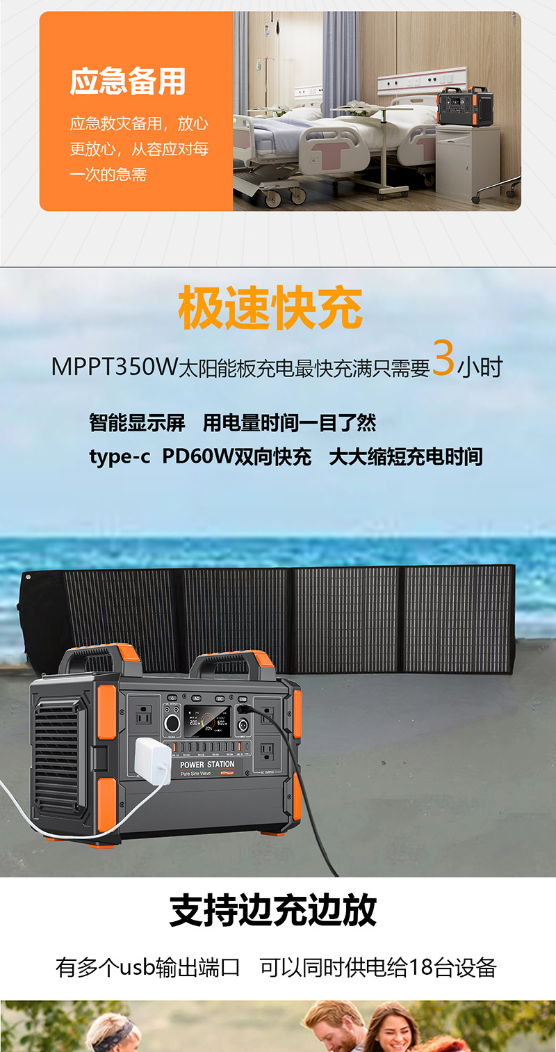 1008Wh capacity / 1200W power outdoor energy storage power lithium iron phosphate 1 degree outdoor mobile power portable power station