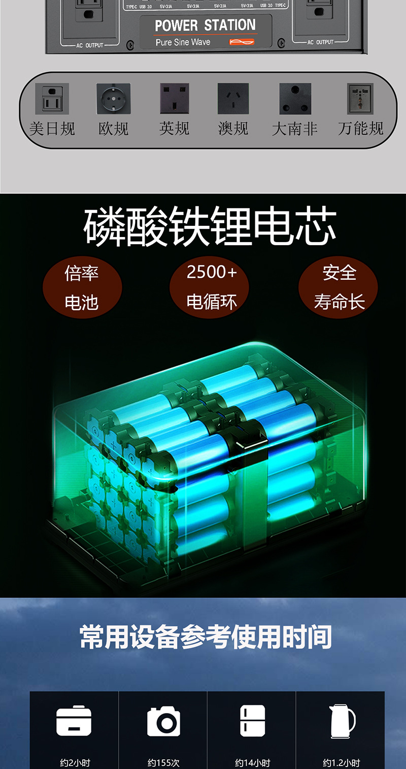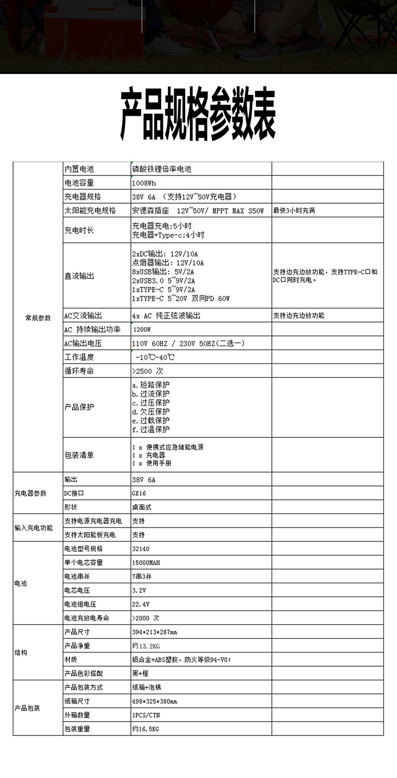 | Specifications : | 1200W outdoor power supply [lithium iron phosphate] |