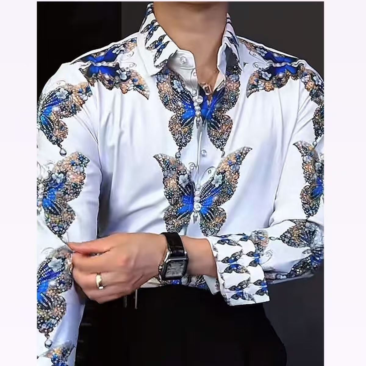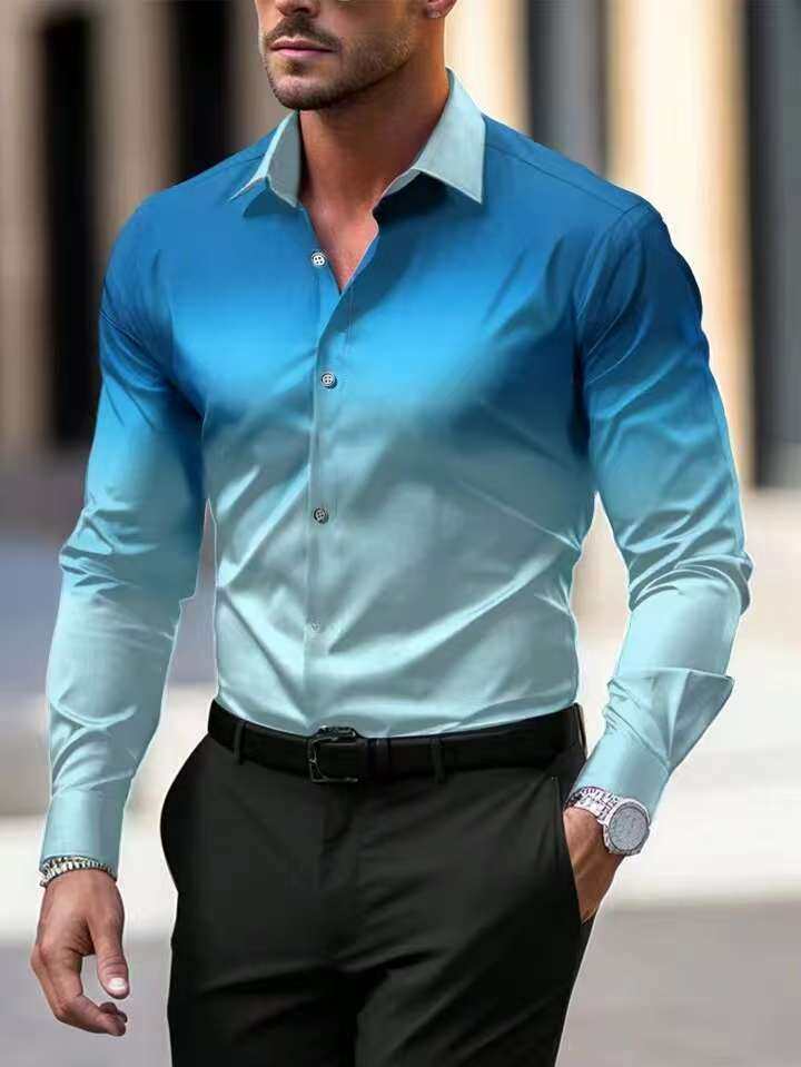 (FREE AIR SHIPPING) 3D Light-Changing Printed Men's Shirt Spring & Fall New Casual Trendy Four-Way Elastic Anti-Wrinkle Slim Long-Sleeved Shirt