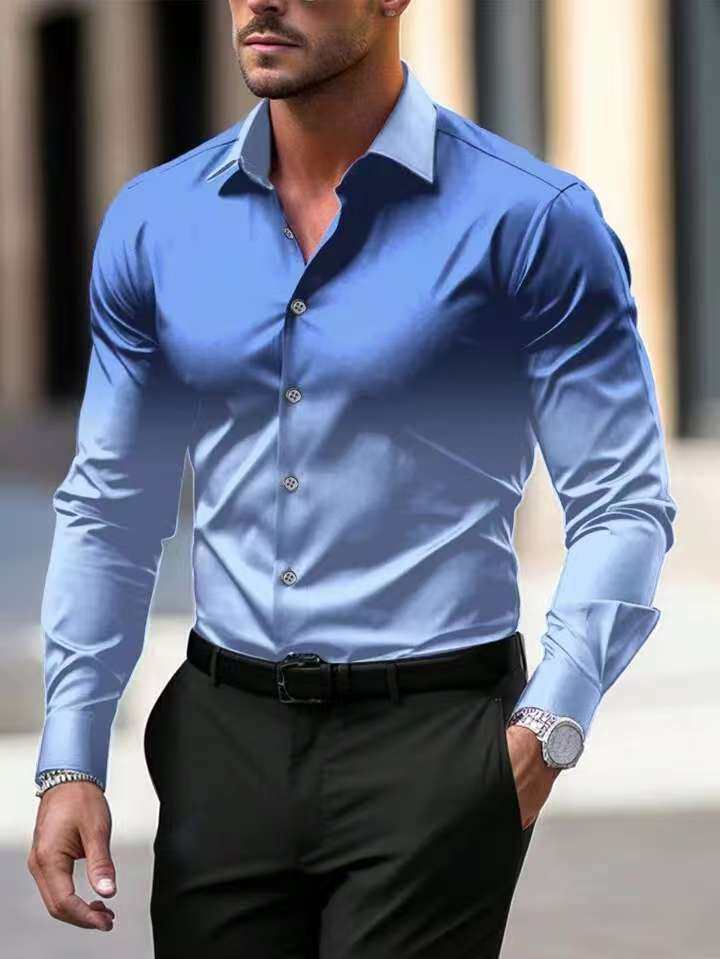 3D Light-Changing Printed Men's Shirt Spring & Fall New Casual Trendy Four-Way Elastic Anti-Wrinkle Slim Long-Sleeved Shirt