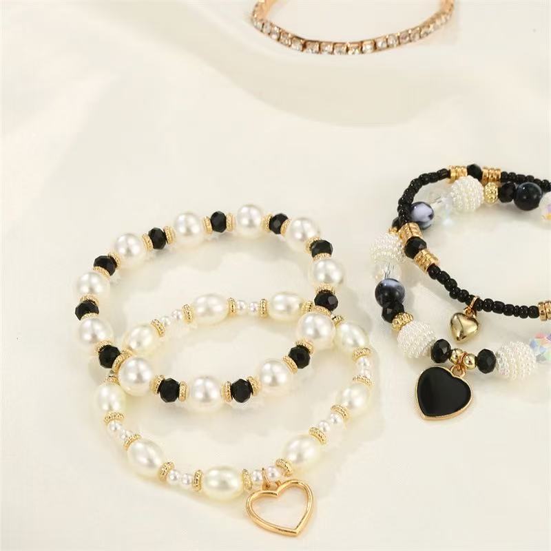 5-piece bracelet pearl hand-beaded women's bohemian fashion heart bracelet