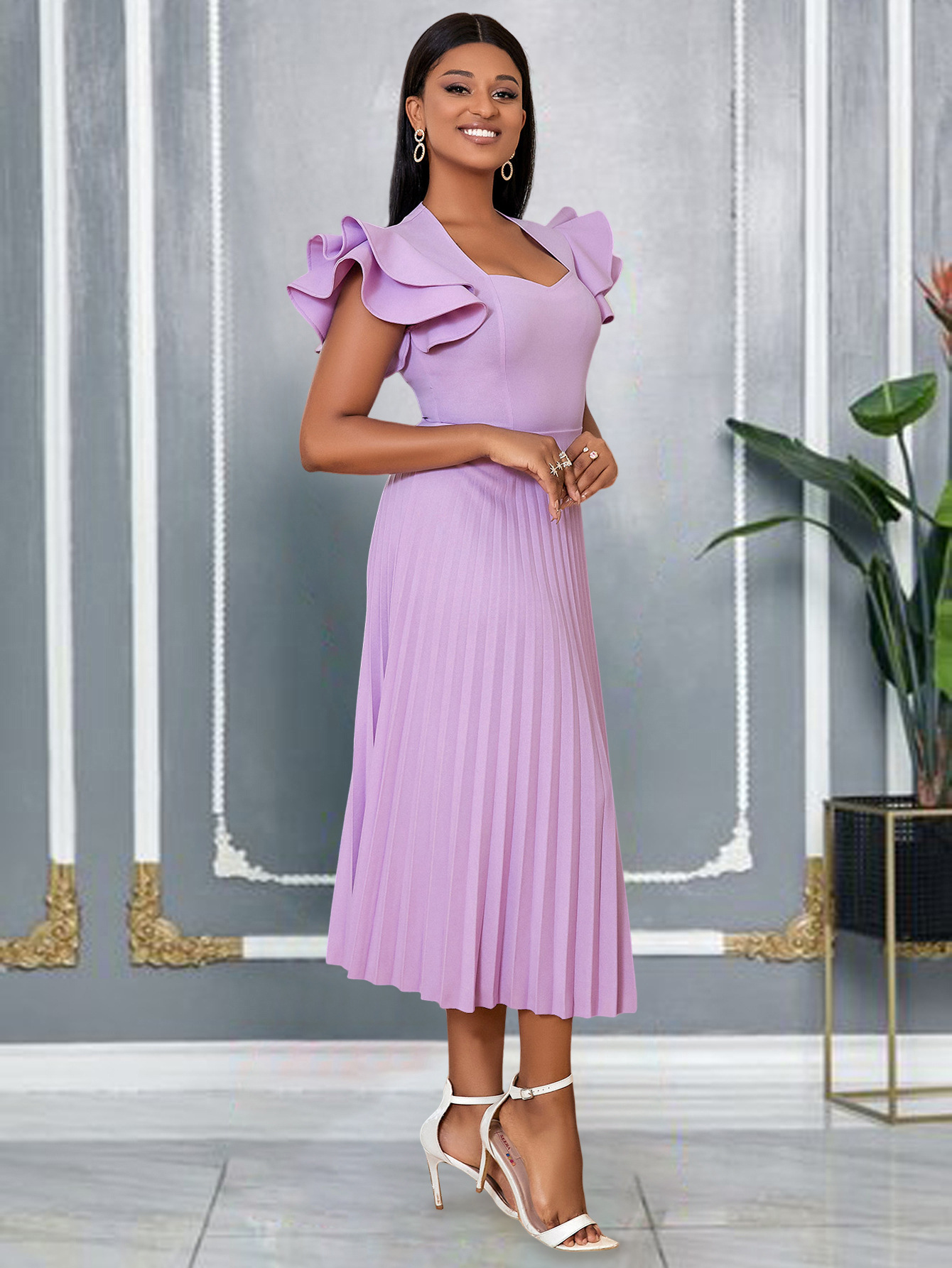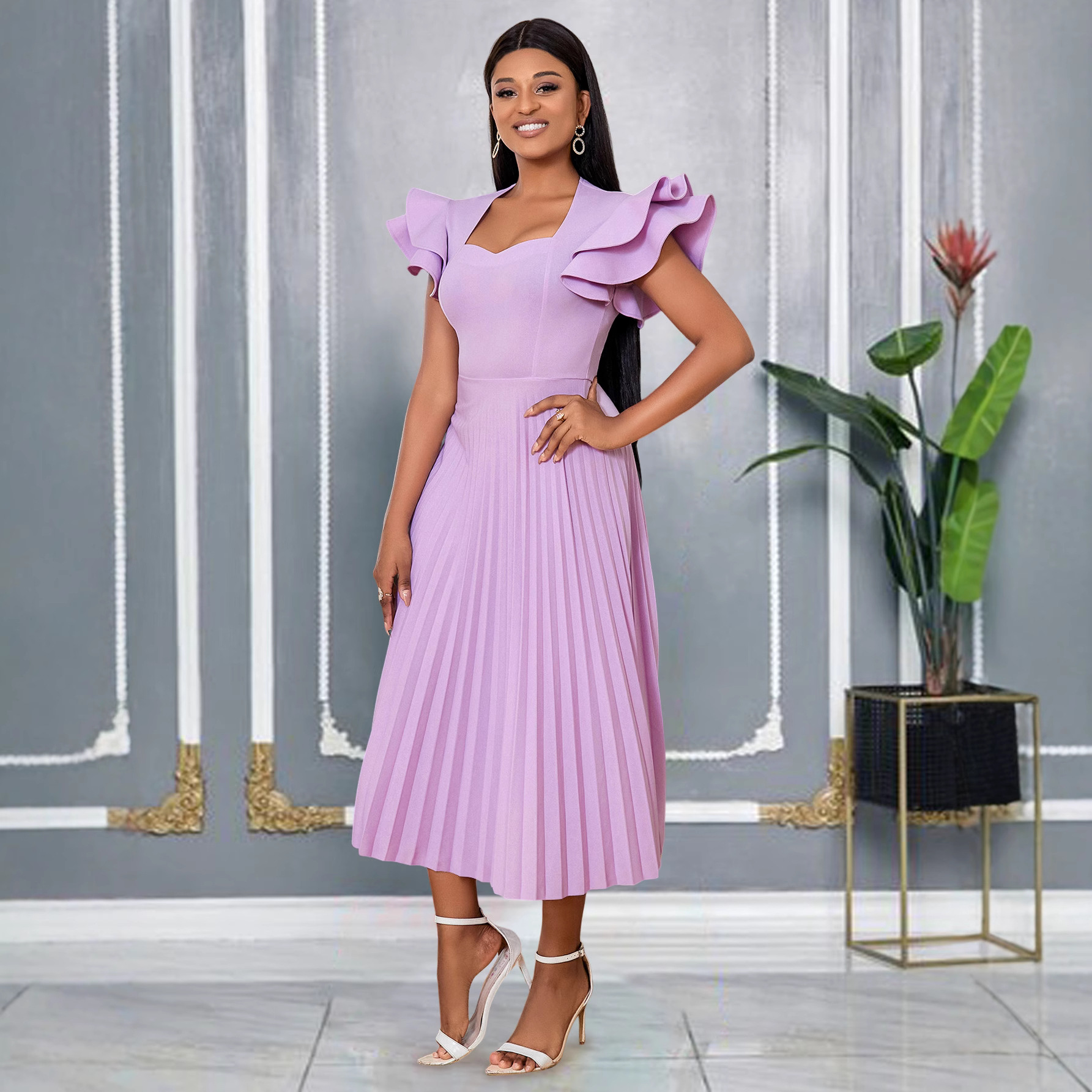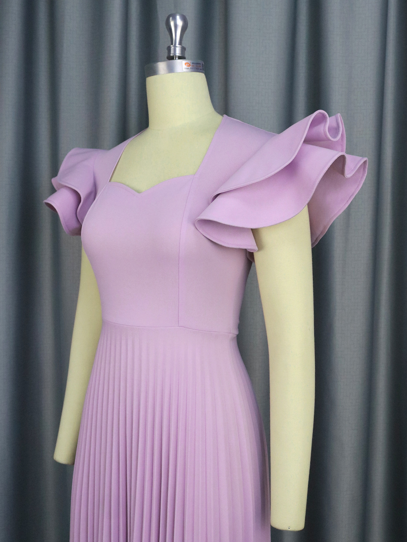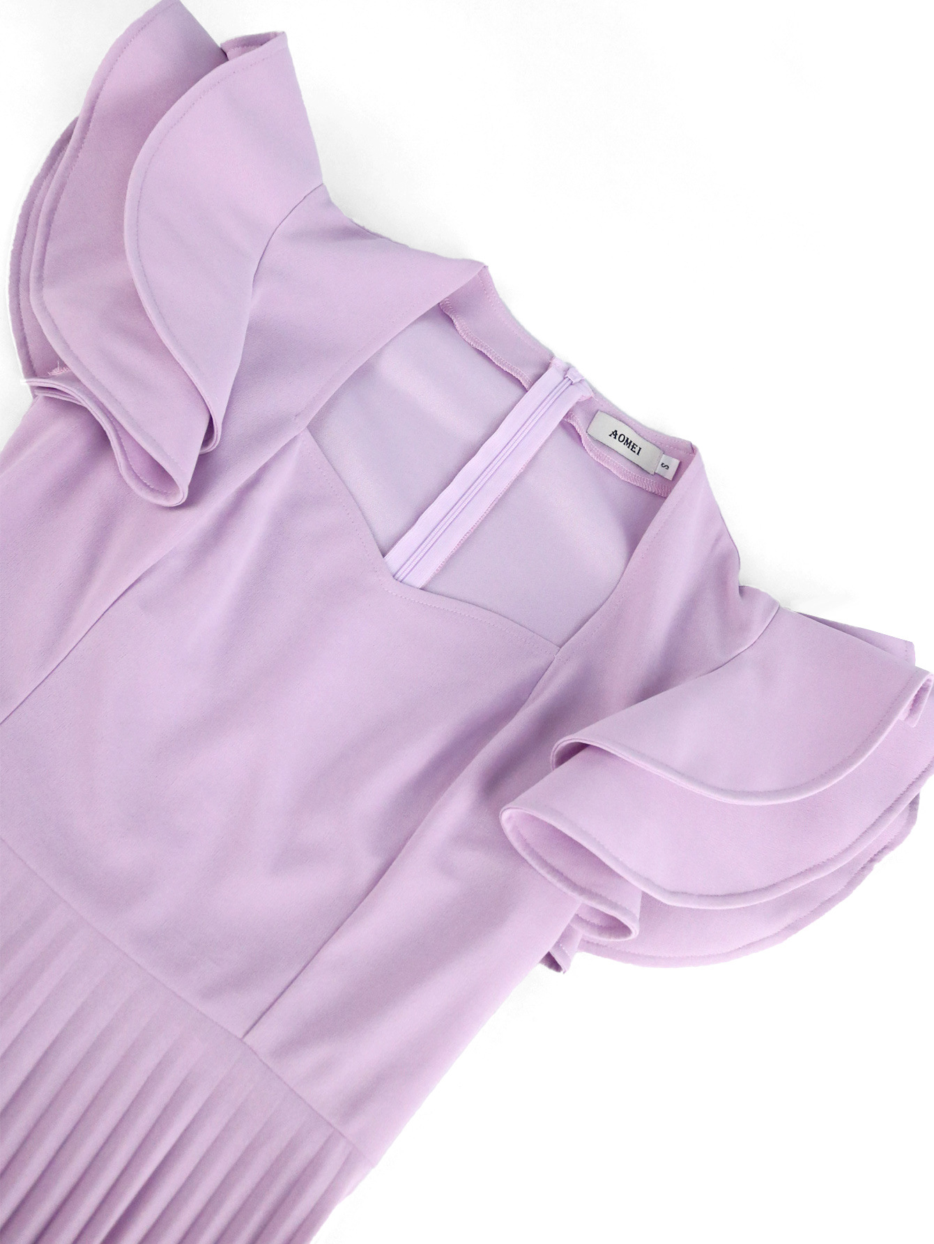 AM030117 Spring and Autumn Purple Square Neck Dress Elegant Temperament Casual Commuting Pleated Skirt Dresses