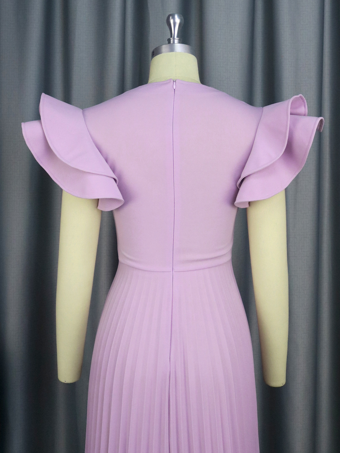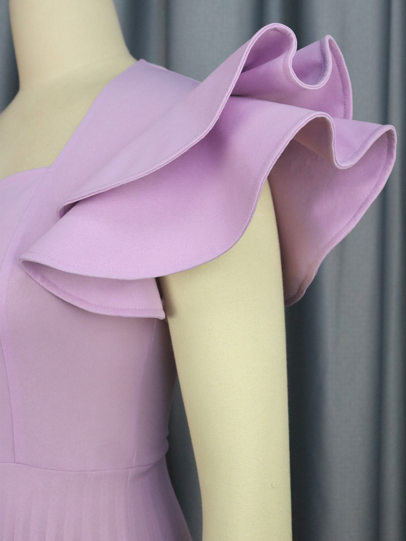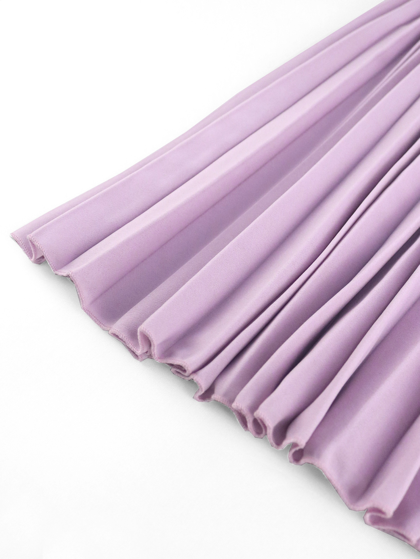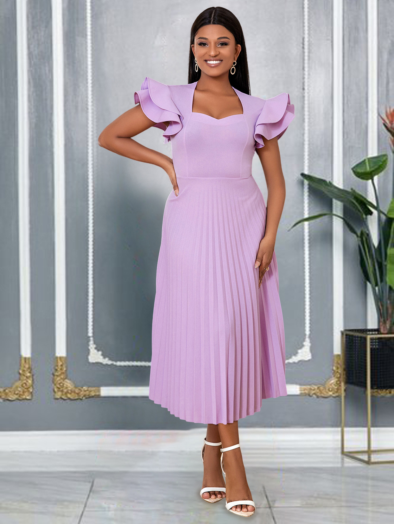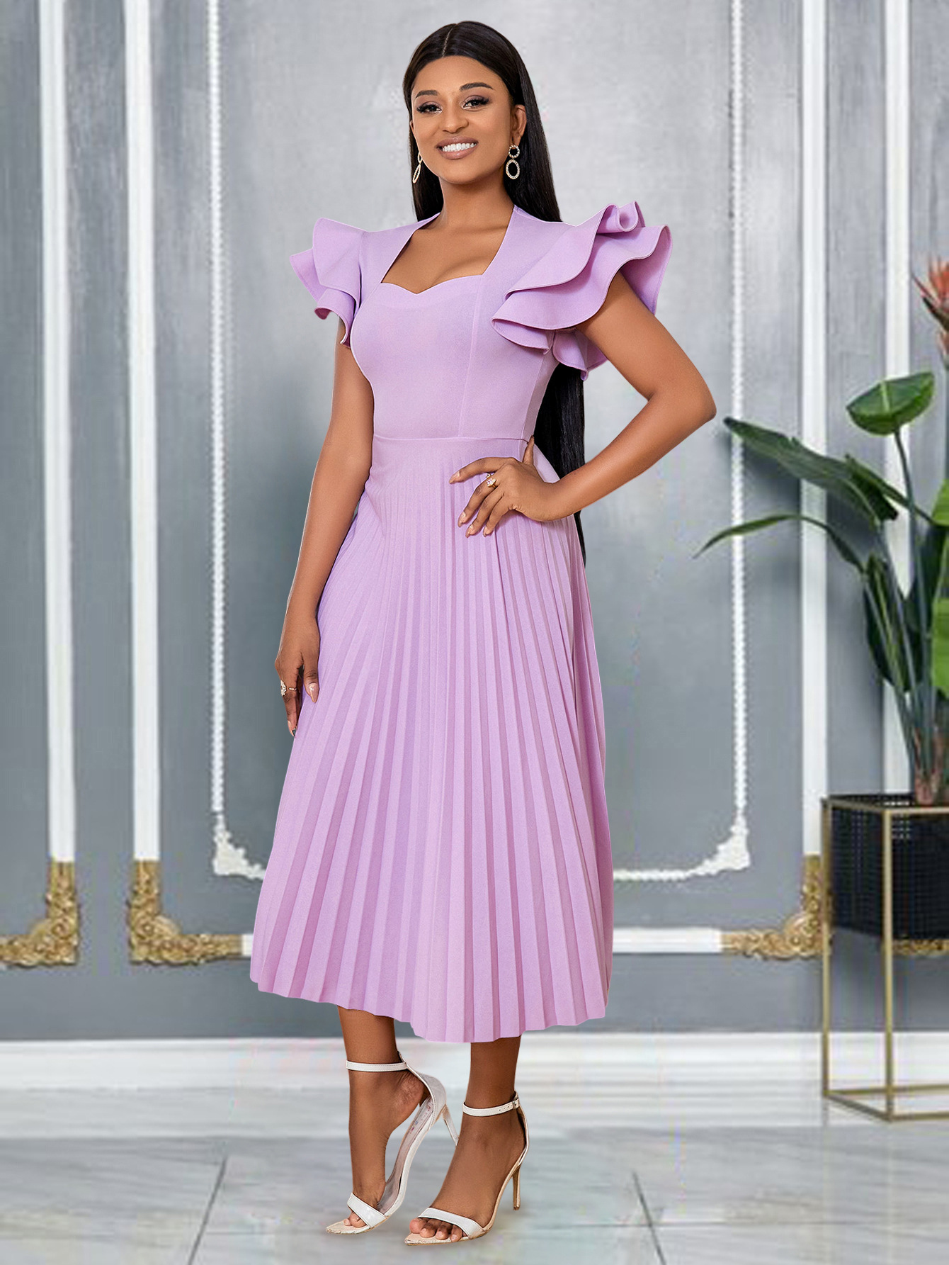 AM030117 Spring and Autumn Purple Square Neck Dress Elegant Temperament Casual Commuting Pleated Skirt Dresses
