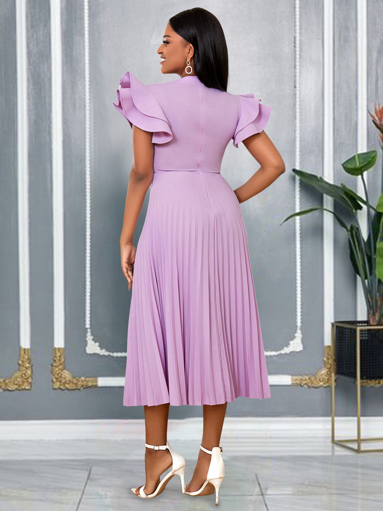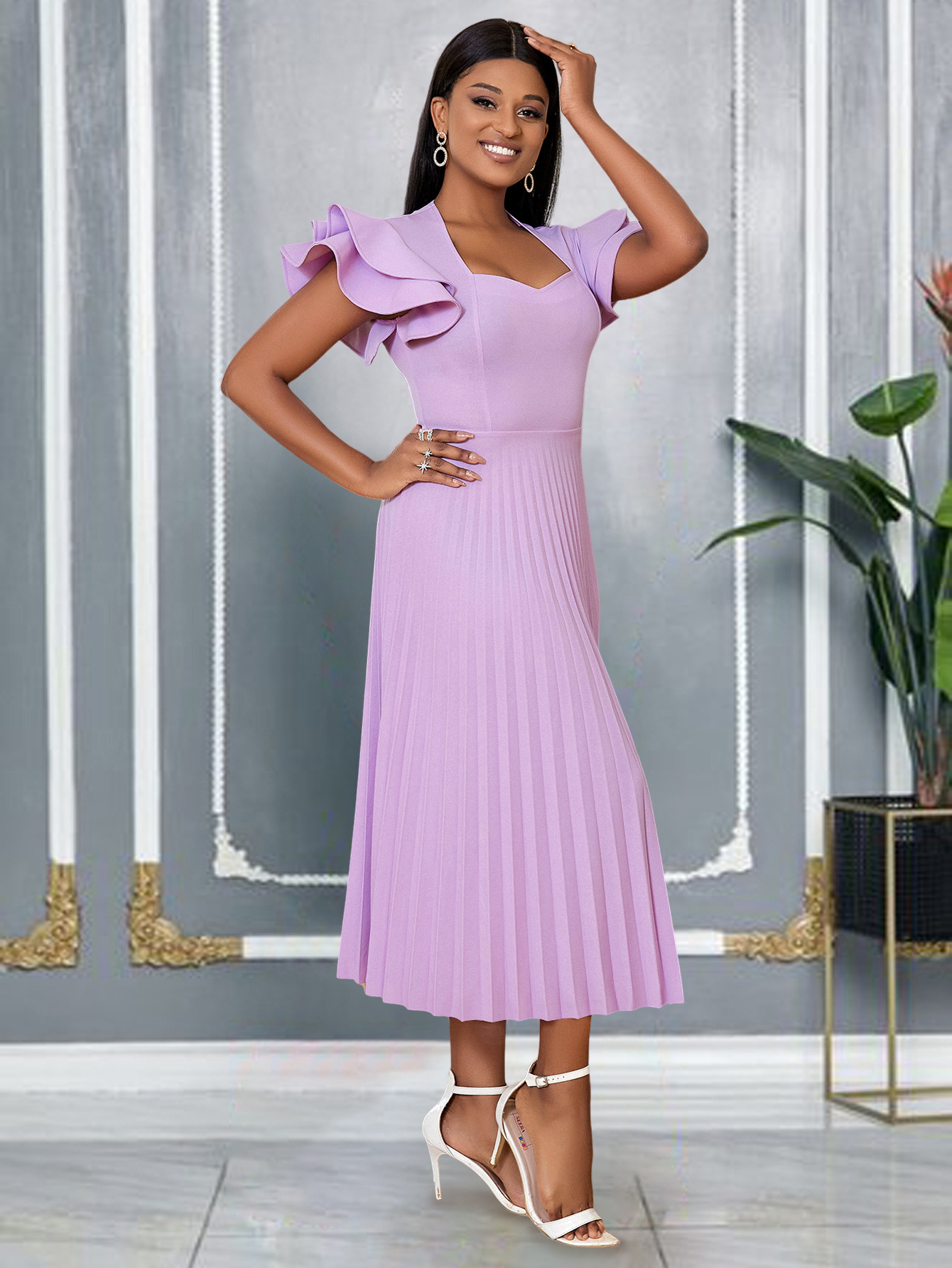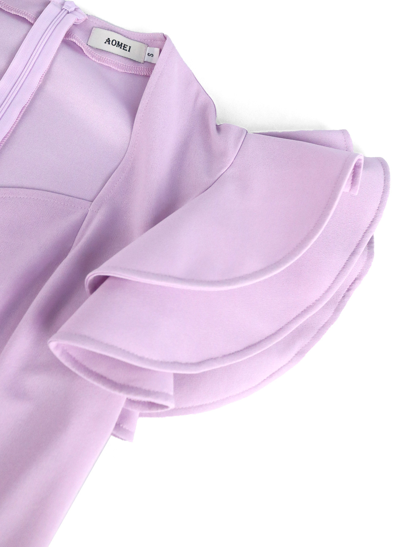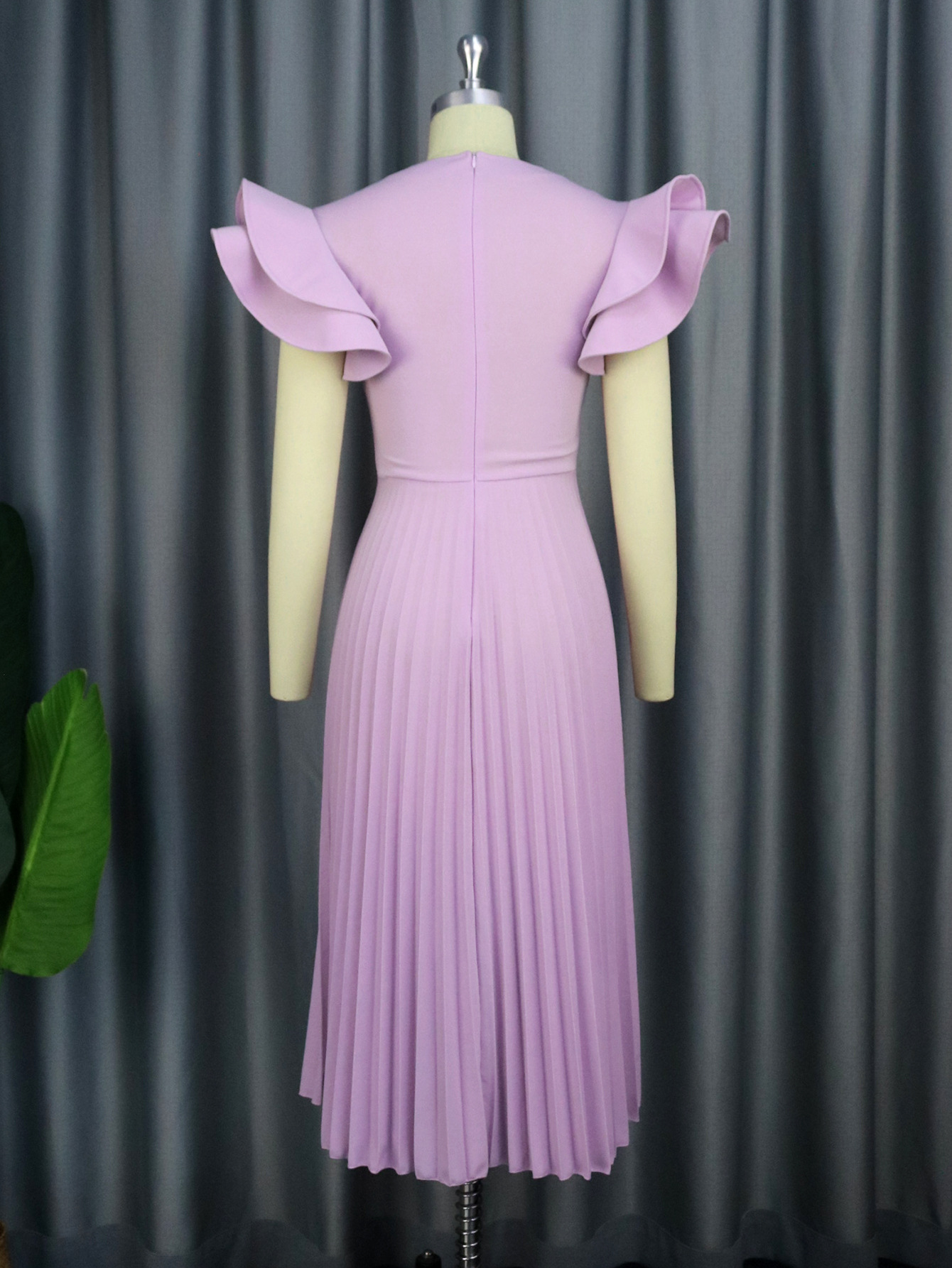 AM030117 Spring and Autumn Purple Square Neck Dress Elegant Temperament Casual Commuting Pleated Skirt Dresses