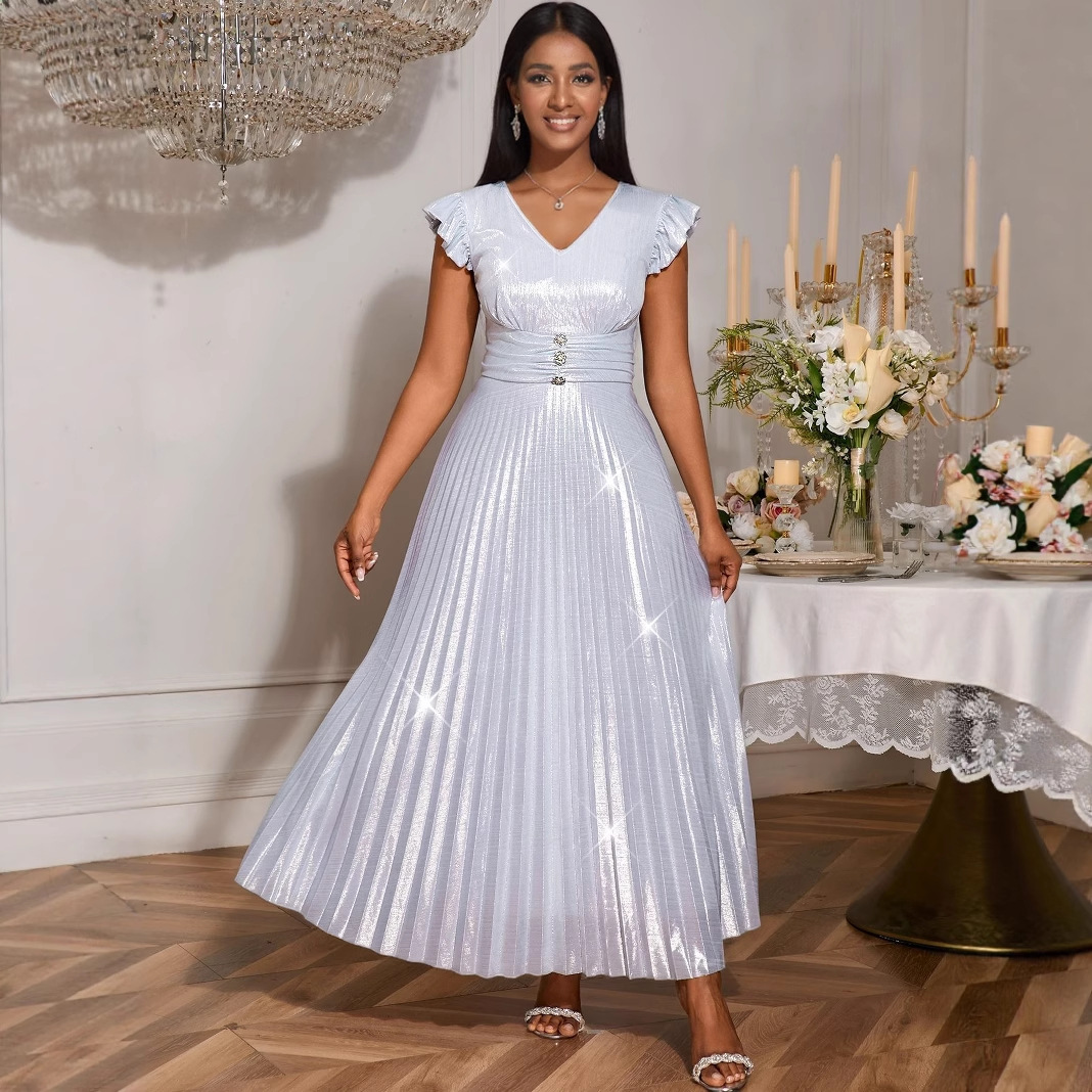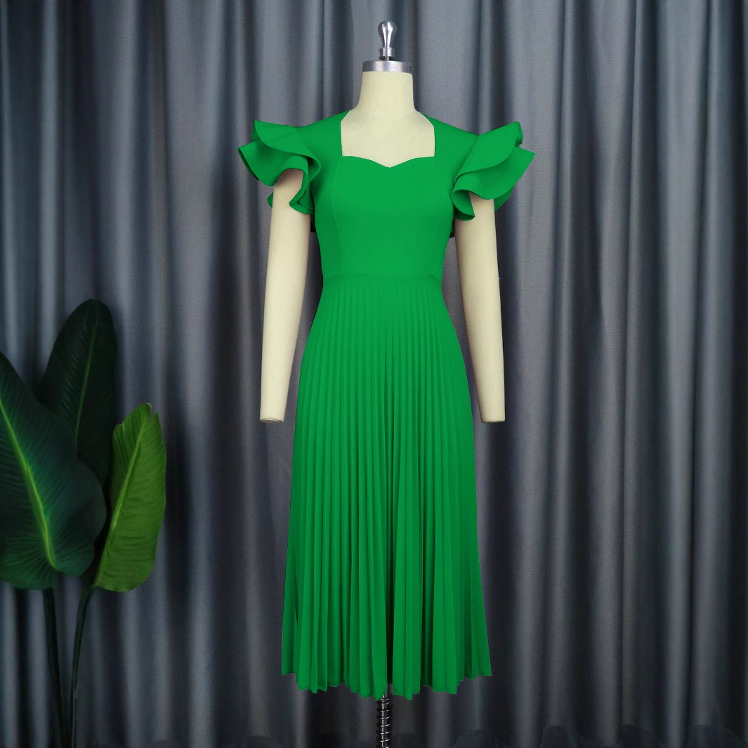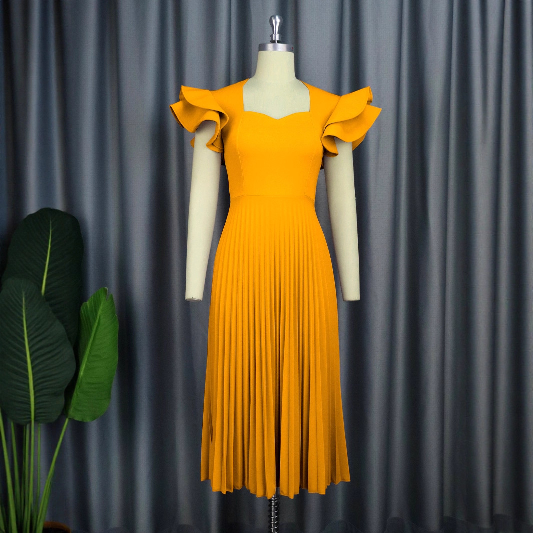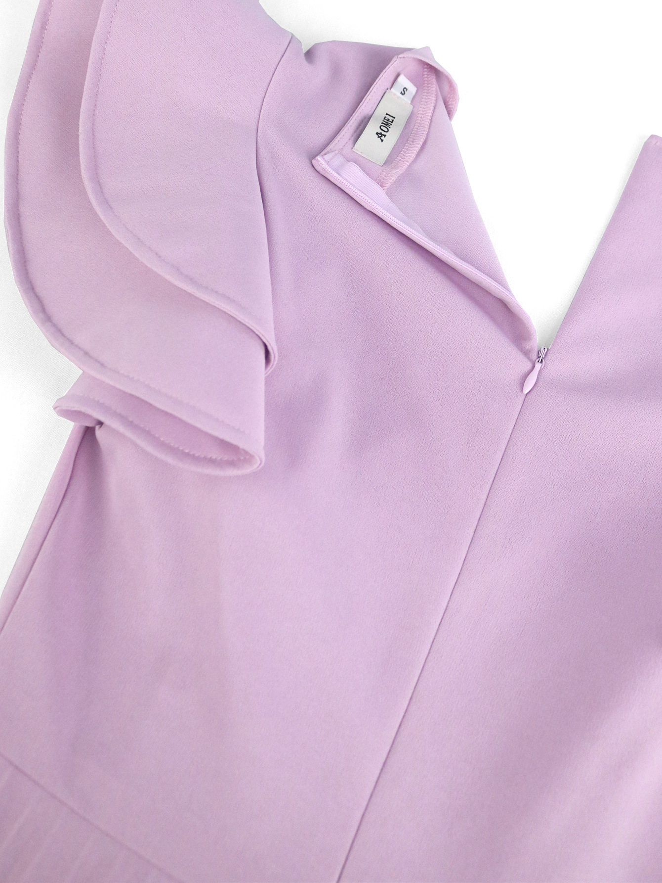 AM030117 Spring and Autumn Purple Square Neck Dress Elegant Temperament Casual Commuting Pleated Skirt Dresses