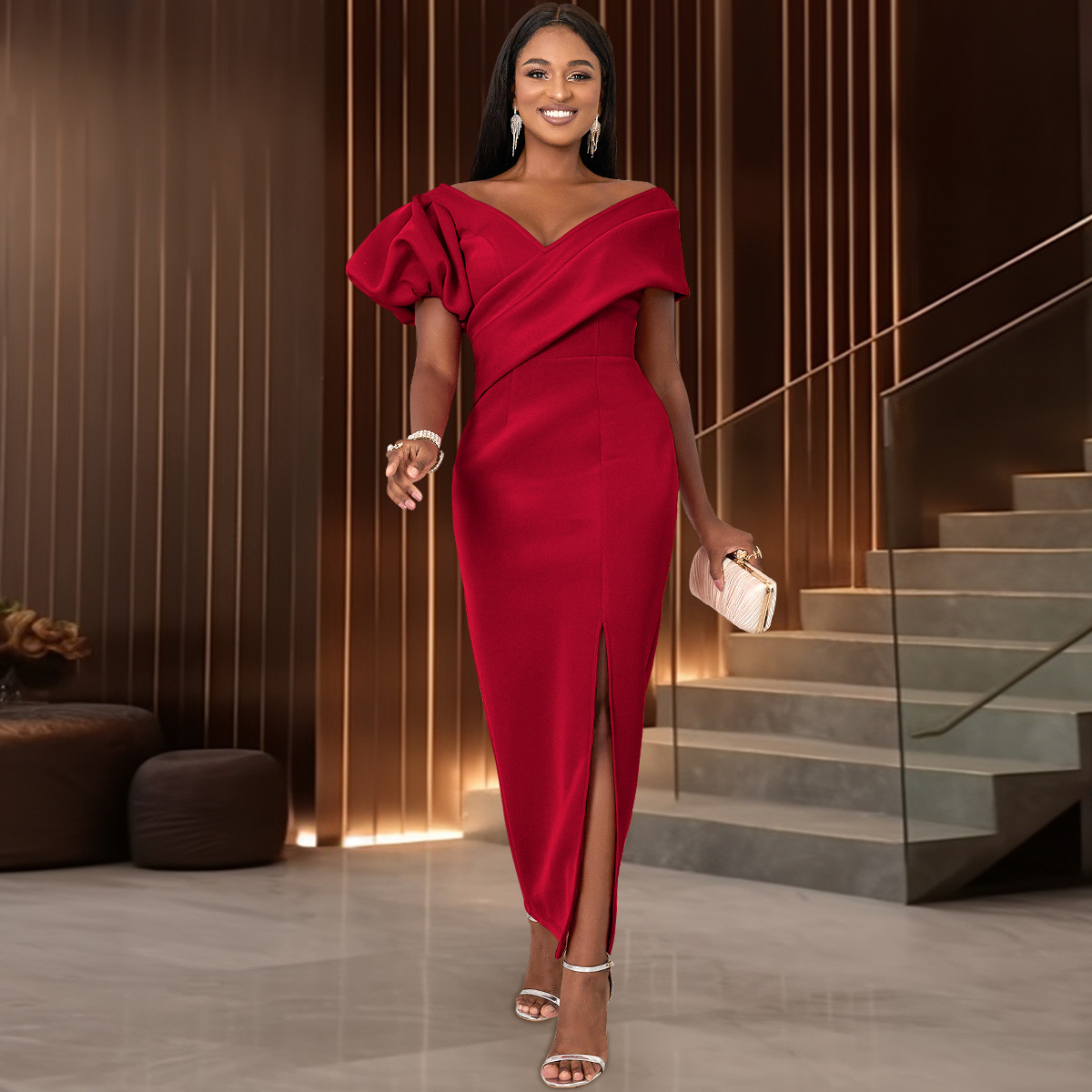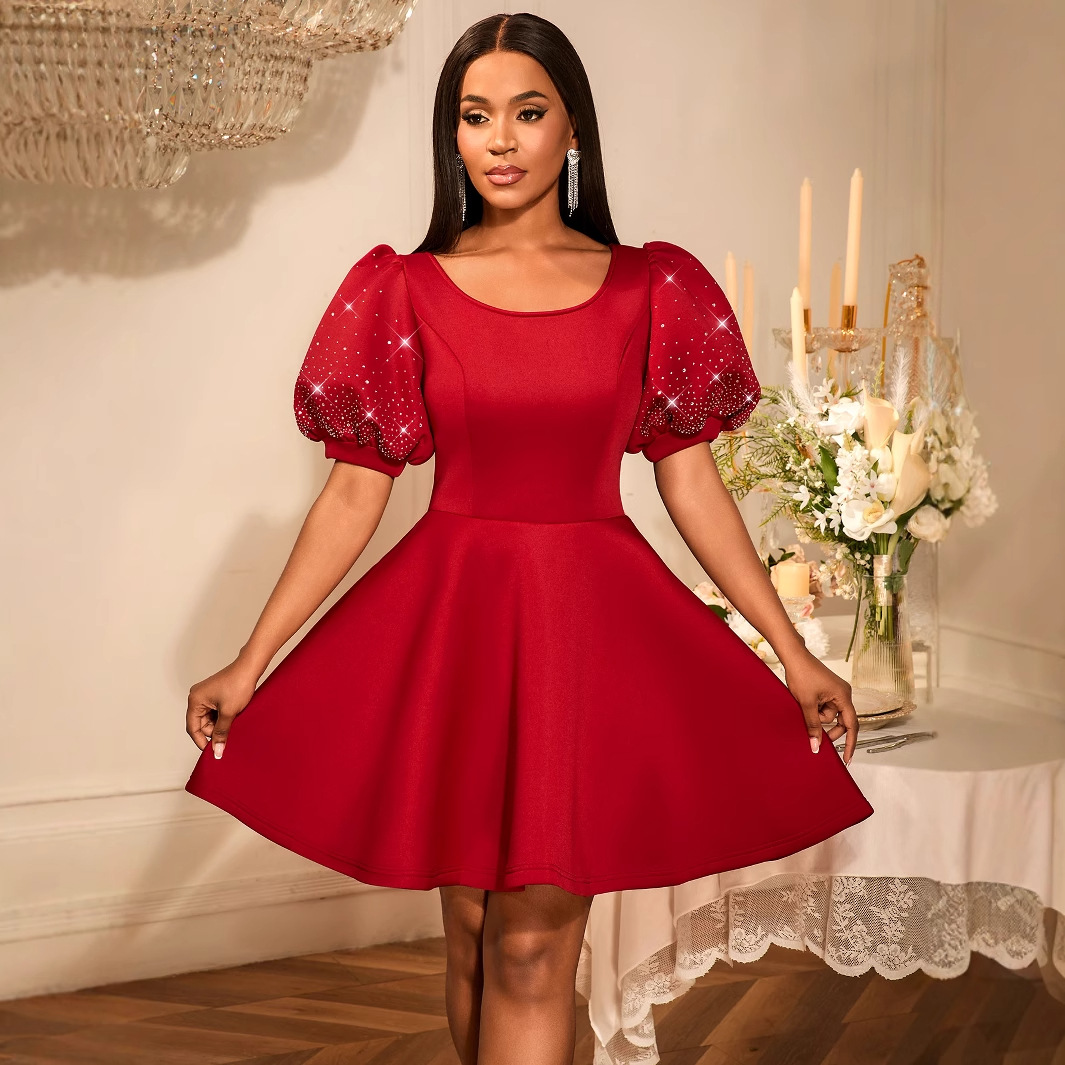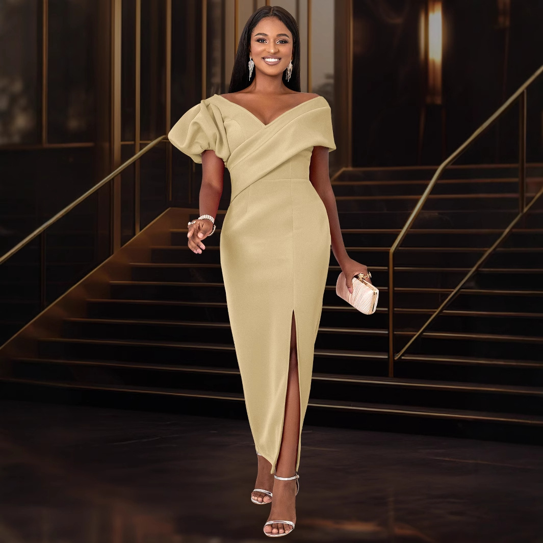 AM030412 Summer comfortable personalized lantern sleeve dress party banquet V-neck dress dress