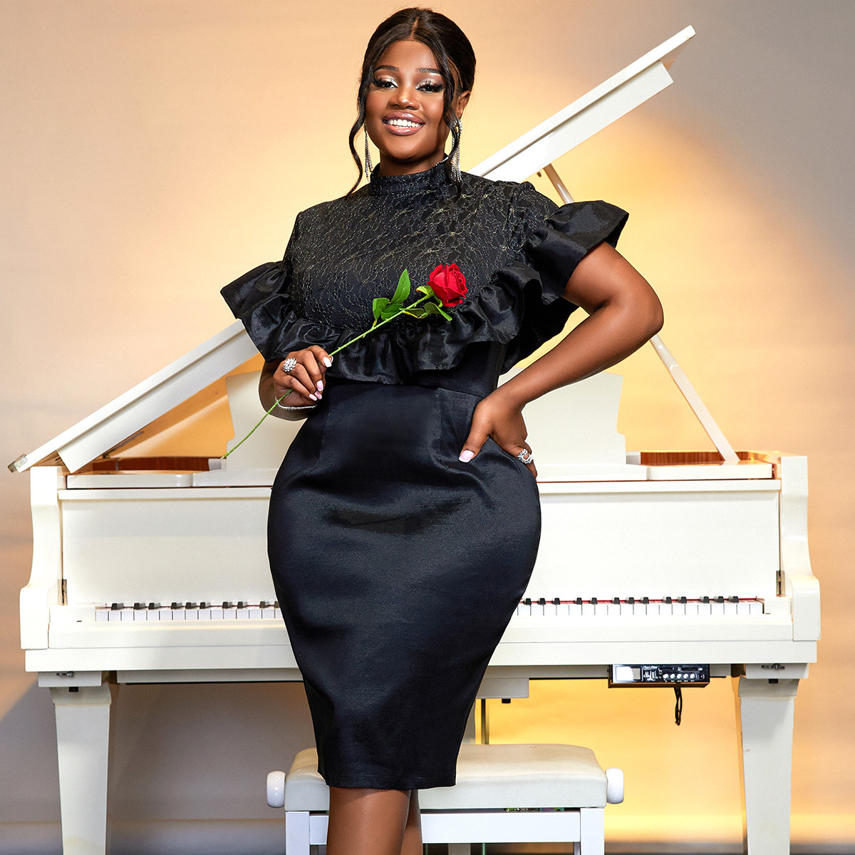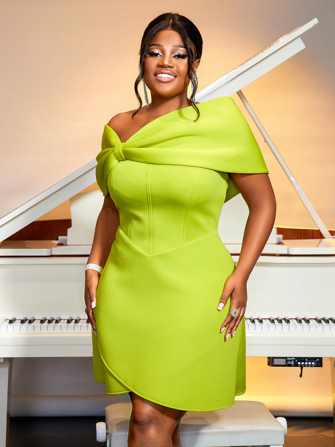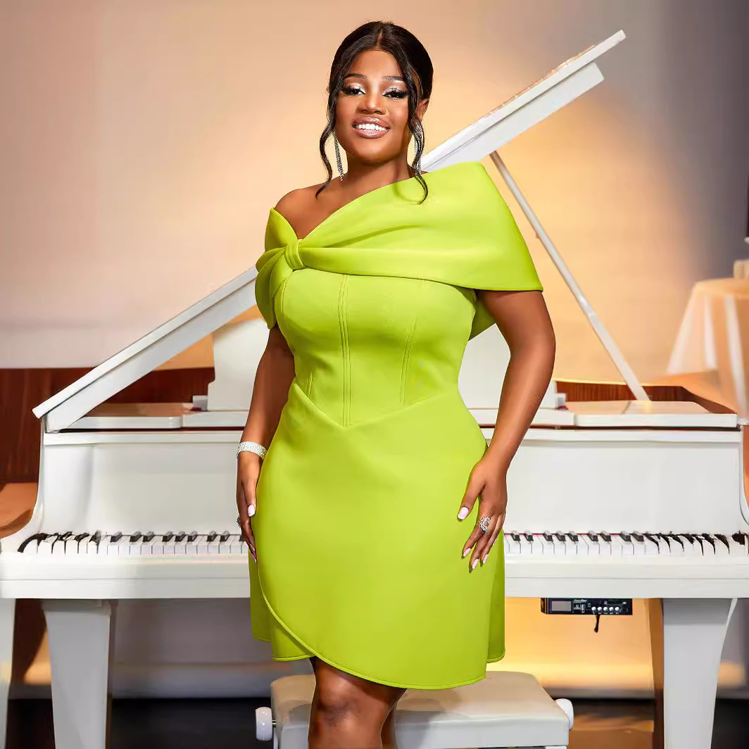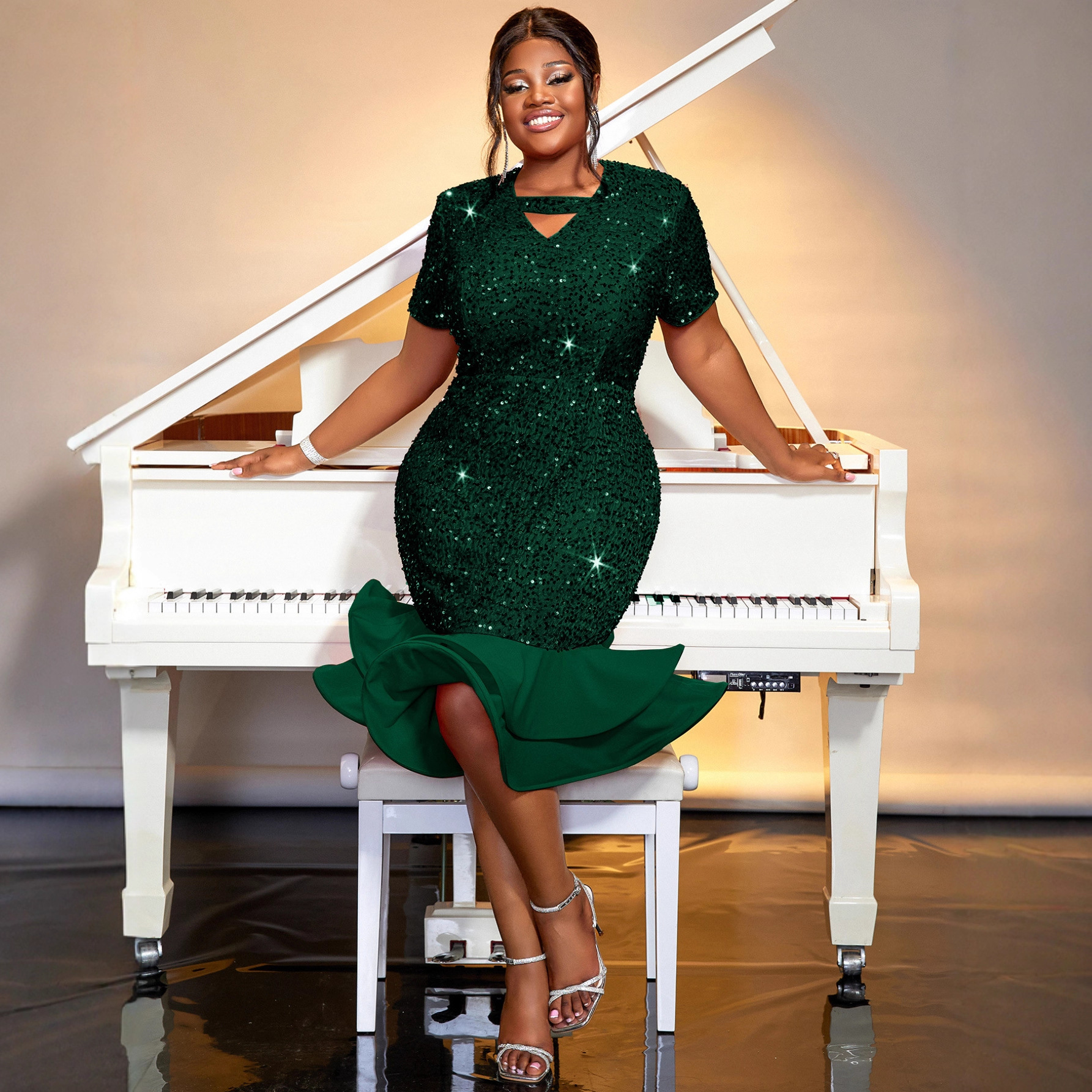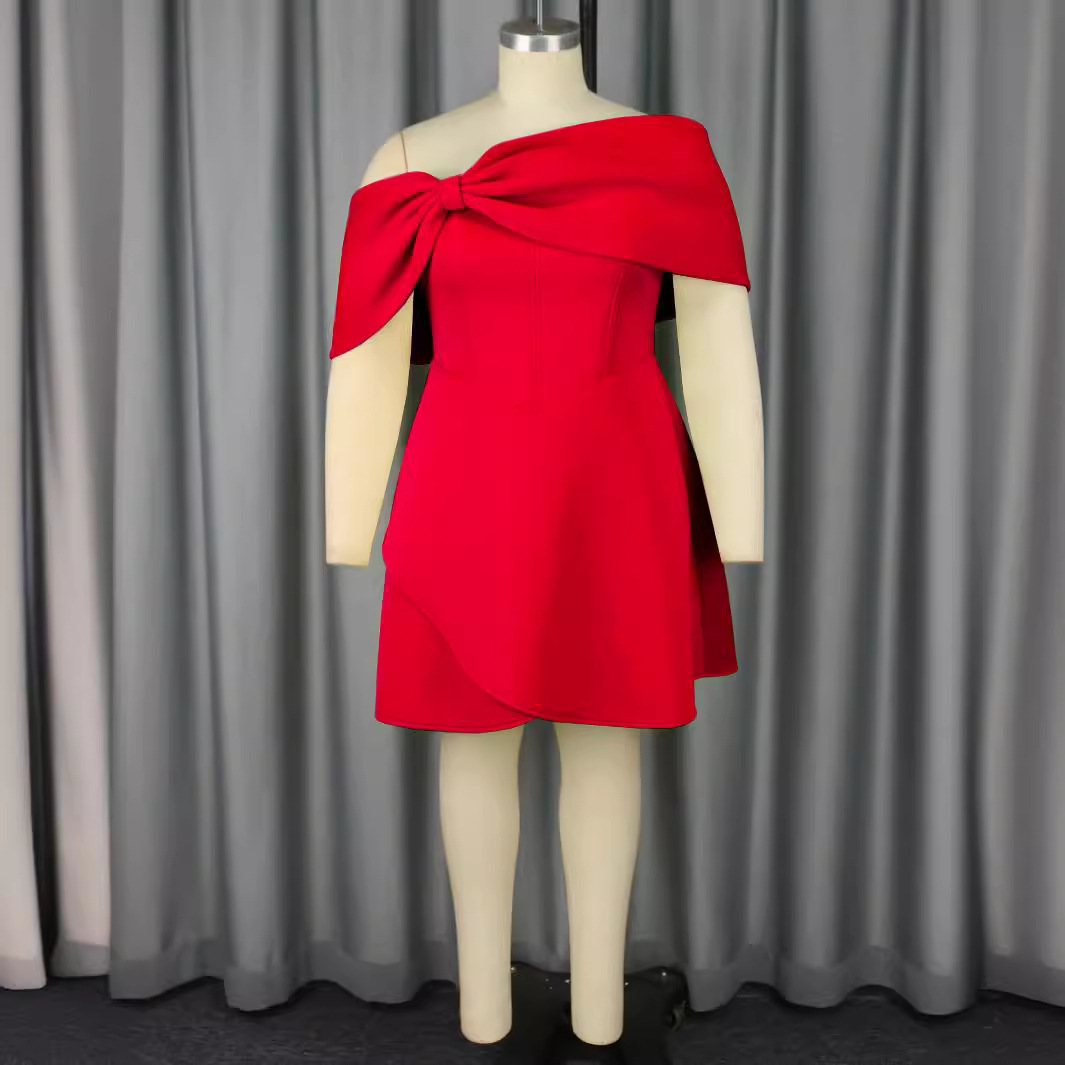 AM040227 Strapless waist-covering A-swing dress commuter party dress Plus size dress