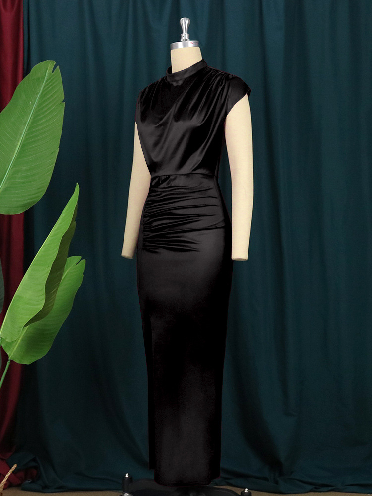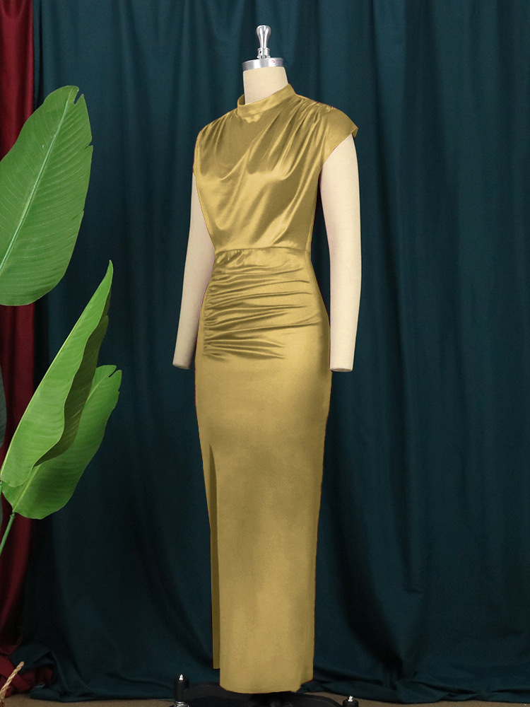 AM211217 long dress solid color dress high waist temperament commuting red knitted dress long dresses