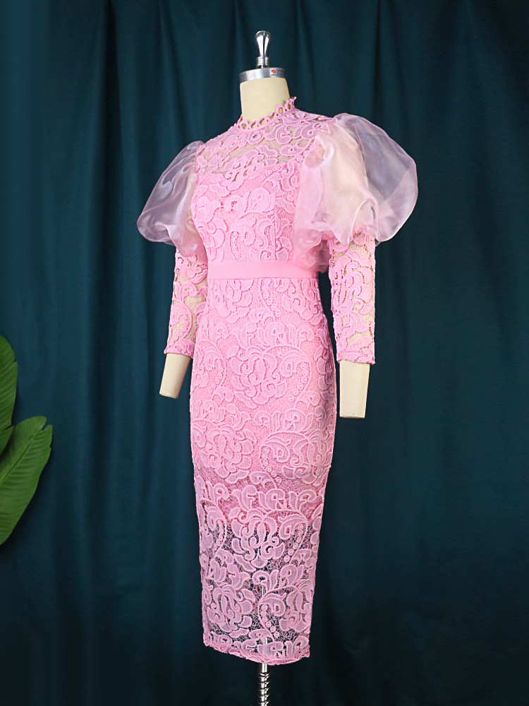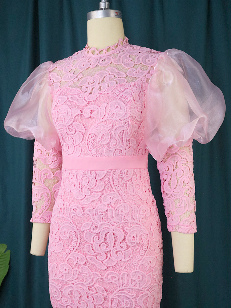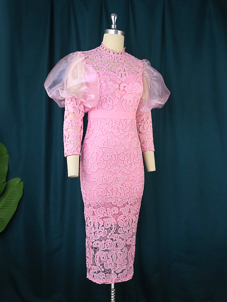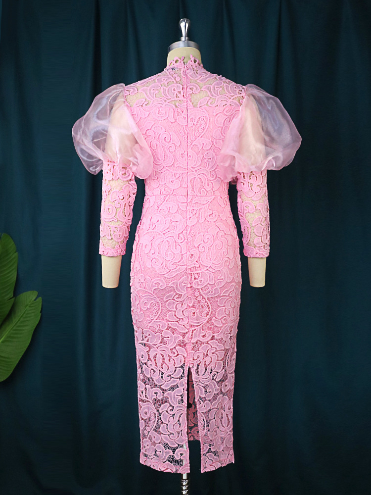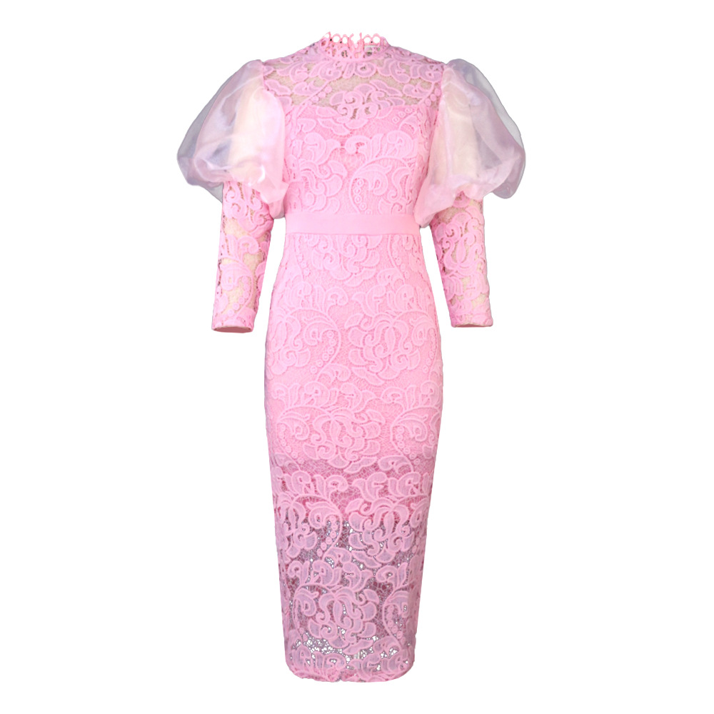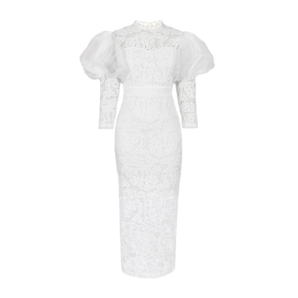 AM220540 lace see-through puff sleeves three-quarter sleeve slim party dress women party dress