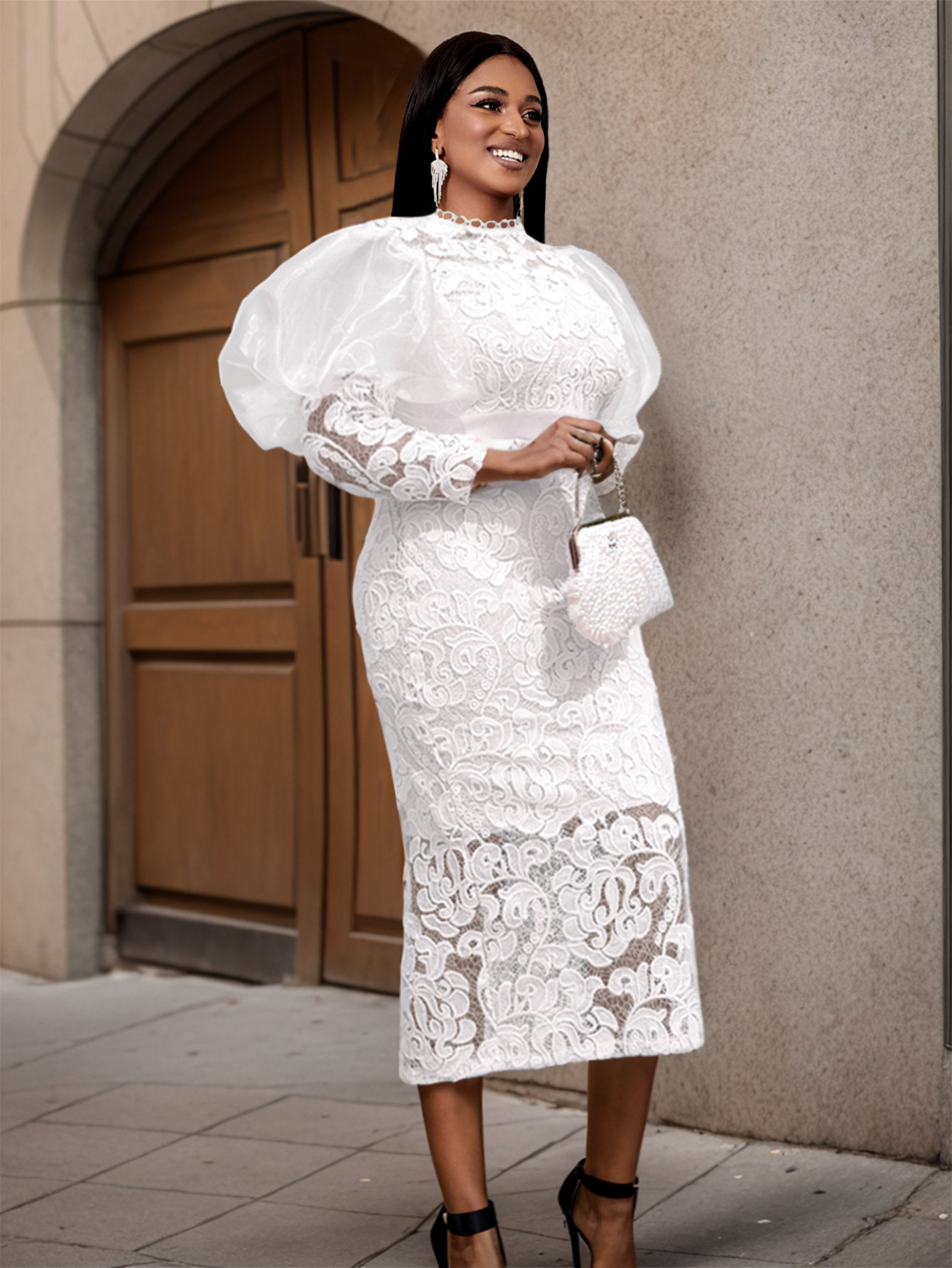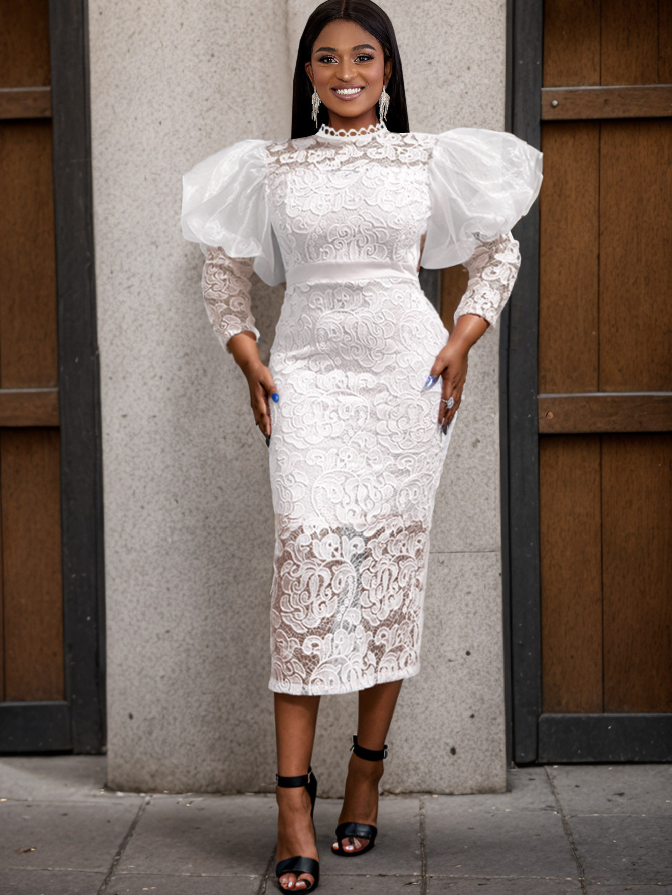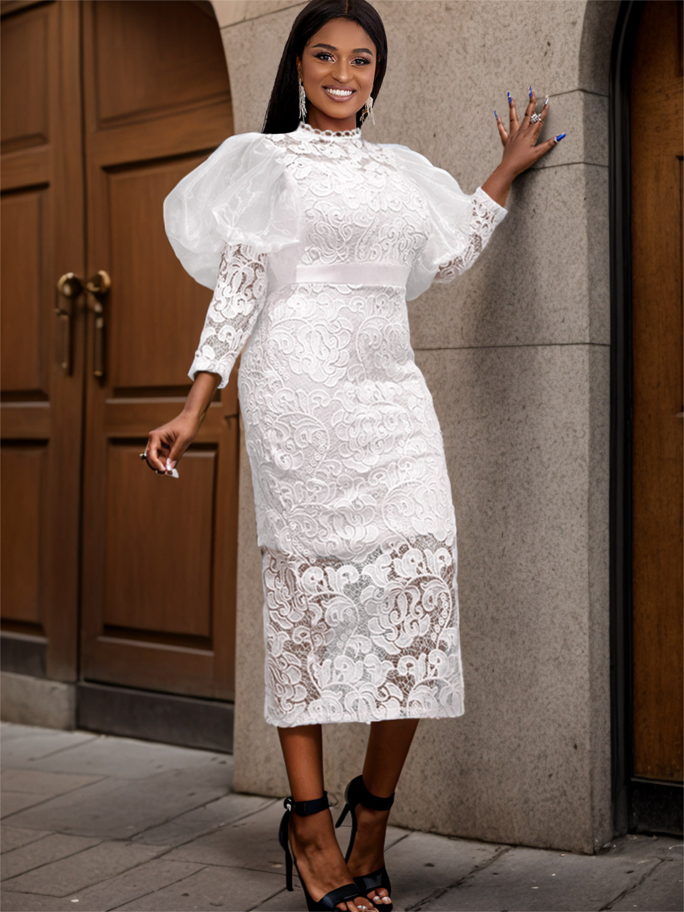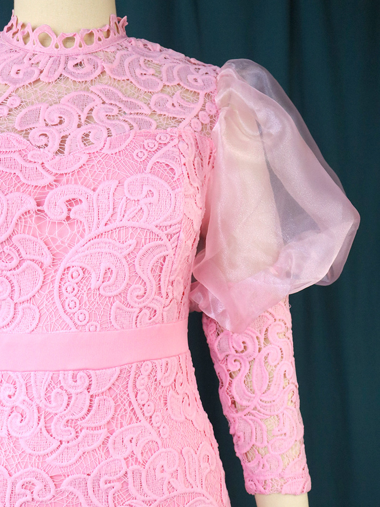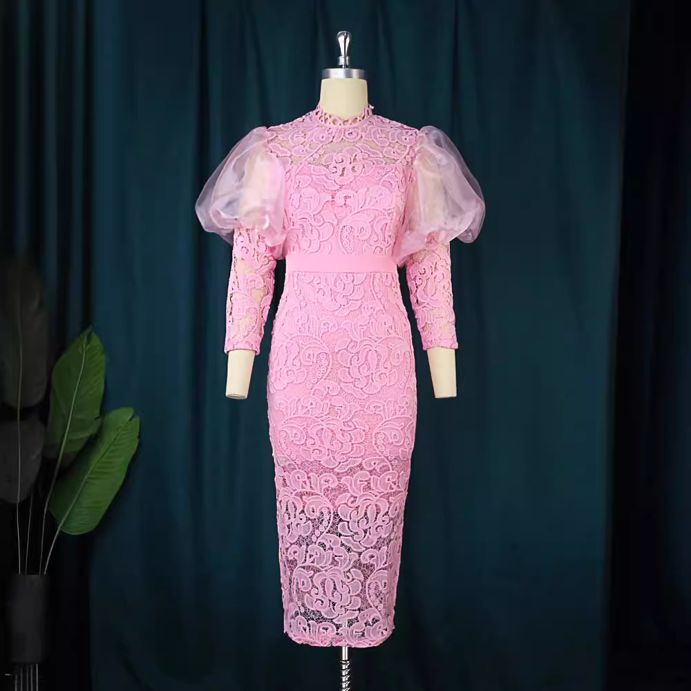 AM220540 lace see-through puff sleeves three-quarter sleeve slim party dress women party dress