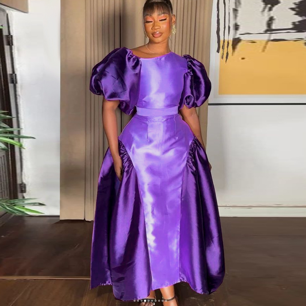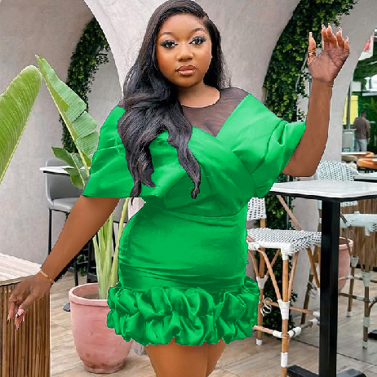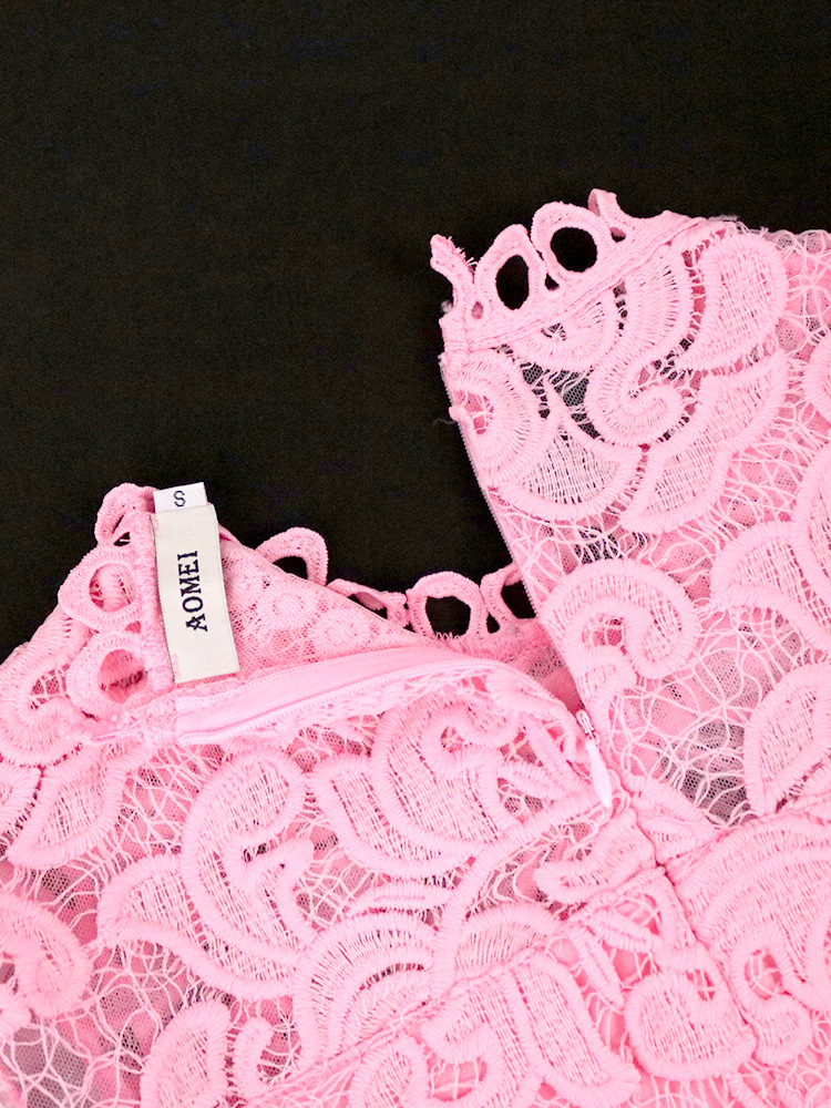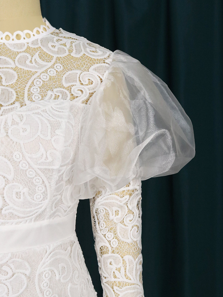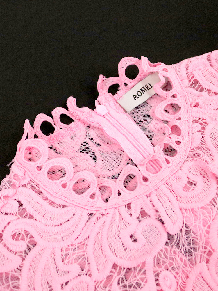 AM220540 lace see-through puff sleeves three-quarter sleeve slim party dress women party dress