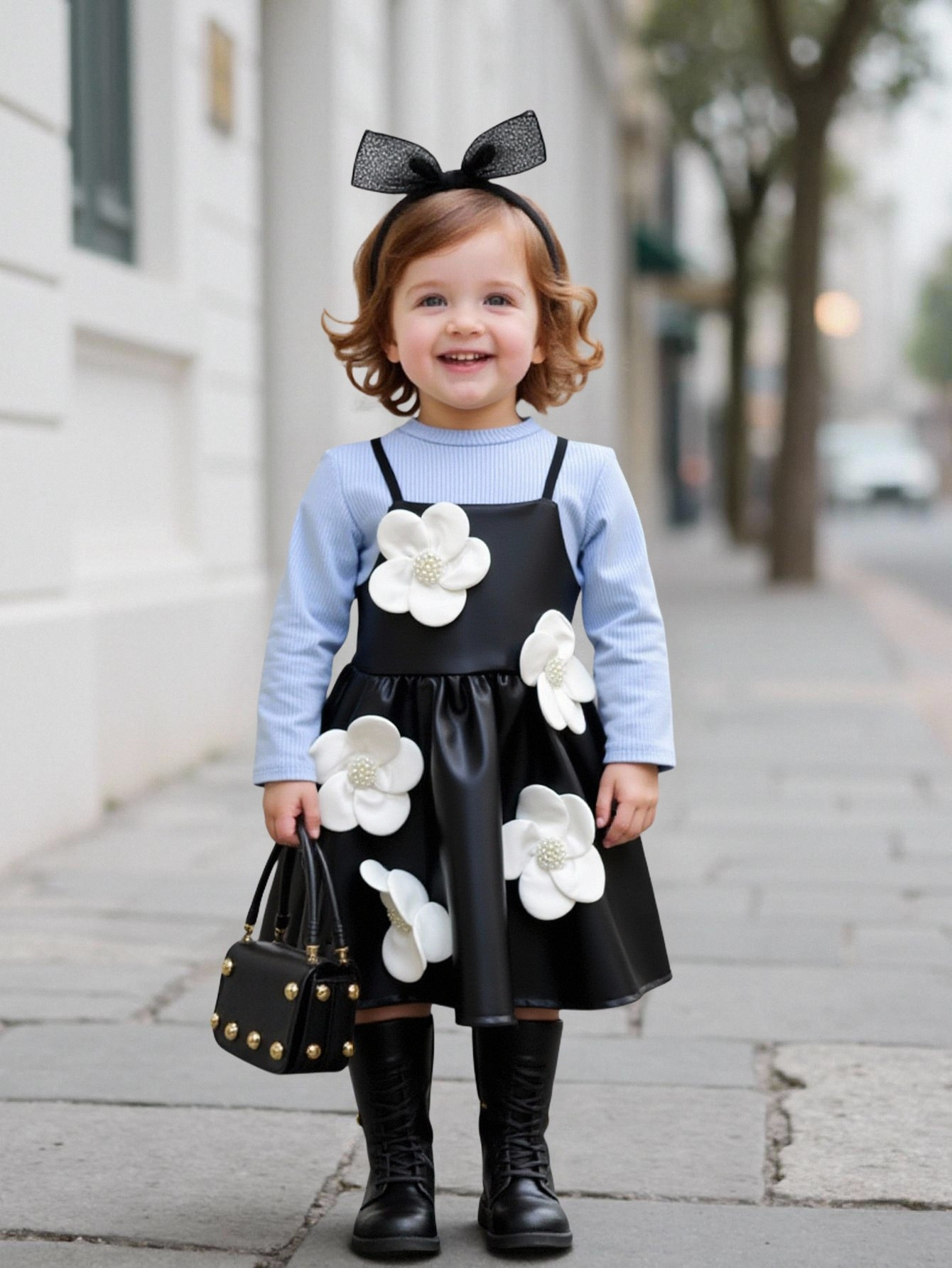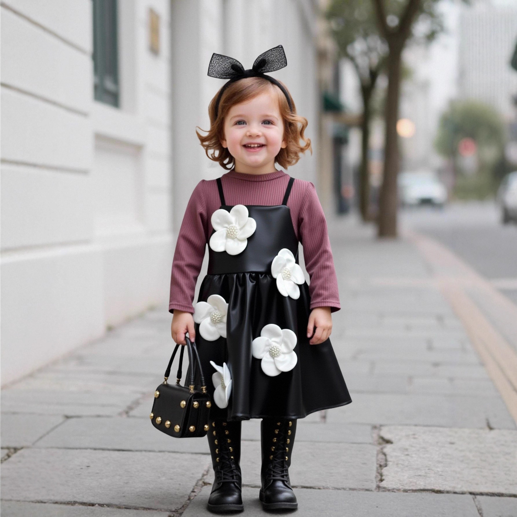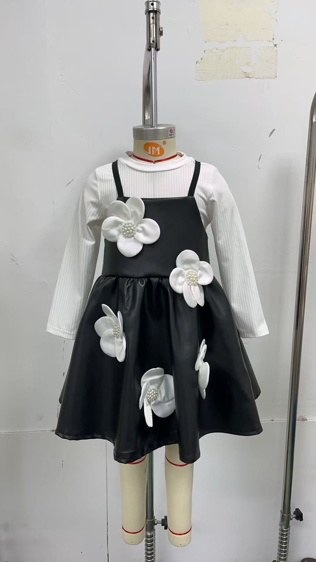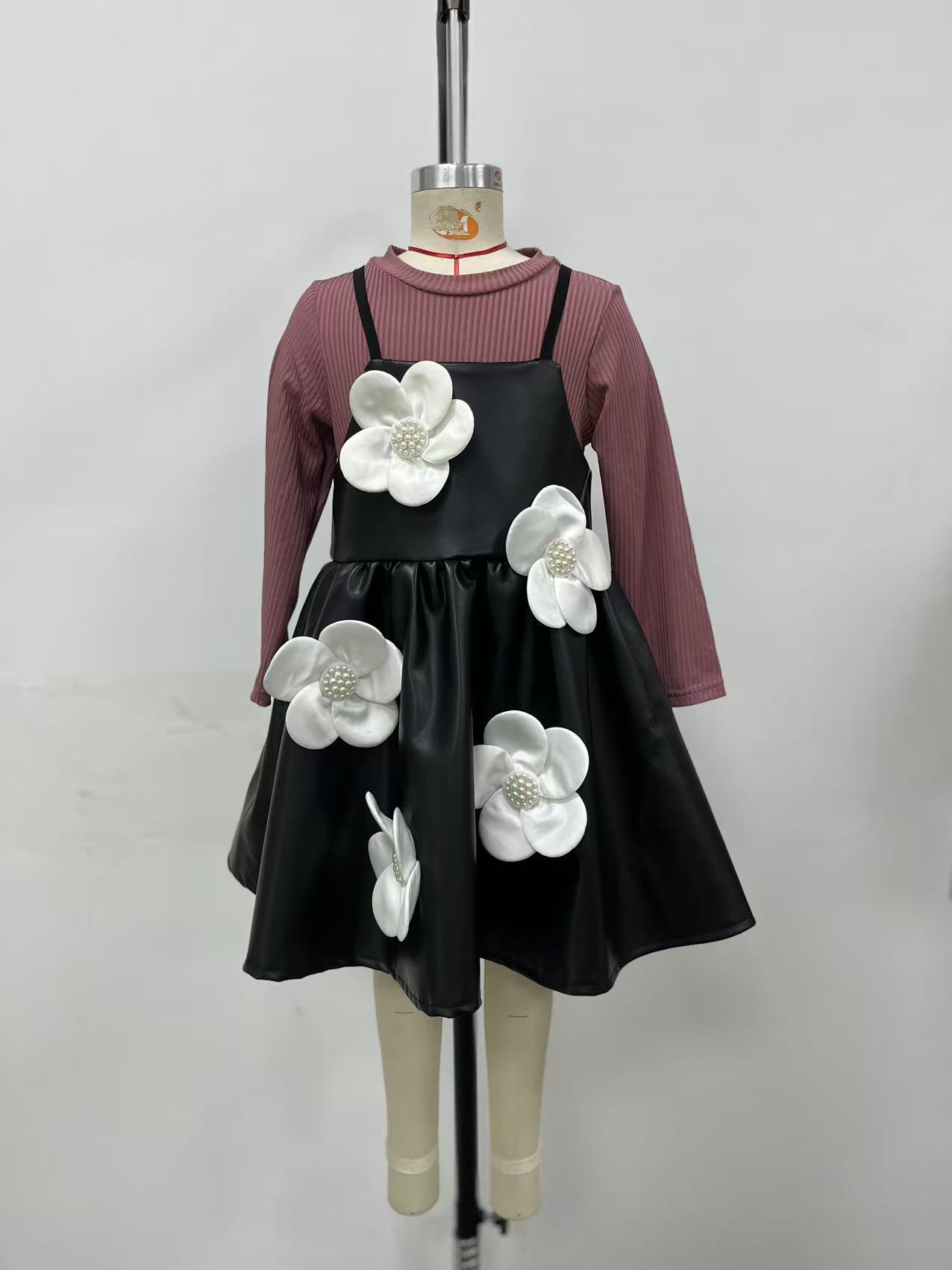 Autumn and winter girls new bottoming shirt three-dimensional flower leather skirt dress suit children