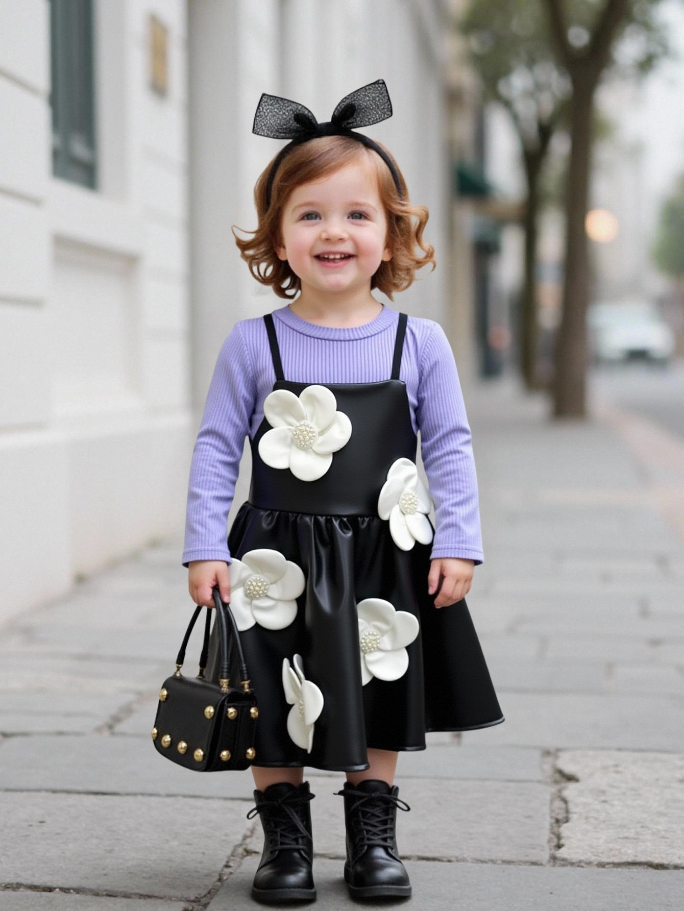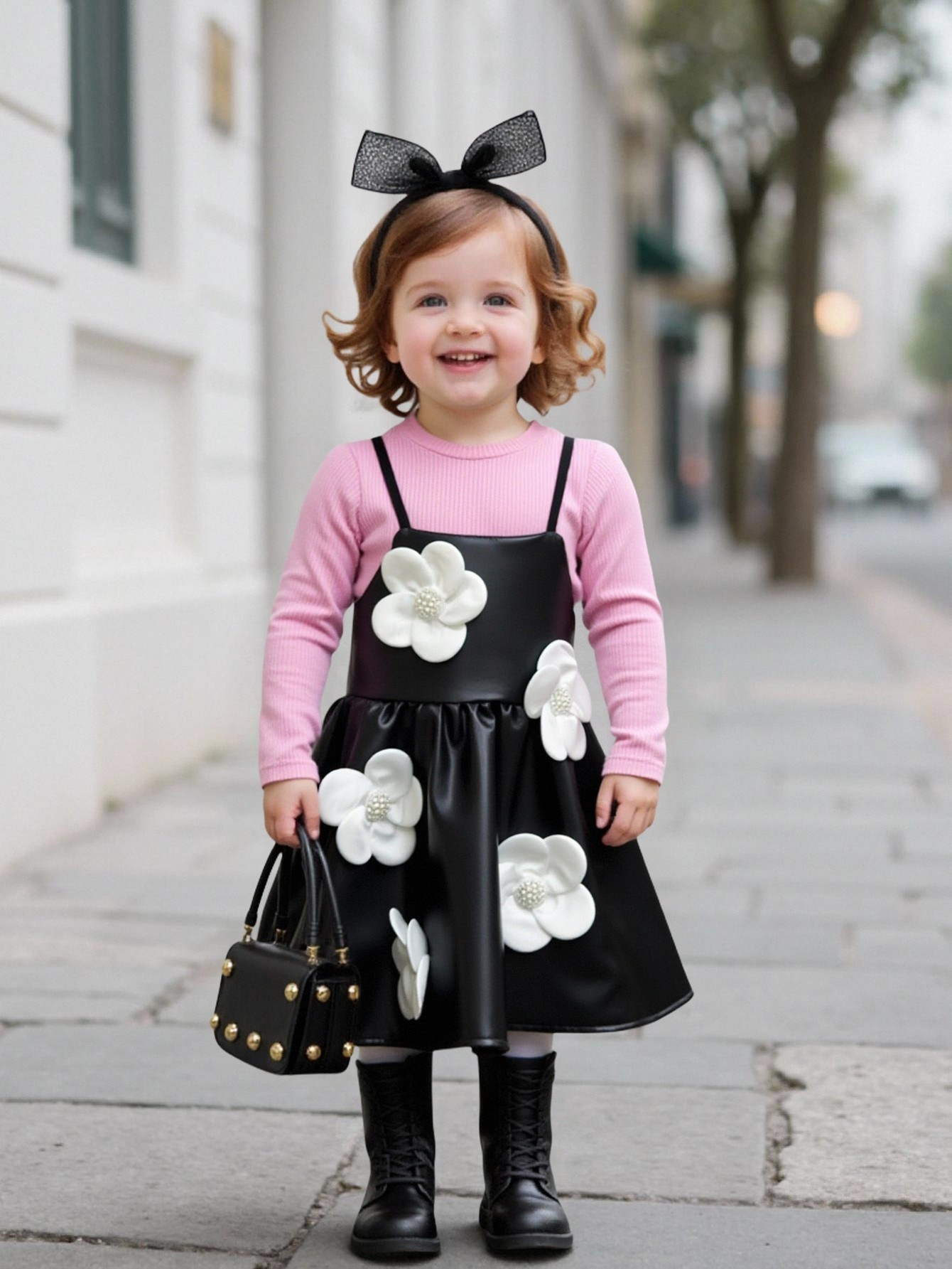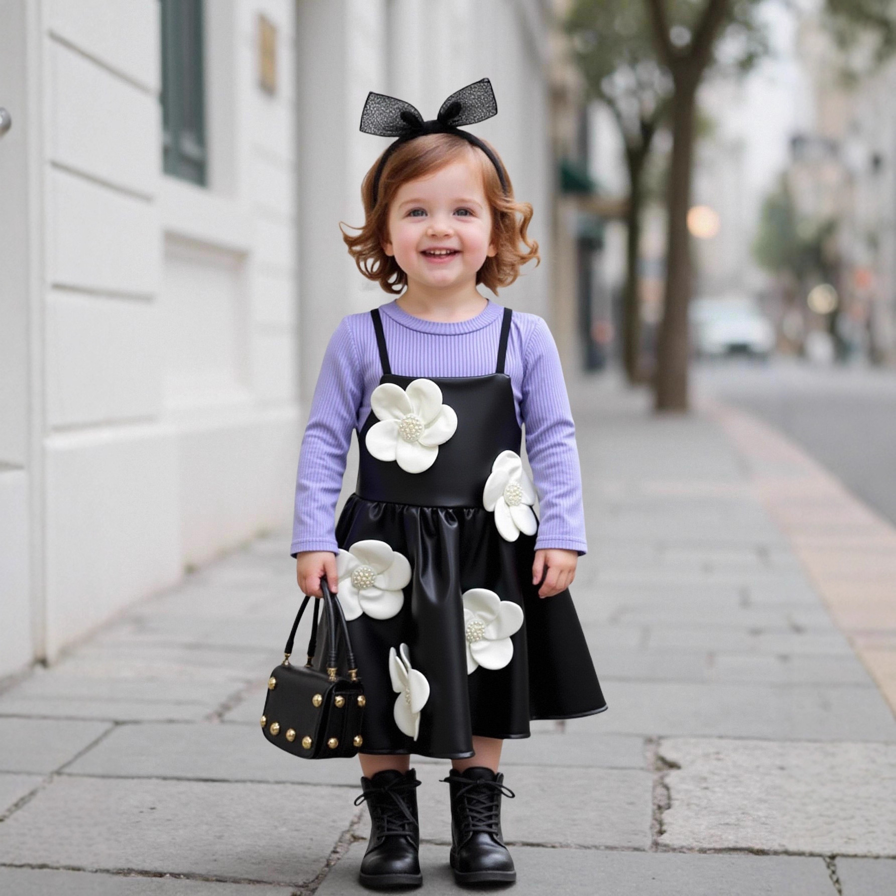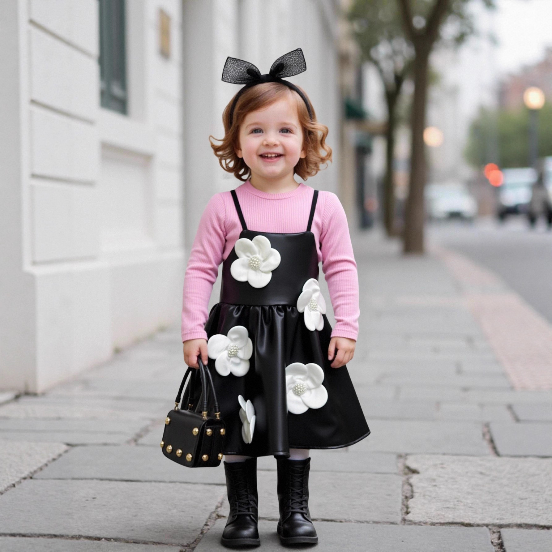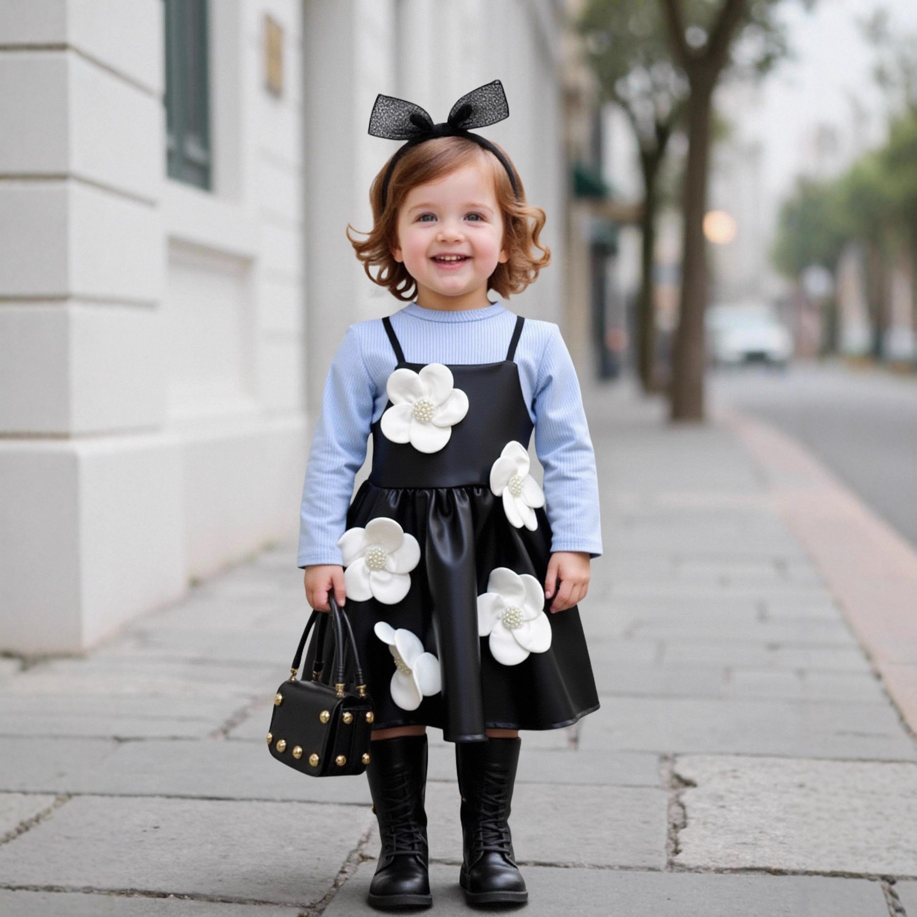 Autumn and winter girls new bottoming shirt three-dimensional flower leather skirt dress suit children