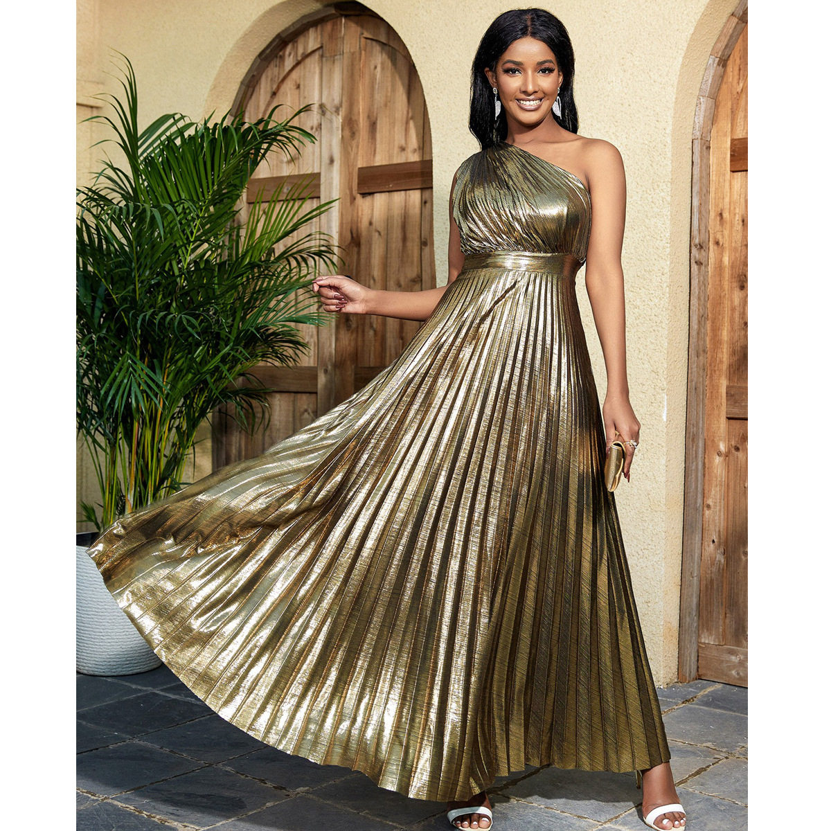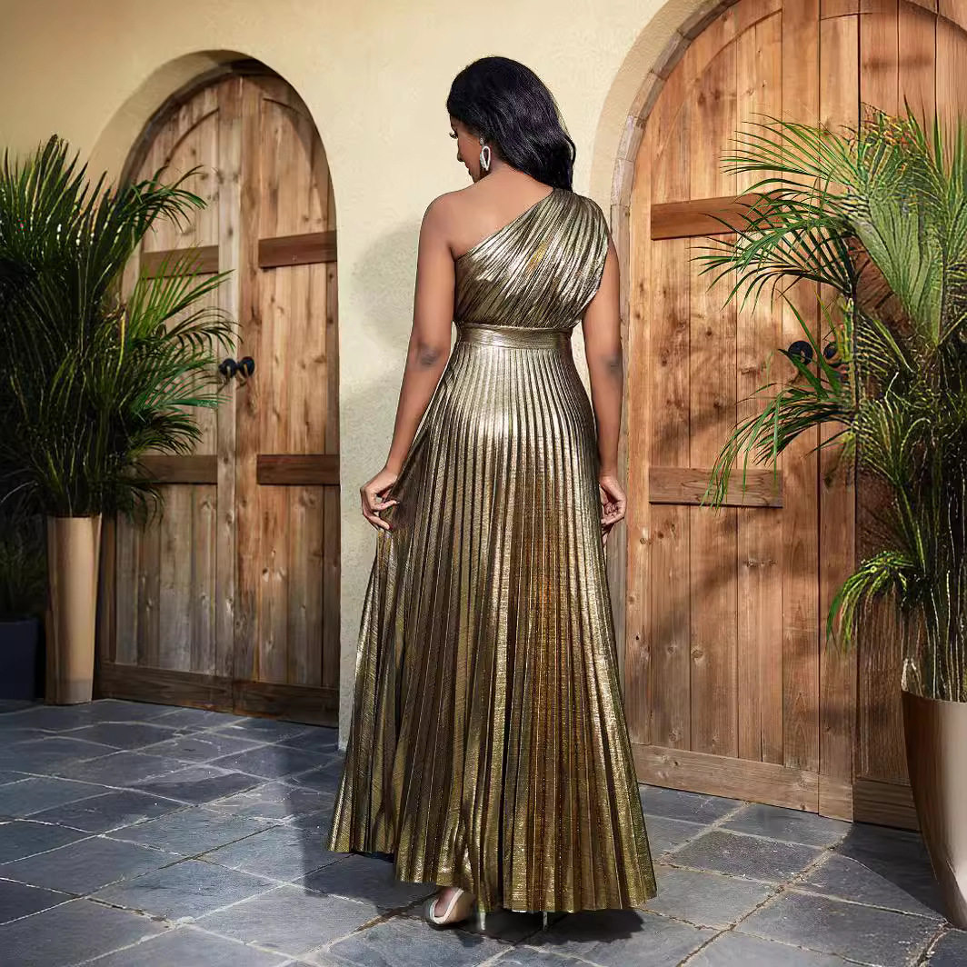 (FREE AIR SHIPPING) Backless pleated dress with high waist and side zipper