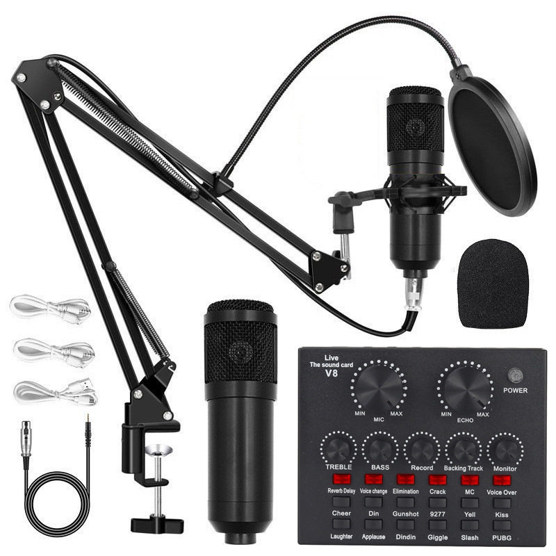 BM800 condenser microphone microphone V8 mobile phone English sound card computer usb cantilever bracket live suit