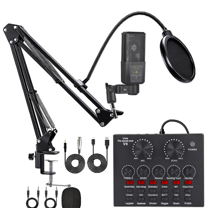 (FREE SEA SHIPPING) BM800 condenser microphone microphone V8 mobile phone English sound card computer usb cantilever bracket live suit