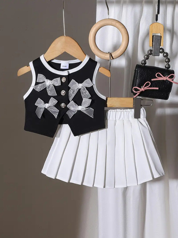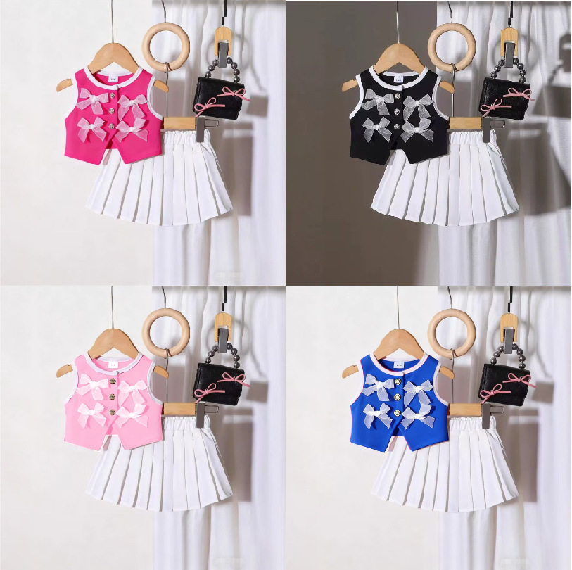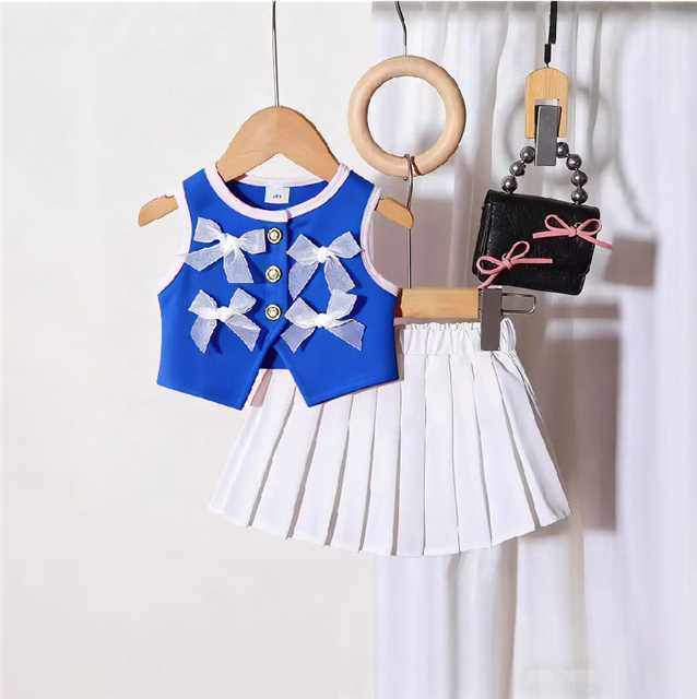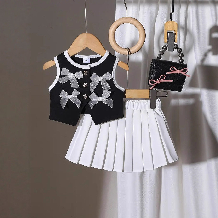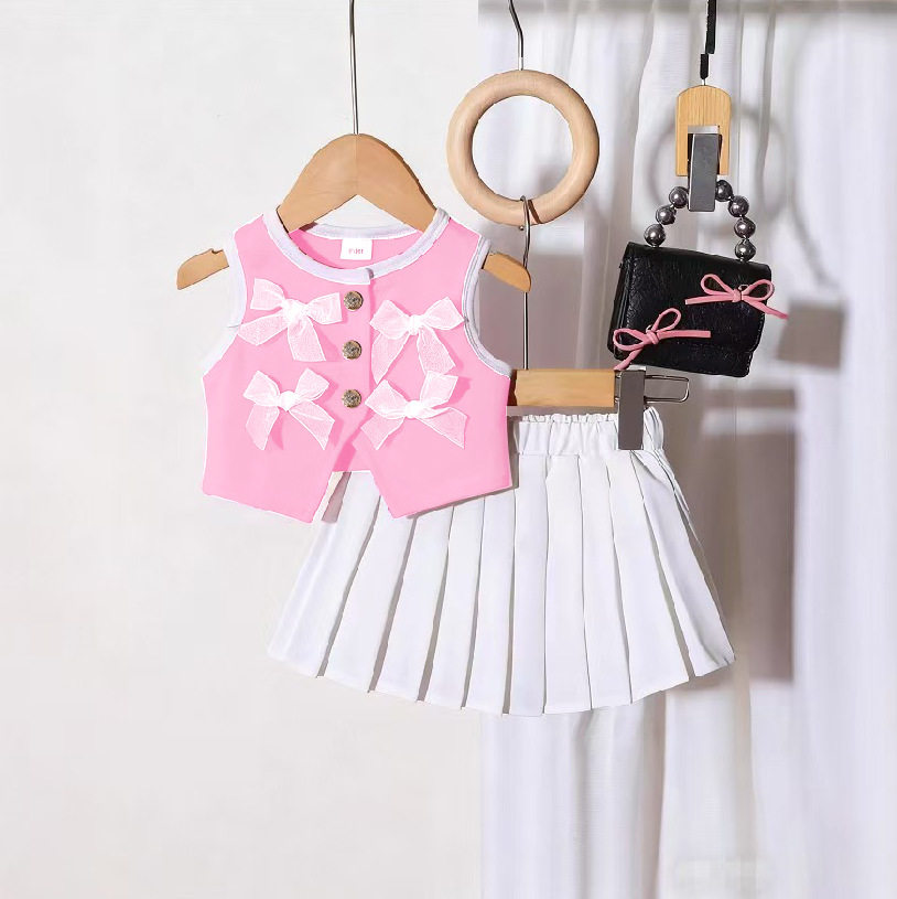 (FREE AIR SHIPPING) bow vest pleated skirt suit