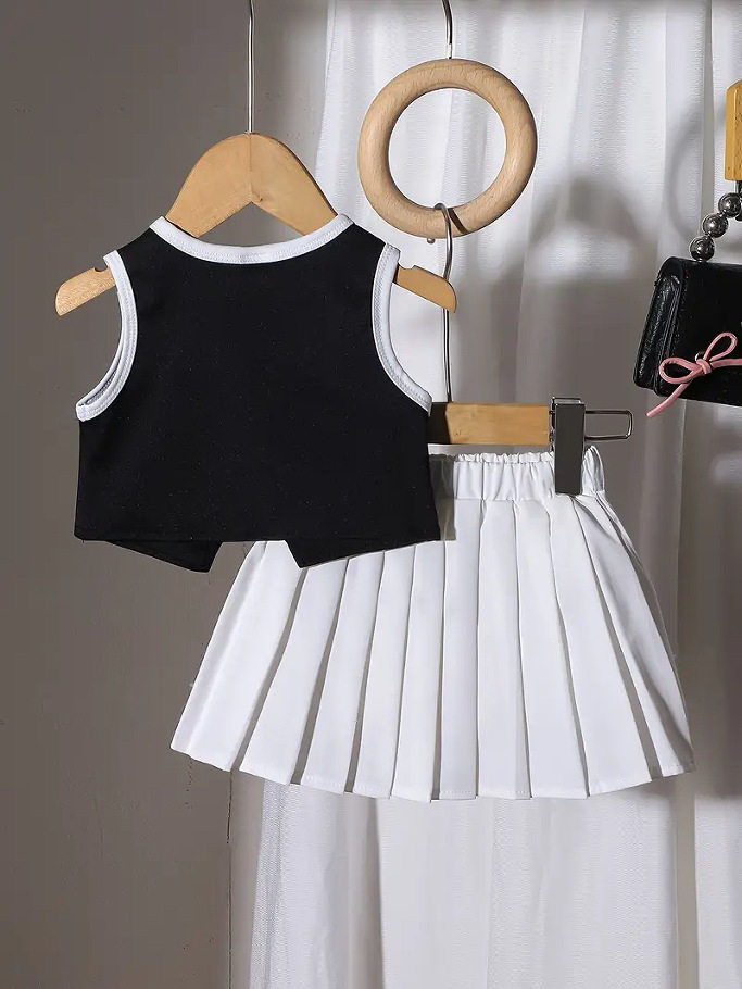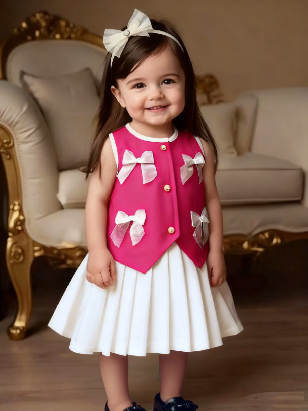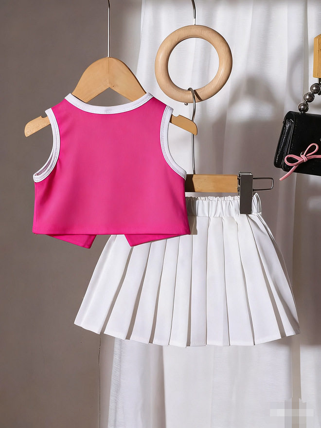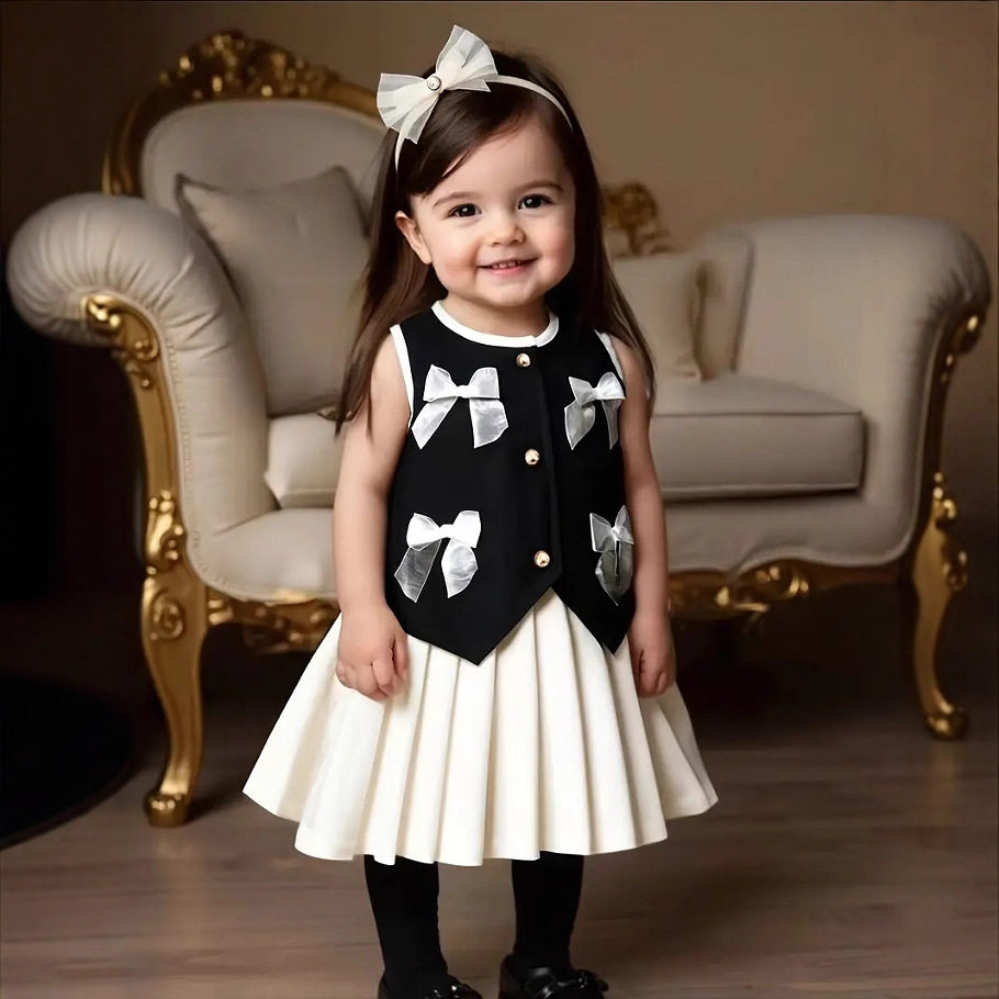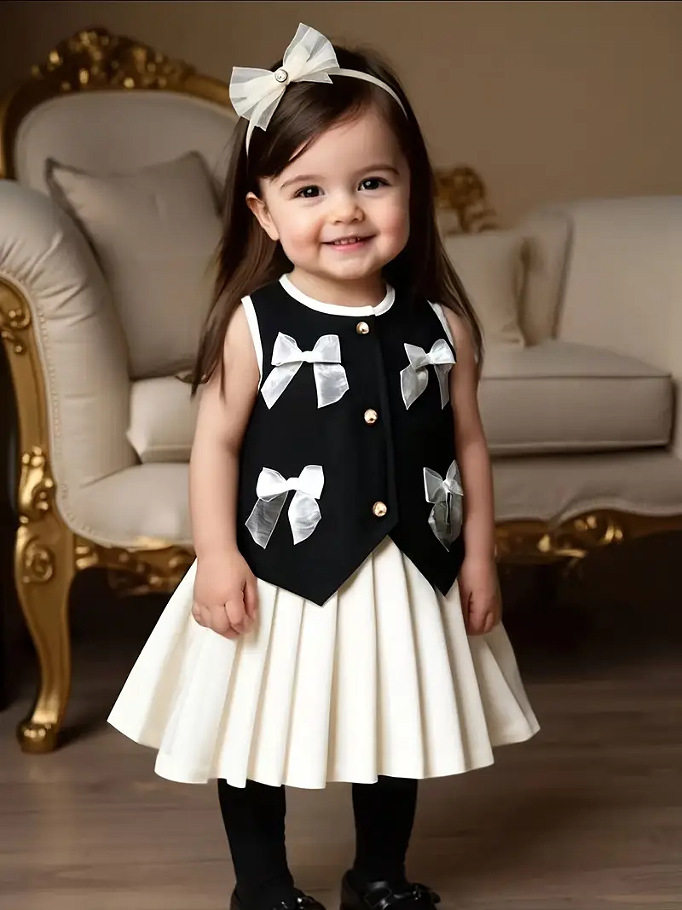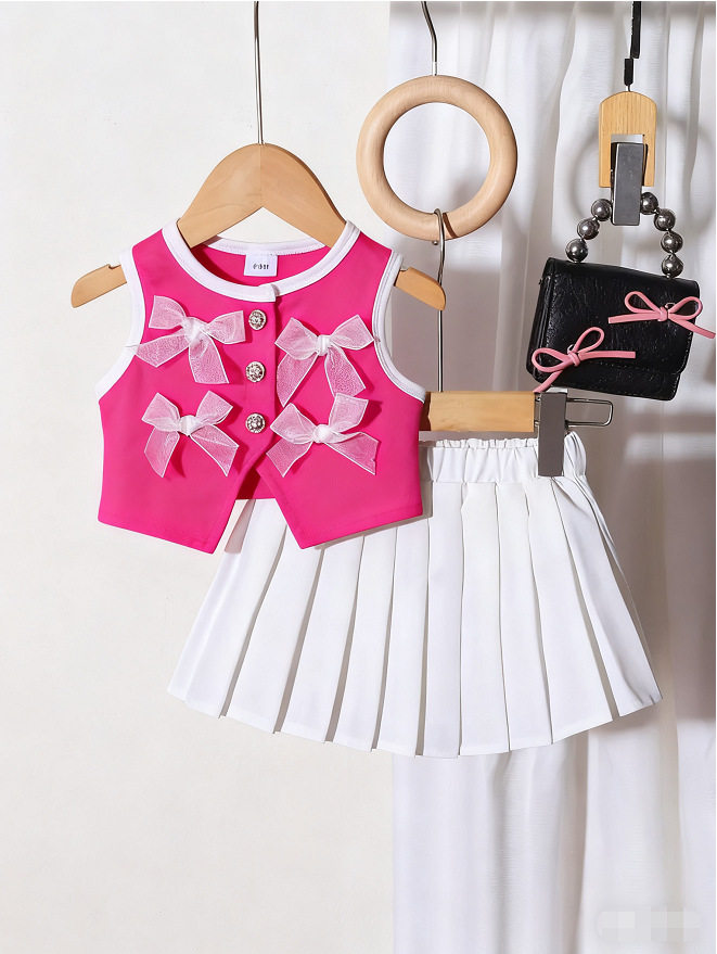 (FREE AIR SHIPPING) bow vest pleated skirt suit