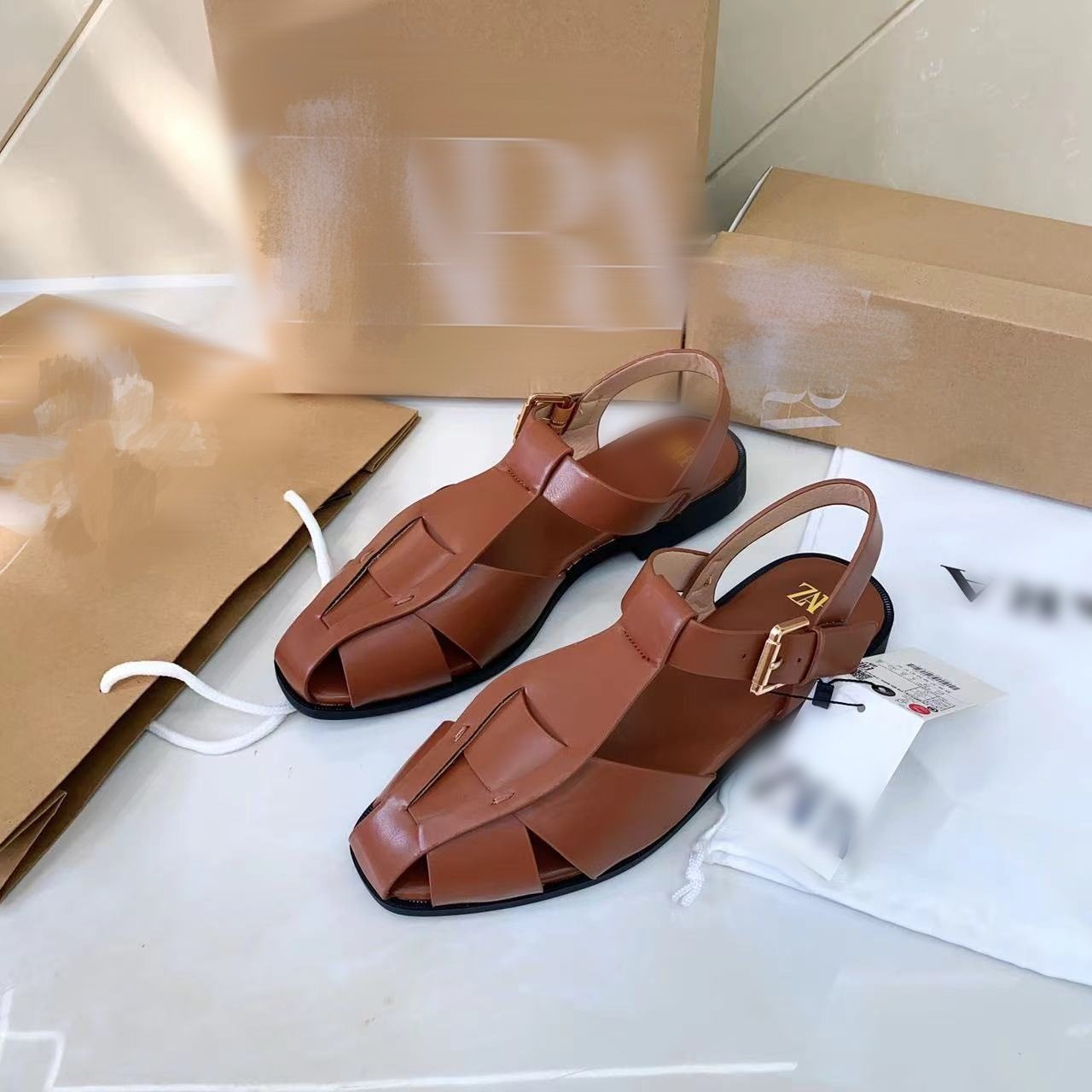 Buckle women's shoes solid color simple versatile flat sandals slippers