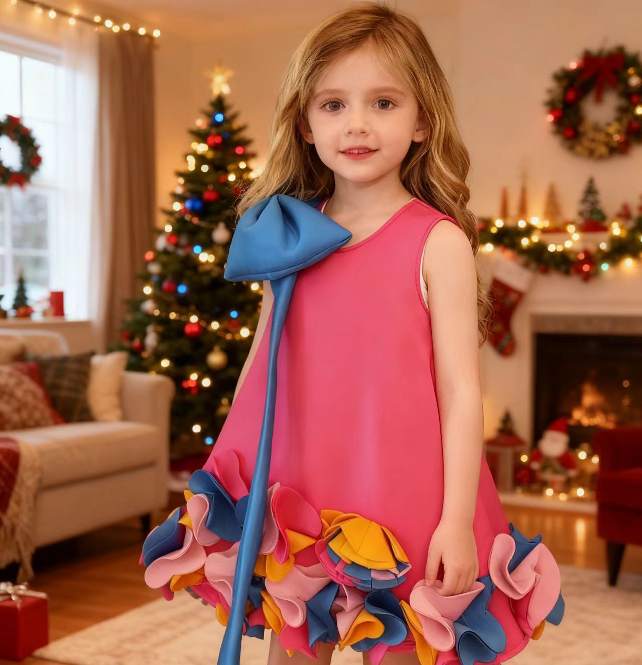 (FREE AIR SHIPPING) Cross-border children's dress dopamine vest dress bow spring and summer birthday dress fashionable sweet girl