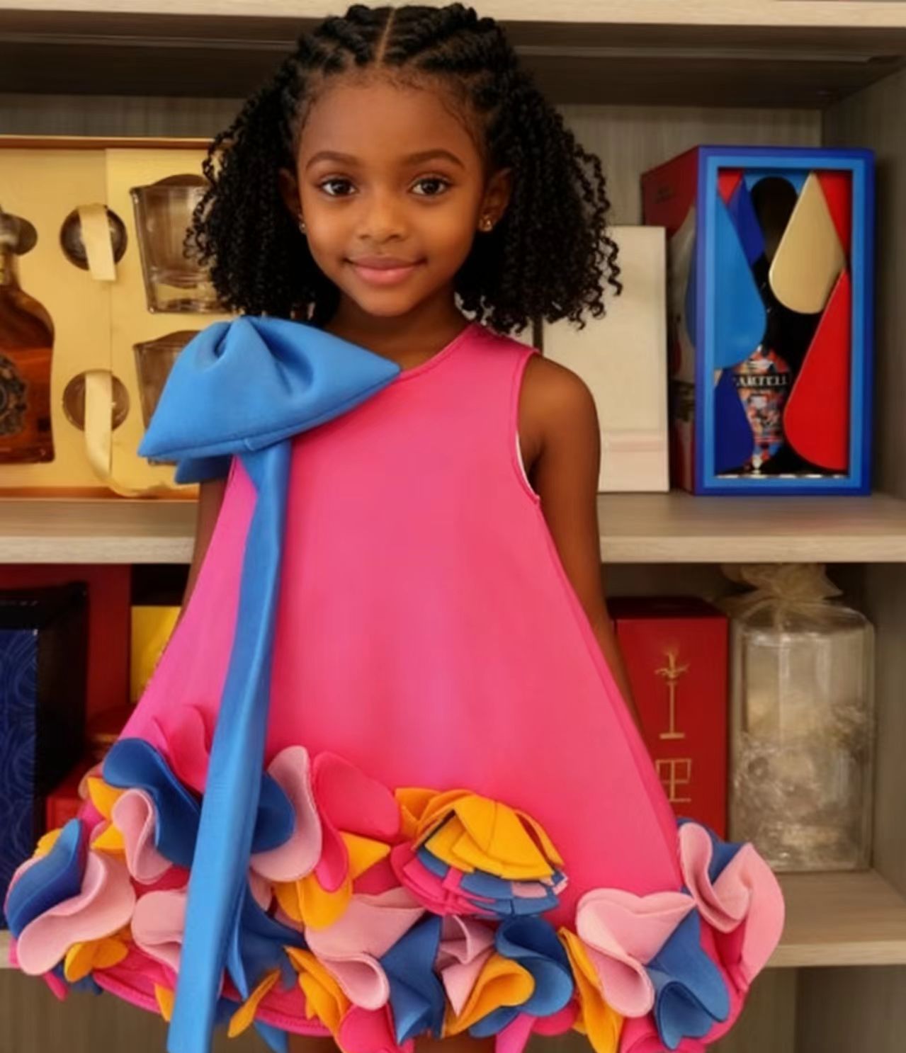 Children's dress dopamine vest dress bow spring and summer birthday dress fashionable sweet girl