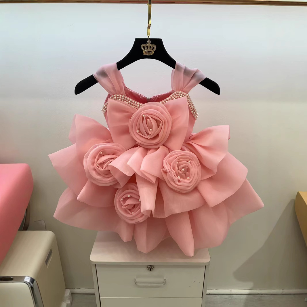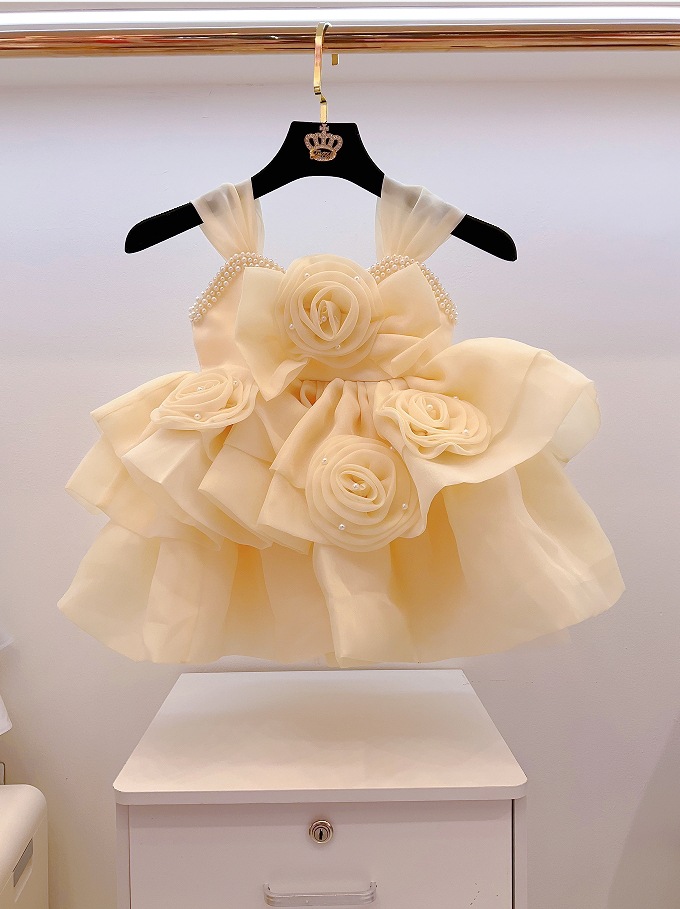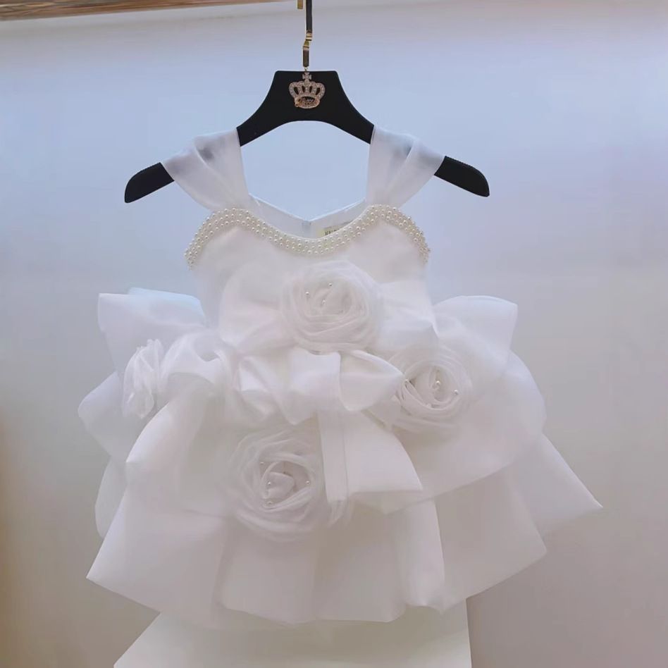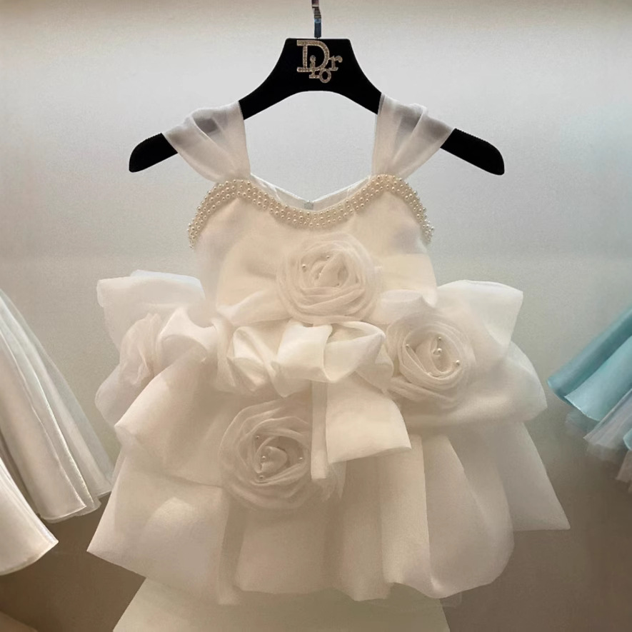Children's evening dress, flower girl, wedding, little girl's tutu skirt, girl's one-year-old princess skirt, high-end host performance costume