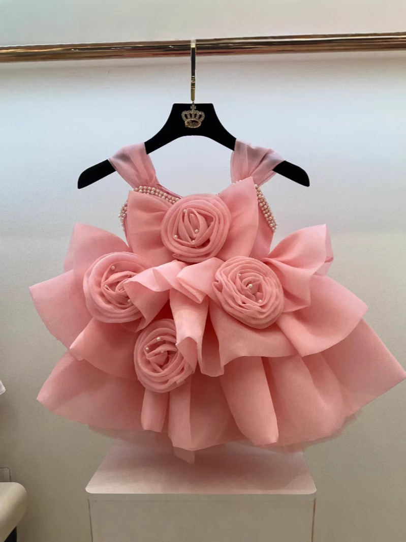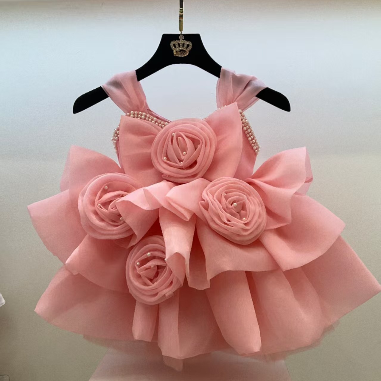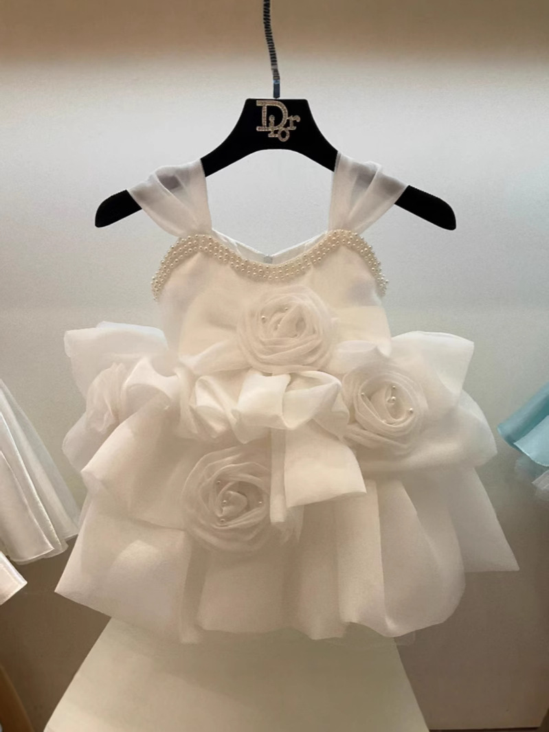 Children's evening dress, flower girl, wedding, little girl's tutu skirt, girl's one-year-old princess skirt, high-end host performance costume