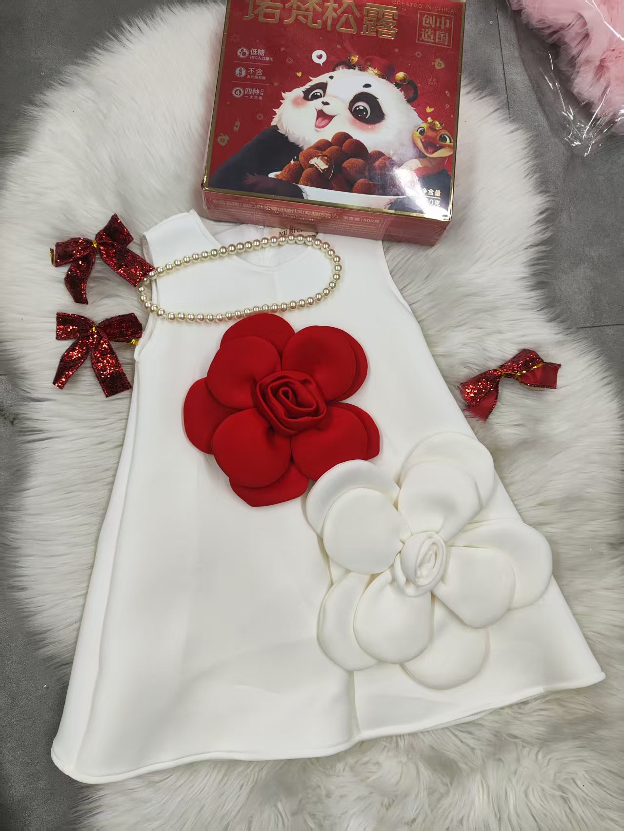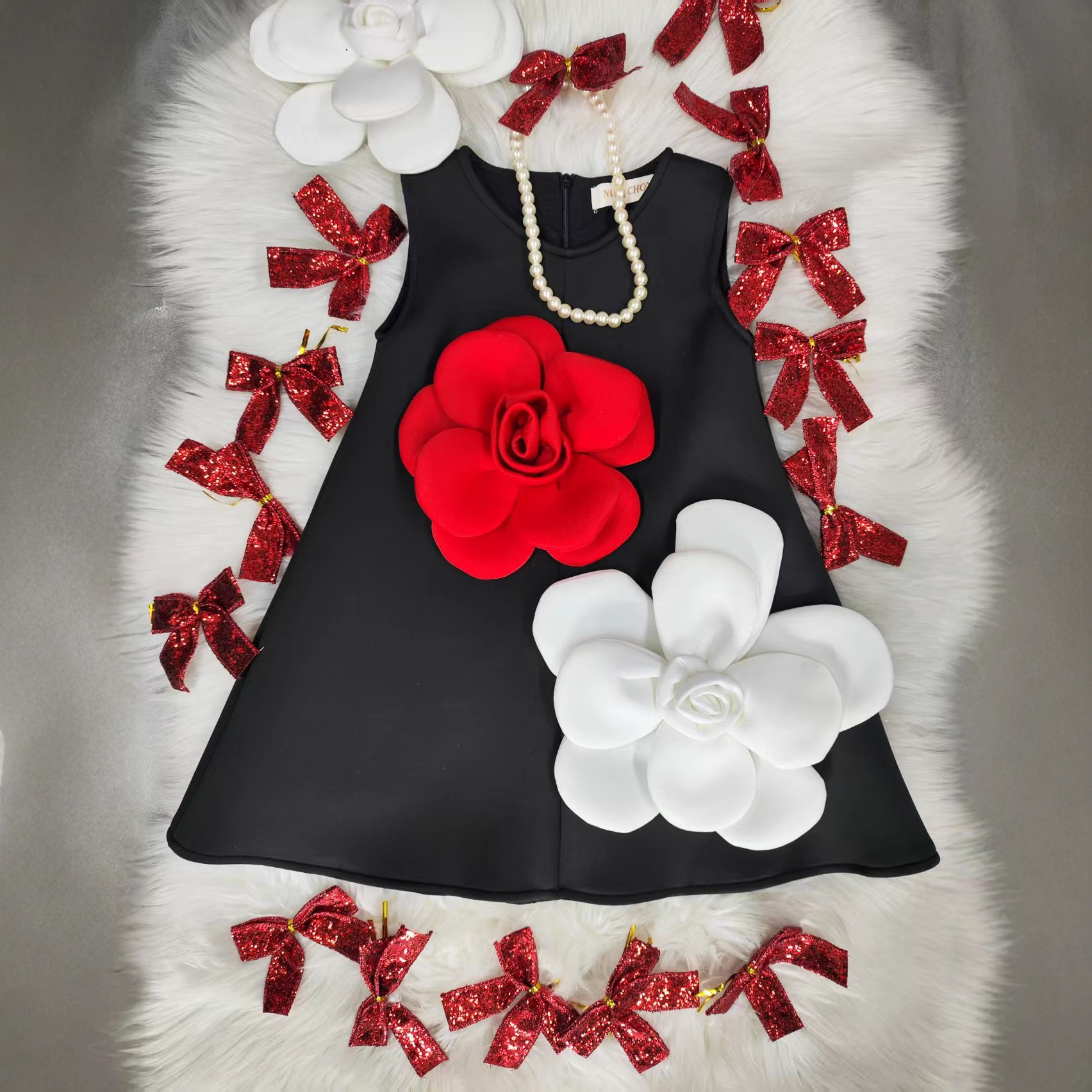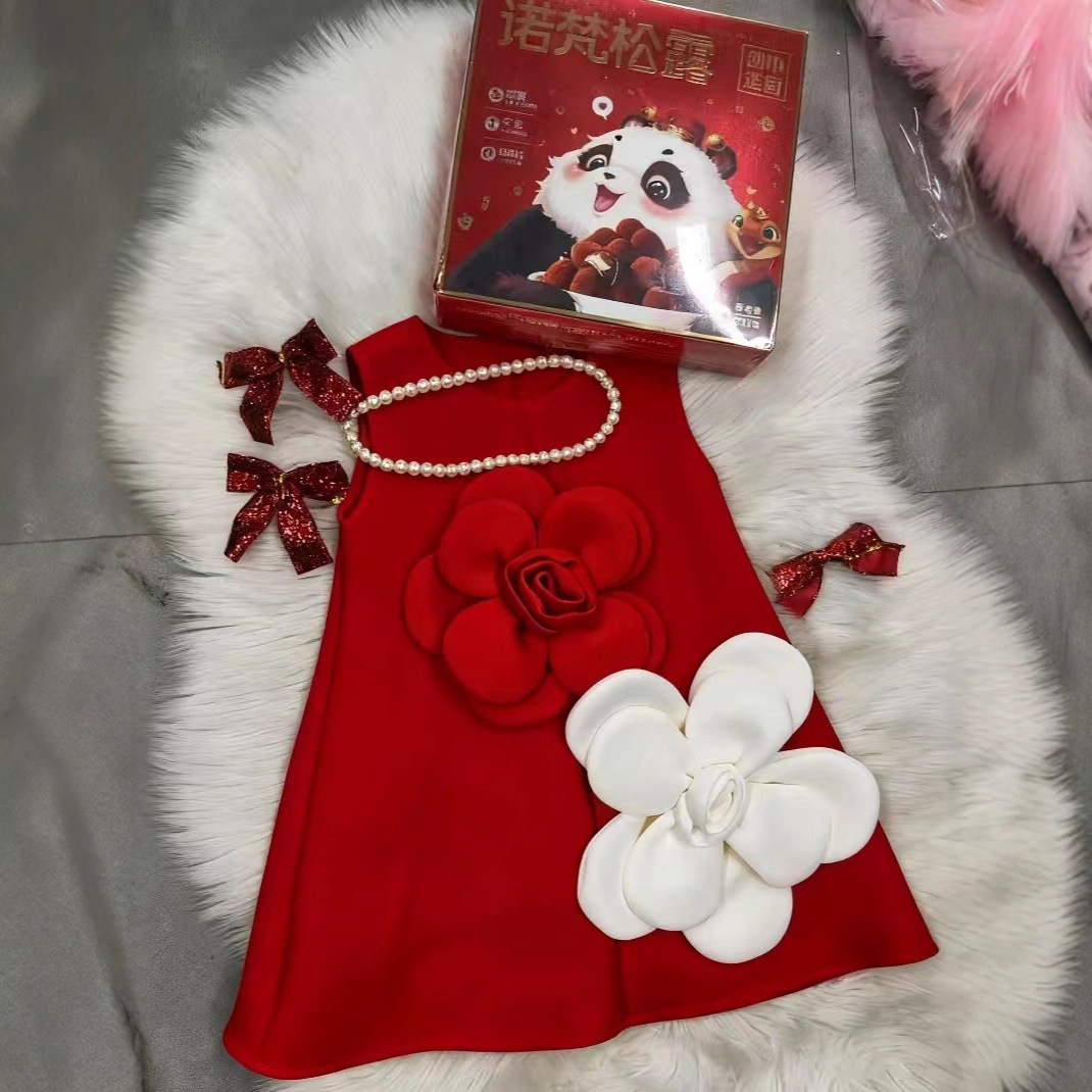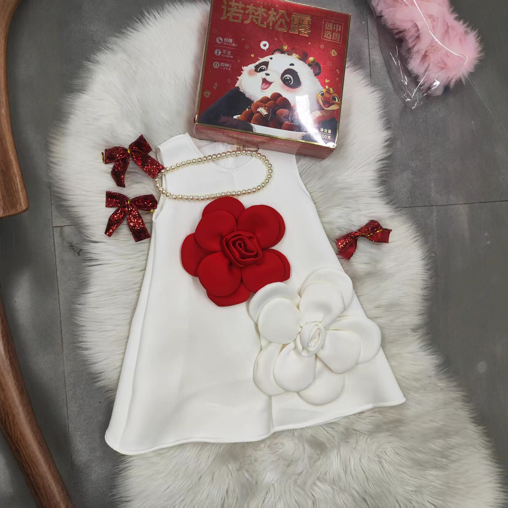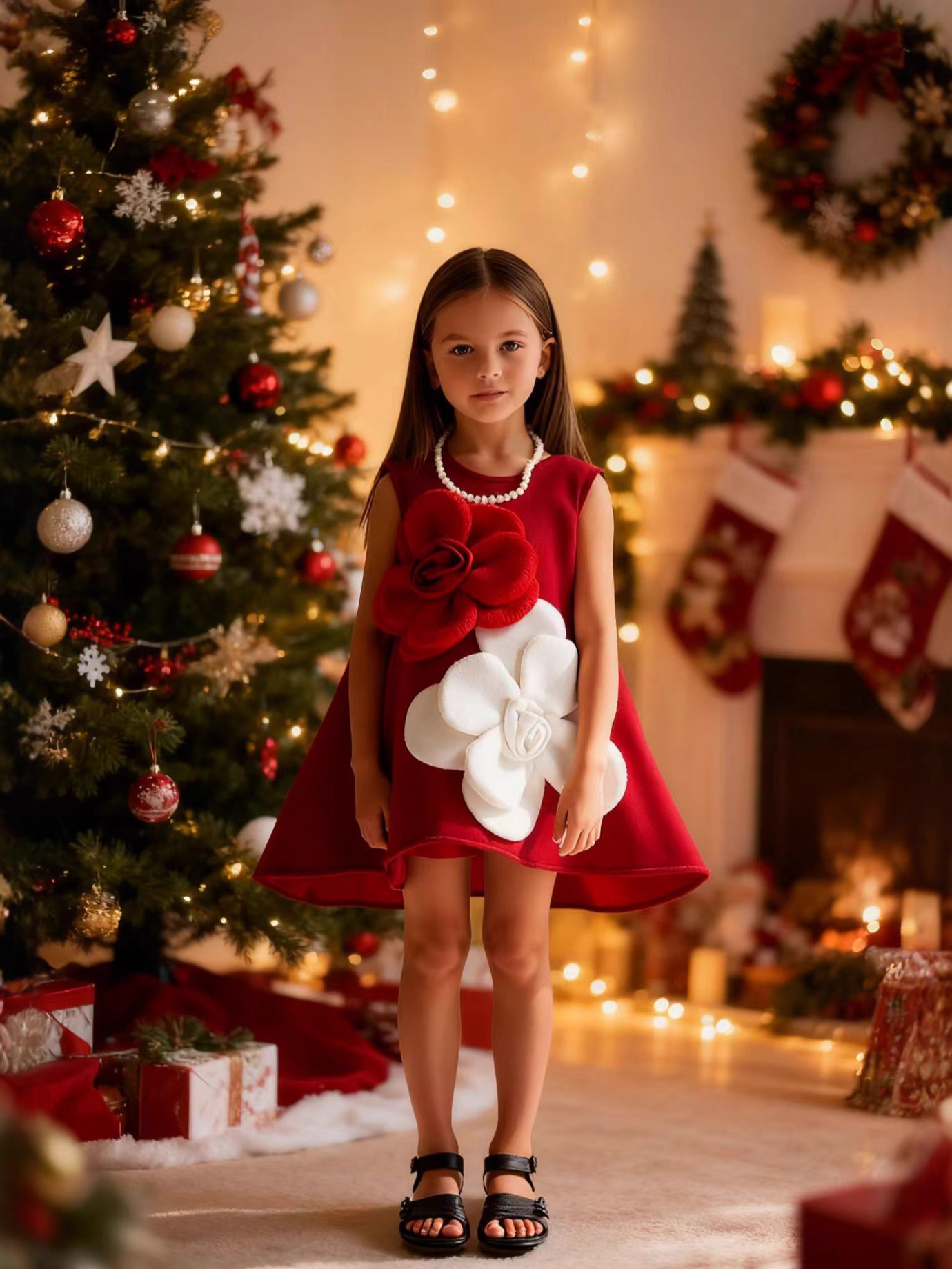 Christmas girls princess new dress three-dimensional flower sleeveless fashion A-line dress